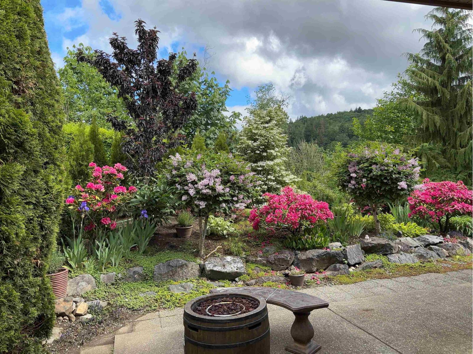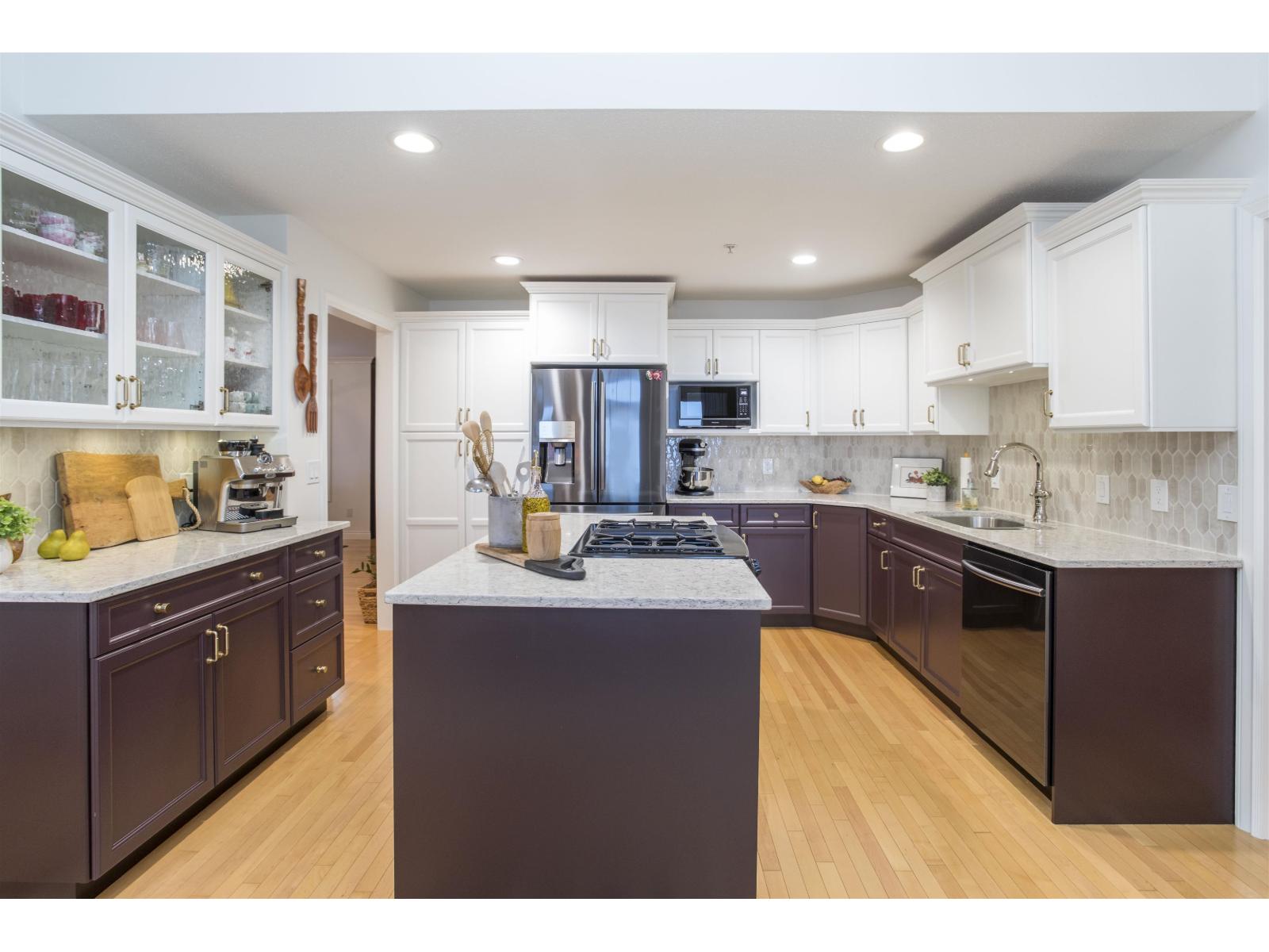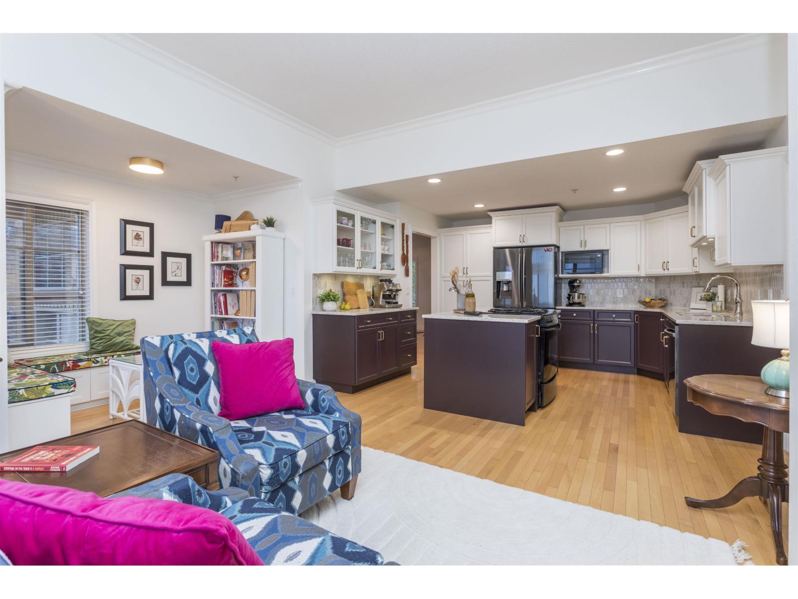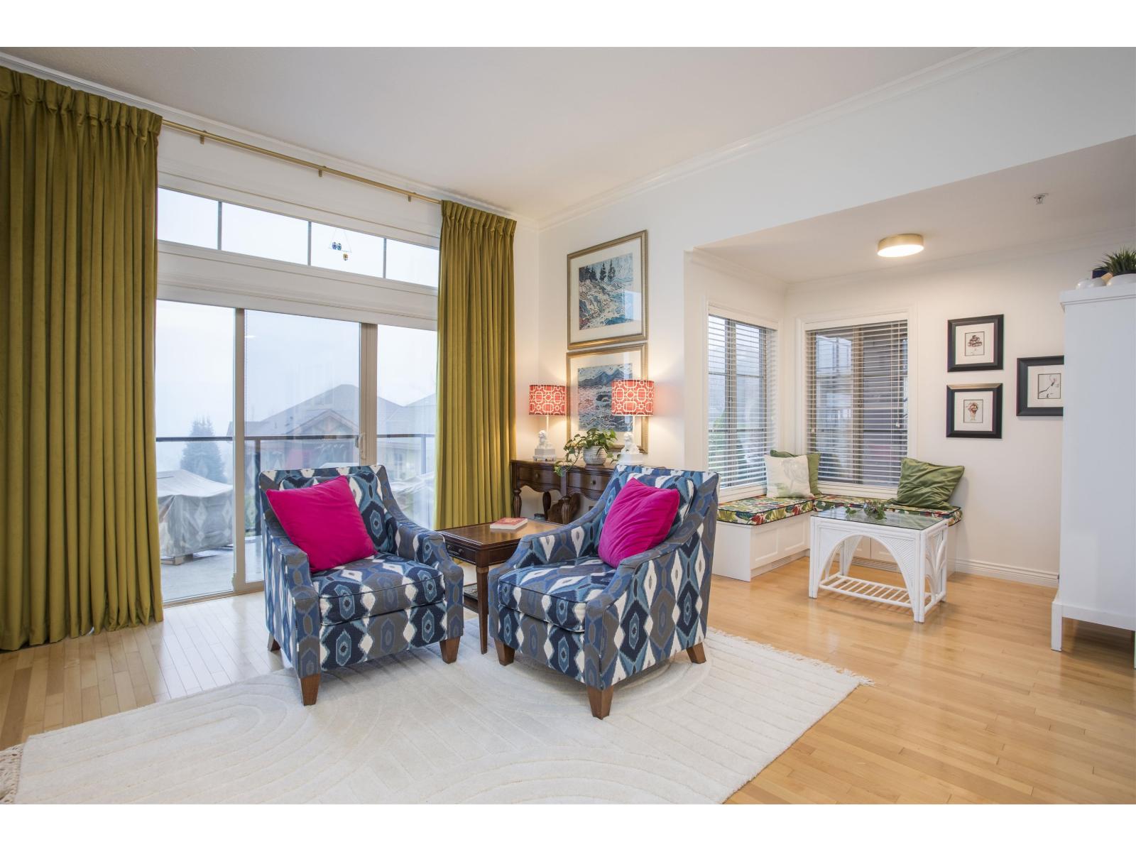 Mountain and Valley views in gated Majestic Ridge. Primary and one other bedroom on the main. Beautifully updated end home, freshly painted custom colour of Farrow and Ball. New Wood flooring upper hallway and bdrms. Heat pump for A/C. New Furnace and UV protective film for South facing windows, New (tuneable) LED lighting, Designer light fixtures. Family room shelving, hallway bookcase, Calcutta Viola marble surround and Custom Mantle, Spacious primary features 5 piece ensuite and walk in. Douglas Duolite Duette window coverings. Cedar privacy hedge offering private back patio for those warm evenings and entertaining. Enjoy the Mountain and Sumas Prairie views from your large front decks. The downstairs offers one additional bedroom, den and recreation room with so many possibilities. (id:64528)