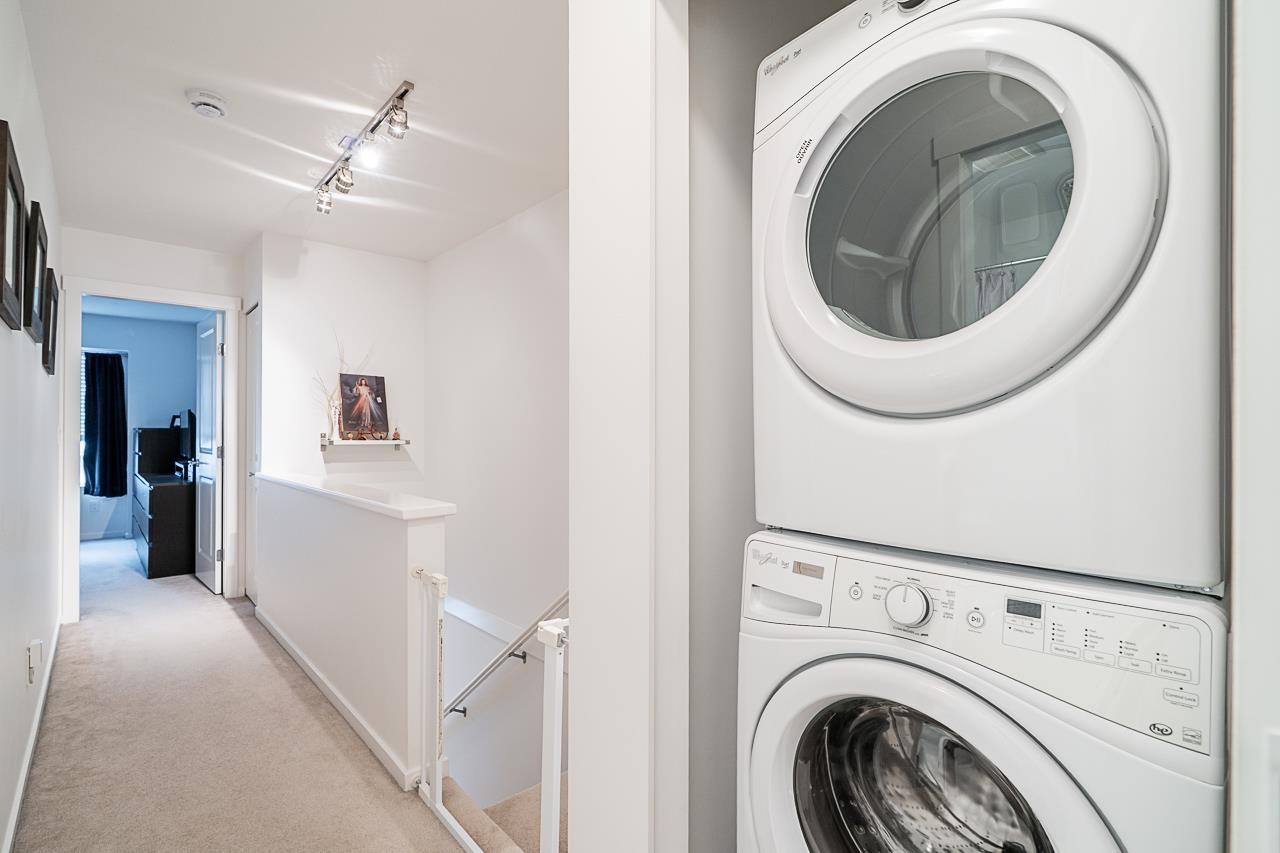 "GUILDFORD THE GREAT" - One of Dawson Sawyer's finest townhome communities. This 3 Bdrm, 2.5 Bath home boasts one of the best locations in the complex-backing onto serene, endless greens and trees! The south-facing balcony and patio offer tranquility at its best. Beyond your private fenced yard/patio lies extra green space, perfect for kids to run, play, and explore! Built in 2016, this well kept home features open concept living/kitchen/dining with laminate flooring and a powder room. Enjoy ultimate privacy with both balcony and patio facing a lush green oasis. Upstairs has 3 Bdrms, a walk-in closet, and double vanity sinks in the primary suite. Includes a double tandem garage that fits 2 cars comfortably! Centrally located near Guildford amenities! (id:64528)