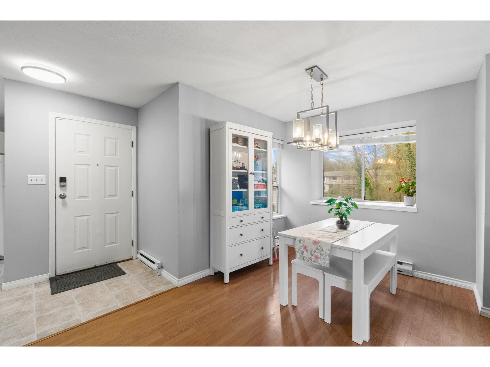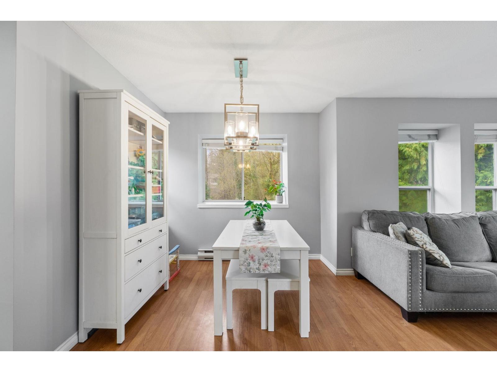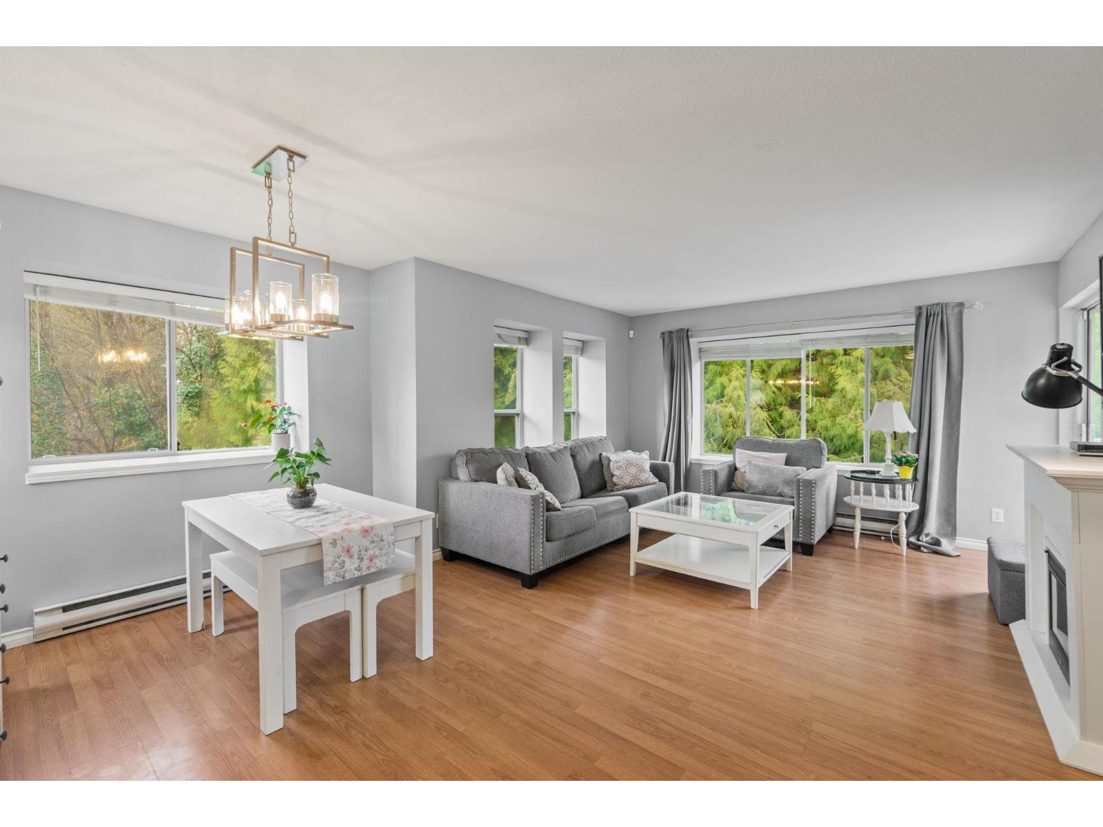 Top corner townhome offering a bright, open-concept layout filled with natural light from large windows and two skylights. Well-maintained with updated lighting fixtures and appliances, this home shines throughout. The private balcony overlooks a peaceful greenspace, providing added privacy and tranquility. Tucked into the quiet part of the complex with minimal outside noise, it offers a serene living experience. The spacious primary features a walk-through closet with convenient cheater ensuite access. Located just one block from a park and with easy access to Hwy 1 and the pedestrian overpass to UFV, it's ideal for commuters and students alike. Pet-friendly with no age restrictions, making it a great option for all lifestyles. Two parking spots included. 1 cat or 1 dog permitted (max 25 lbs). Move-in ready-nothing to do but enjoy! ** OPEN HOUSE SUNDAY APRIL 19 FROM 2:00-4:00PM** (id:64528)