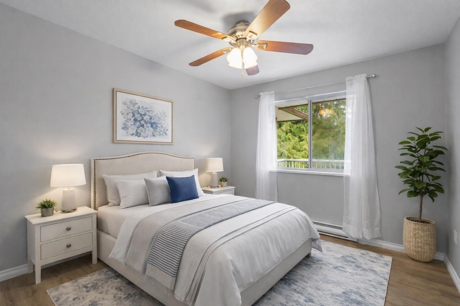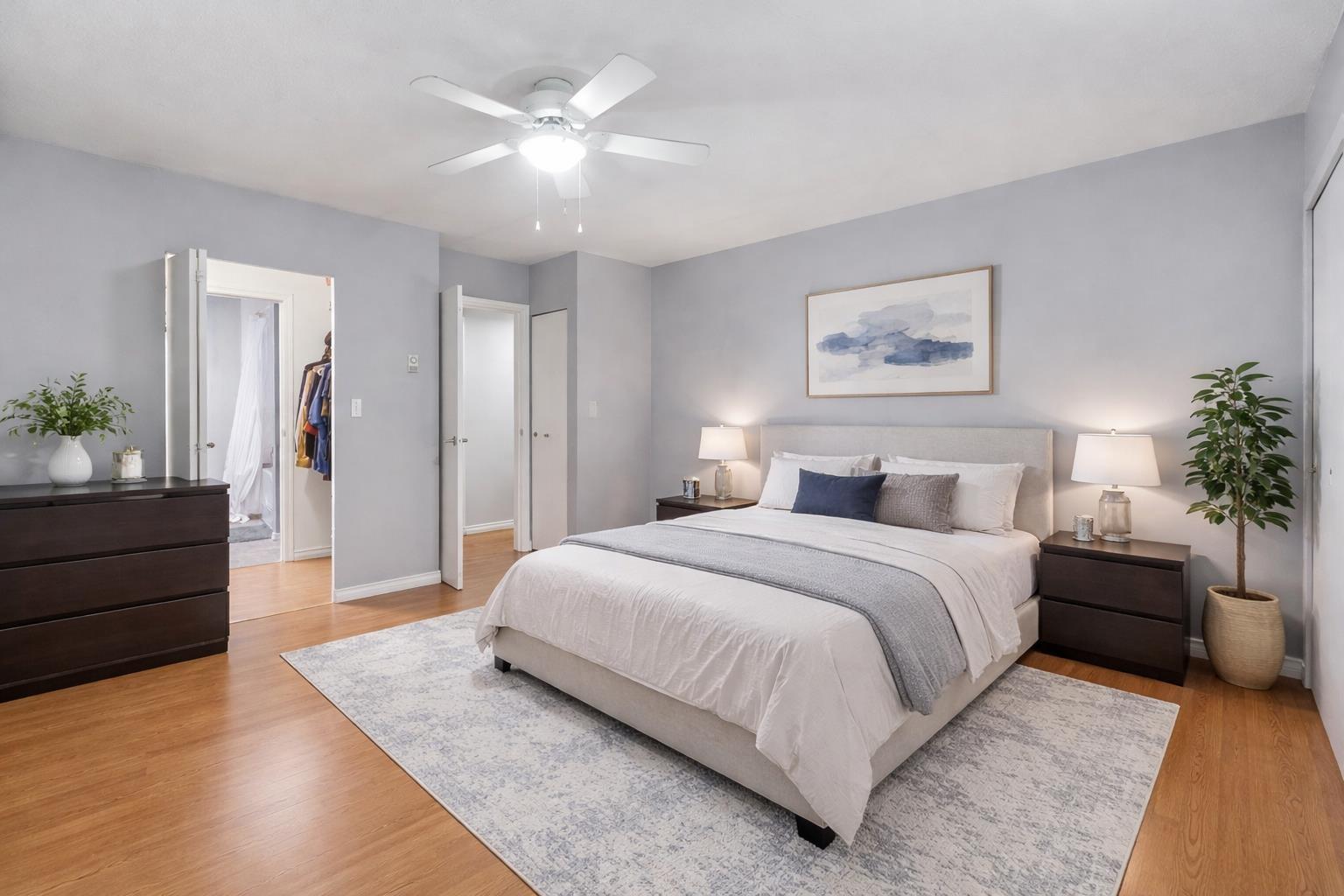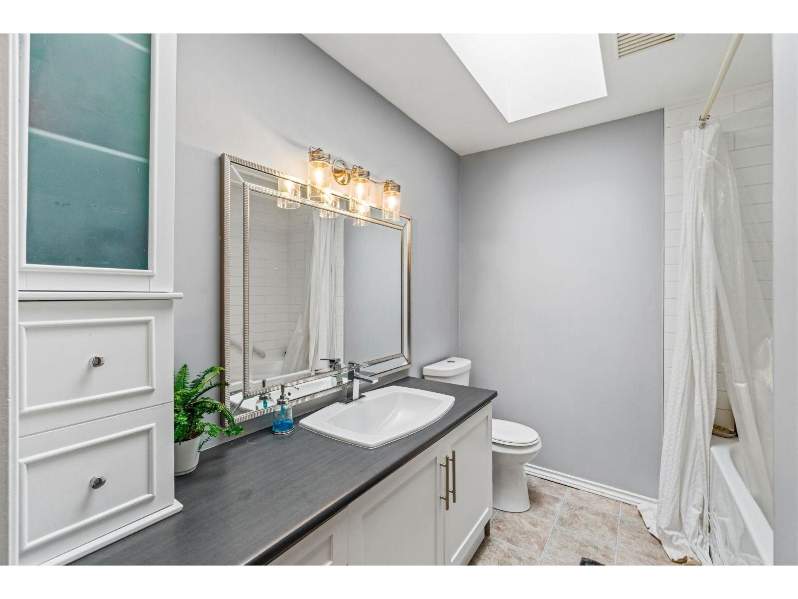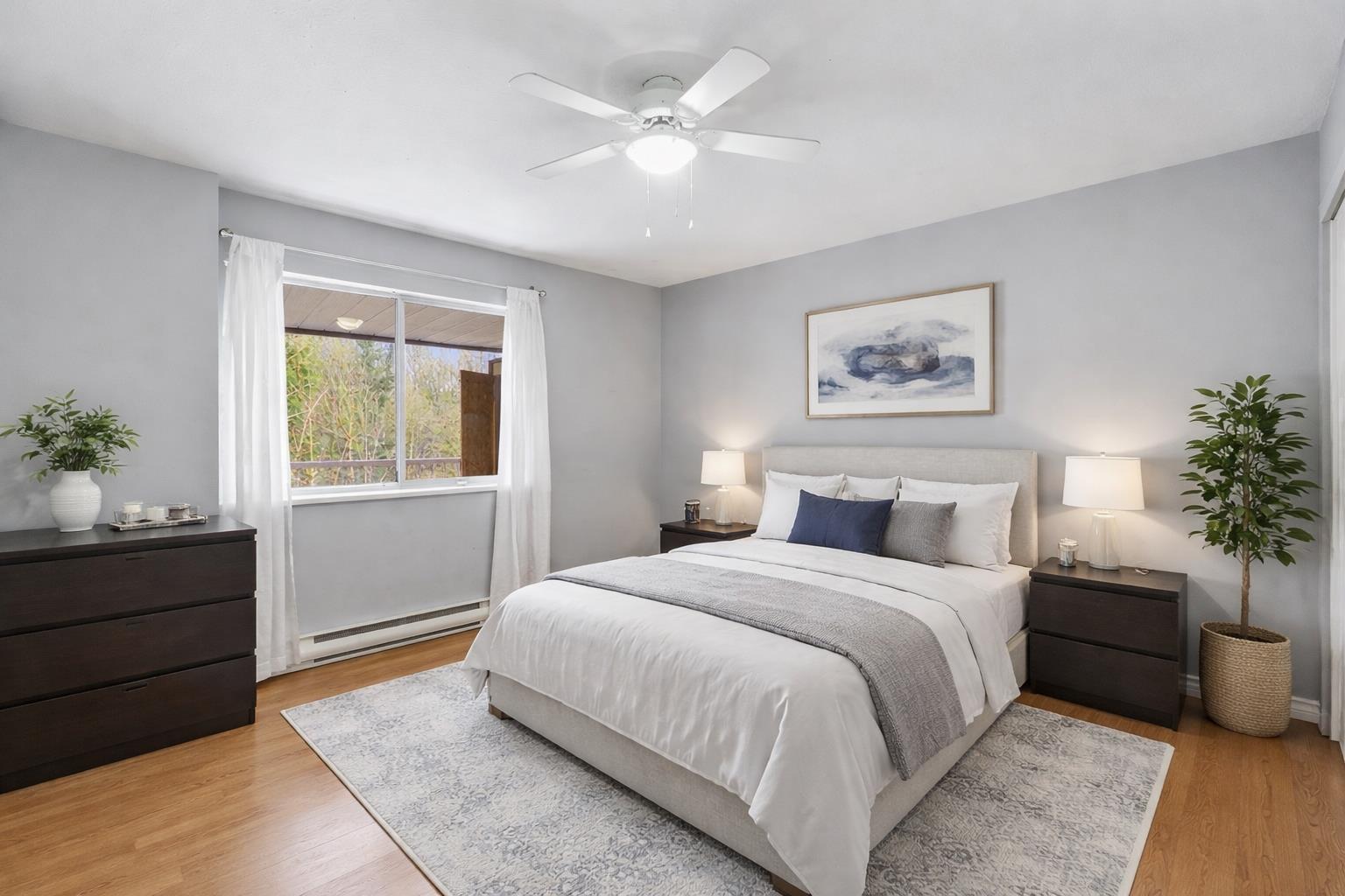 Top corner townhome offering a bright, open-concept layout filled with natural light from large windows and two skylights. Well-maintained with updated lighting fixtures and appliances, this home shines throughout. The private balcony overlooks a peaceful greenspace, providing added privacy and tranquility. Tucked into the quiet part of the complex with minimal outside noise, it offers a serene living experience. The spacious primary features a walk-through closet with convenient cheater ensuite access. Located just one block from a park and with easy access to Hwy 1 and the pedestrian overpass to UFV, it's ideal for commuters and students alike. Pet-friendly with no age restrictions, making it a great option for all lifestyles. Two parking spots included. 1 cat or 1 dog permitted (max 25 lbs). Move-in ready-nothing to do but enjoy! ** OPEN HOUSE SUNDAY APRIL 19 FROM 2:00-4:00PM** (id:64528)