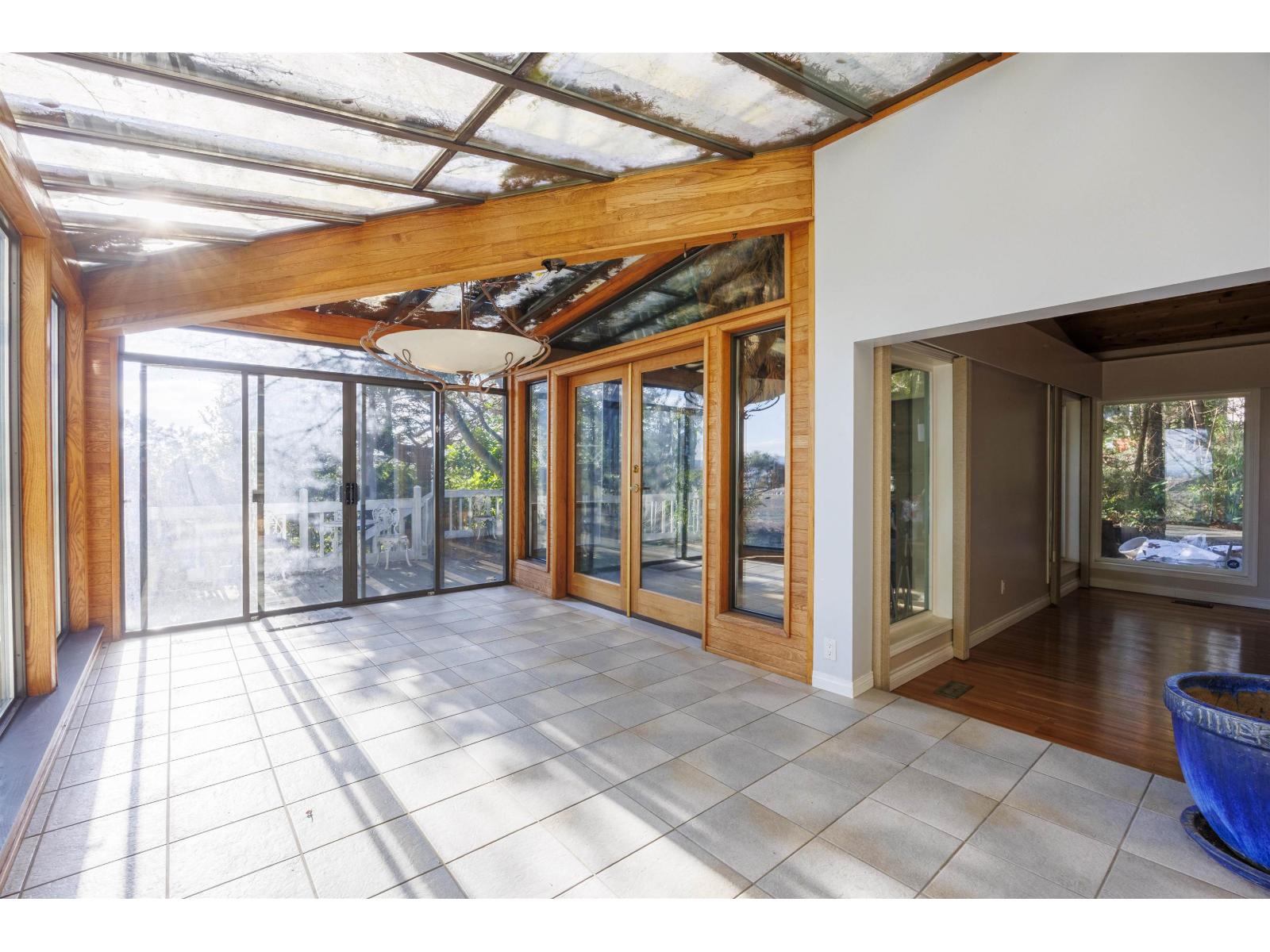 The spacious mansion sits on the half acre view lot in the prestige area of Panorama Ridge. This unique updated west coast style home offers beautiful views of ocean, Mt Baker, and Sunset from main & upper levels. It features private yards w/ tasteful garden, multiple decks for peaceful relaxation, open-air hot tub in nature surrounding, 5500+ sqf living area, extra large 4 bedrooms upstairs, commercial grade heating system, luxurious appliances, extra deep double garage. and 190sqf heated greenhouse. It offers 2 bedrooms suite with fully renovated new kitchen, new cloth washer/dryer and new paint. Upstairs updates include new hard wood floor in primary rooms & updated master bathroom, new paint. Ideal for renovation project or hold to build. (id:64528)