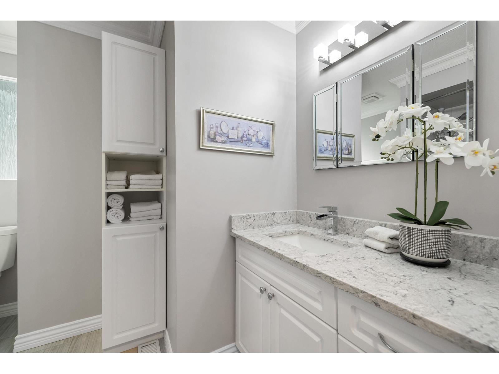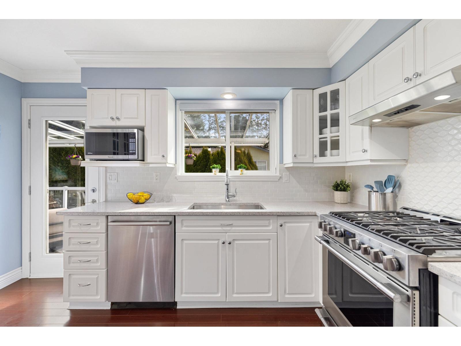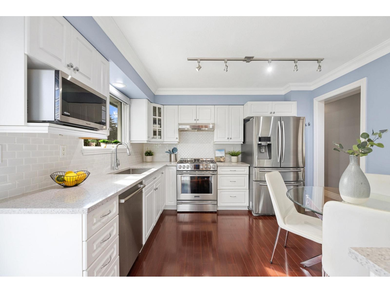First time on the market in over 20 years! Tucked in a quiet family-friendly cul-de-sac this well-maintained home is MOVE-IN READY! Main floor features large foyer, media/rec room + den (or bdrm), laundry room, new bathroom w/shower & a single garage. Upstairs has a bright living room w/cozy wood-burning fireplace, Hunter Douglas blinds, crown molding, large dining area, updated kitchen w/quartz counters & SS appliances. PRIVATE heated, covered deck w/gas hookup - great for entertaining! Updated family bath w/ heated floors, large primary bdrm w/custom closets & ensuite w/heated floors, plus 2 other good-sized bdrms. Private backyard w/jacuzzi hot tub - so relaxing! New roof & windows in 2016. Irrigation system! All this & just steps to transit, shopping & schools - perfect for the family! (id:64528)
