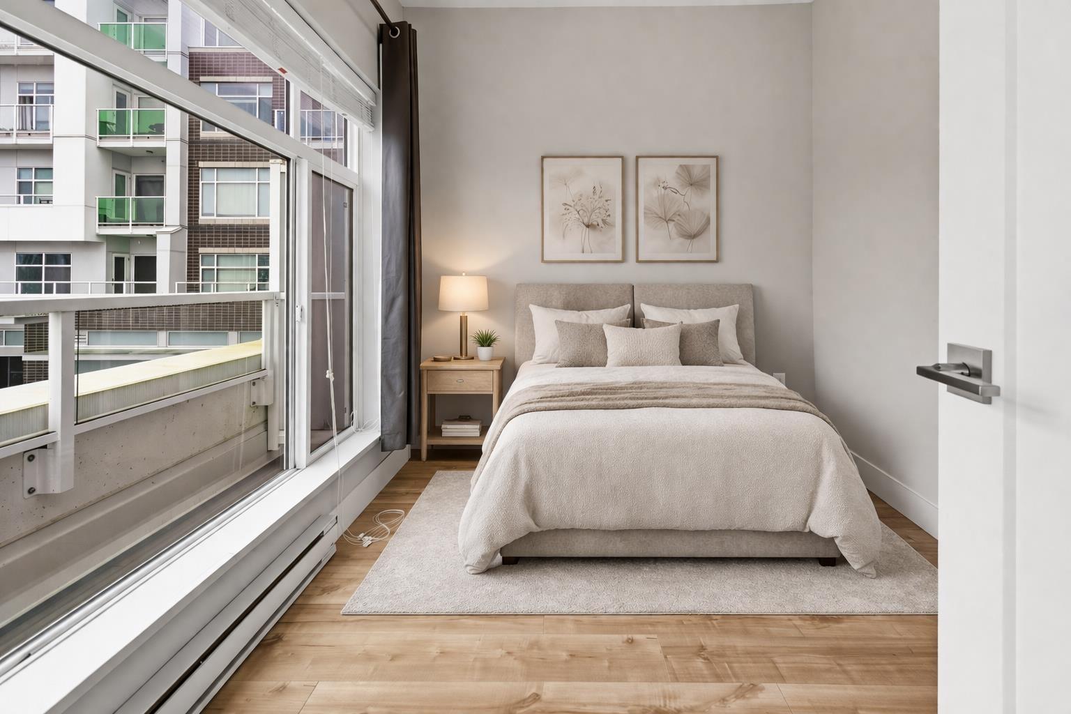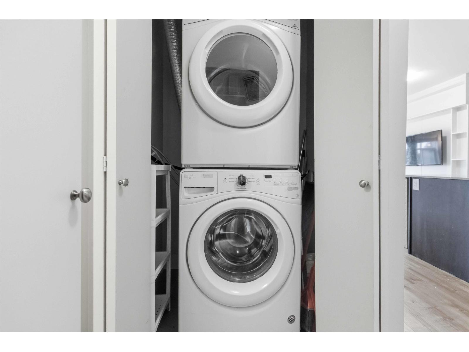 Opportunity for investors and first-time buyers! This bright, true corner unit offers a spacious home with 9-ft ceilings and an open, well-designed layout. Features include modern lighting, shaker-style doors, and durable laminate flooring throughout. The gourmet kitchen is equipped with Whirlpool stainless steel appliances, quartz countertops, and soft-close cabinetry. Step out onto your private balcony and enjoy access to amenities including a fitness centre, social lounge, playground, and rooftop patio. Ideally located with transit right at your doorstep, just minutes to Strawberry Hill Shopping Centre, and within walking distance to Gibson Elementary and Delview Secondary, plus close proximity to Kennedy Park. (id:64528)