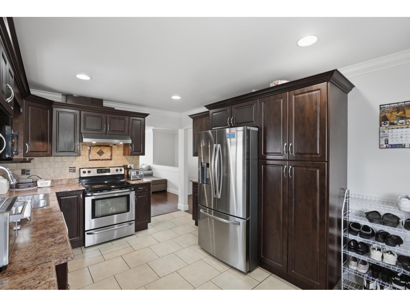 Welcome to this beautiful home in the heart of North Delta. This well-maintained property features 5 bedrooms and 4 bathrooms, perfect for families or multi-generational living. The main floor offers a bright kitchen, living and dining areas, along with 3 bedrooms and 2 bathrooms. A grand foyer creates a great first impression. Downstairs features a recreation room, an additional family room, and a separate bedroom-ideal for extended family or extra living space. Includes a 2-bedroom mortgage helper for added income. Recent updates include fresh paint, blinds, new hot water tank, and furnace, plus the home is equipped with air conditioning for year-round comfort. Walking distance to schools, shopping, Sun God Recreation Centre, George Mackie Library, and transit, with easy highway access. Don't miss this opportunity! (id:64528)