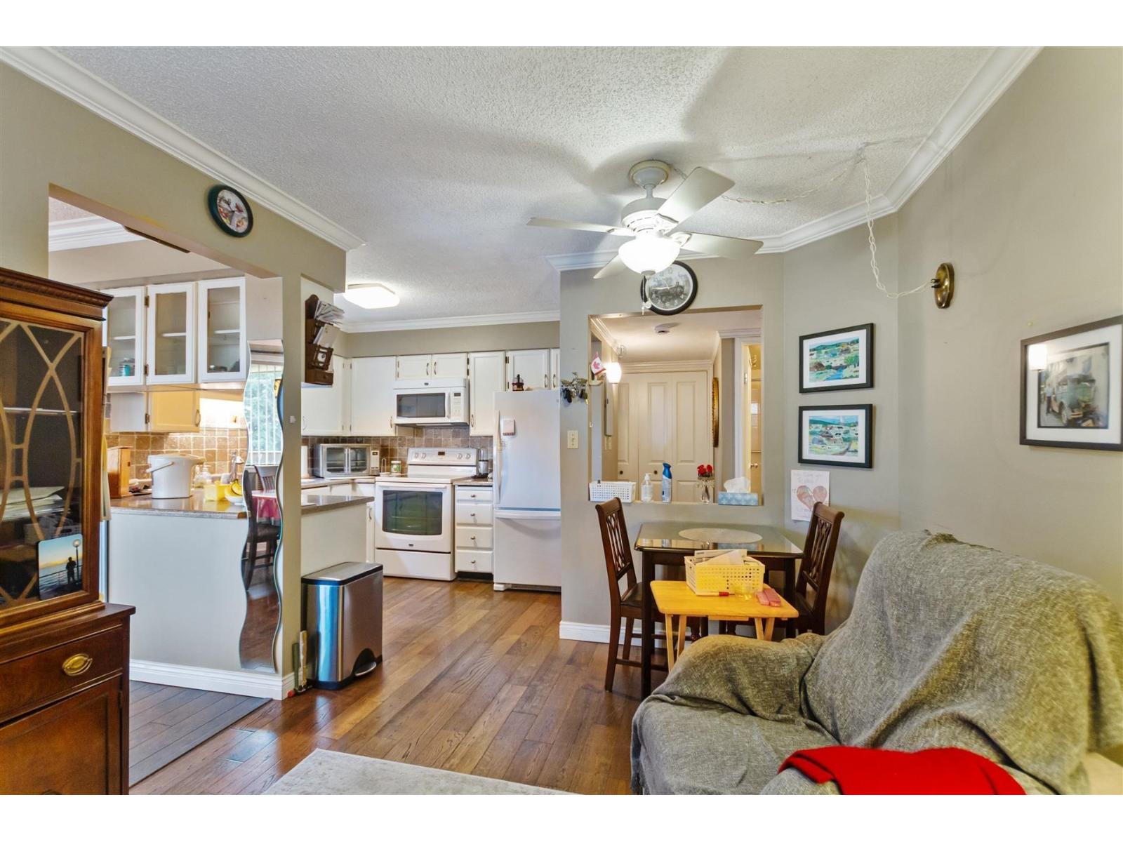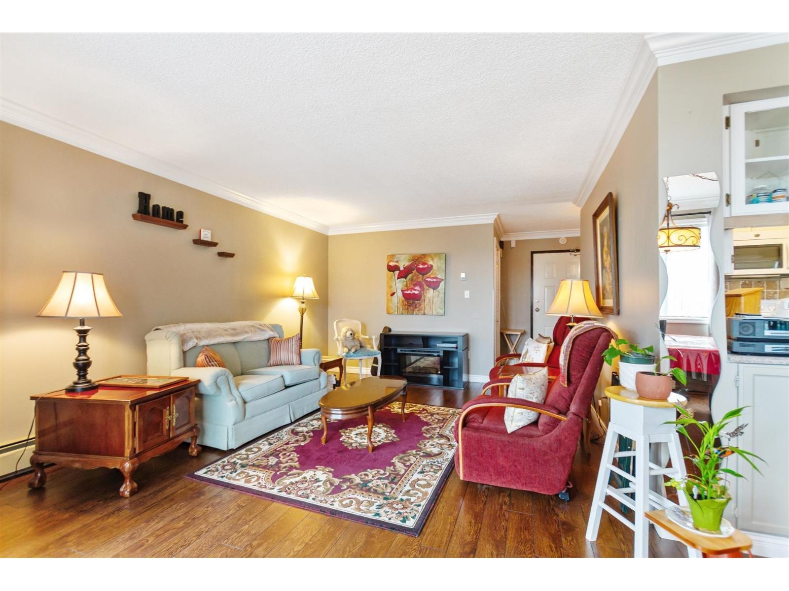 Welcome to Evergreen Village, a 55+ restricted community in West Abbotsford. This spacious & beautifully maintained in the high-rise section of the complex. It features 2 large bedrooms. Master has room for king bed, 2 full bathrooms one with shower and one with tub and shower. Family room and small eating nook off kitchen. Breathtaking view of Mount Baker. Bright cheerful suite. S/E Exposure. Insuite laundry and storage in suite. Fantastic amenities include: indoor pool, hot tub, social club, workshop & games room surrounded by beautiful landscaped grounds. Parking available for $10/mth. measured by IGuide, plan is generated from iSCANS. All information and measurements are approximate and to be verified by buyer if deemed important. (id:64528)