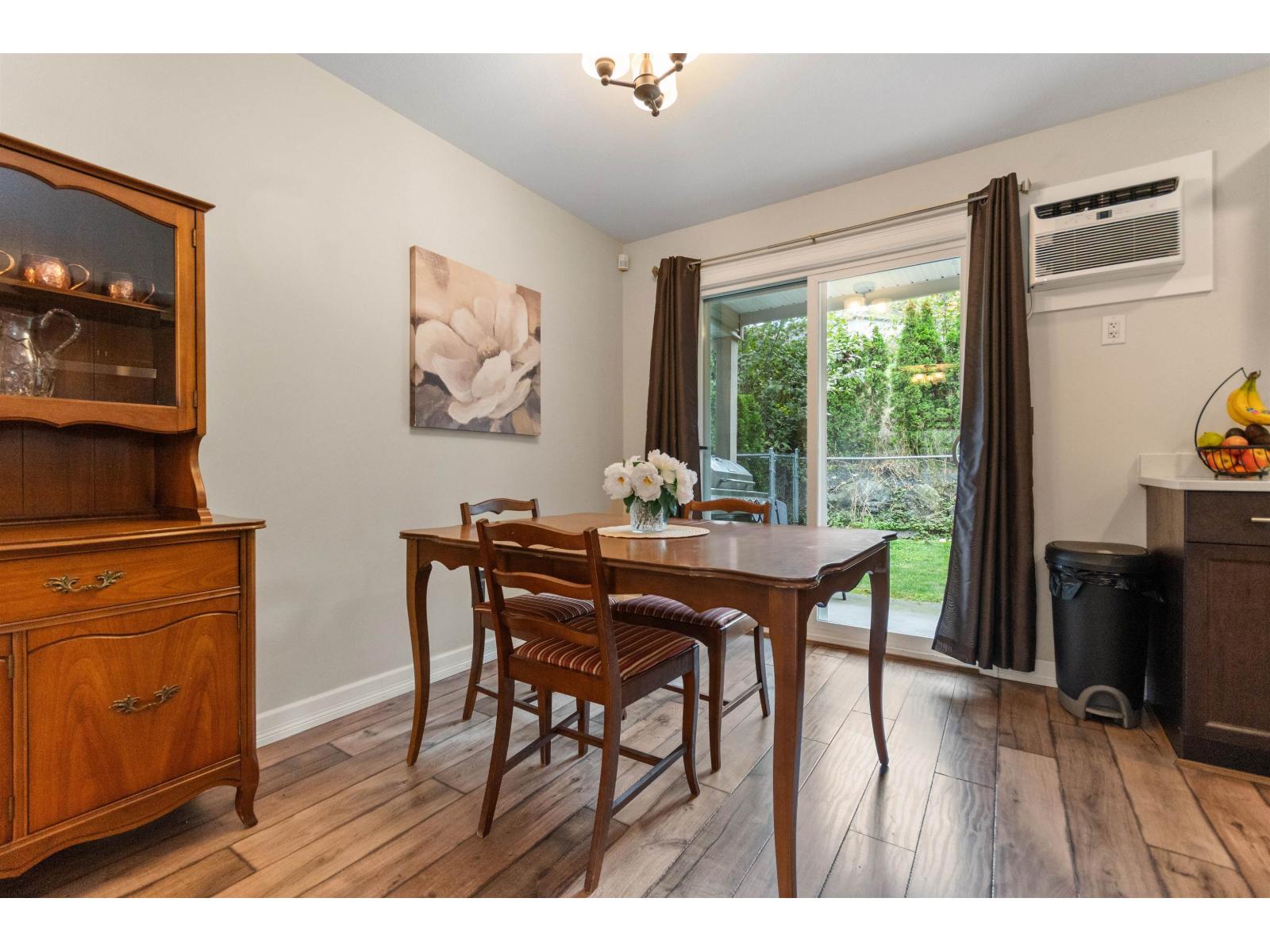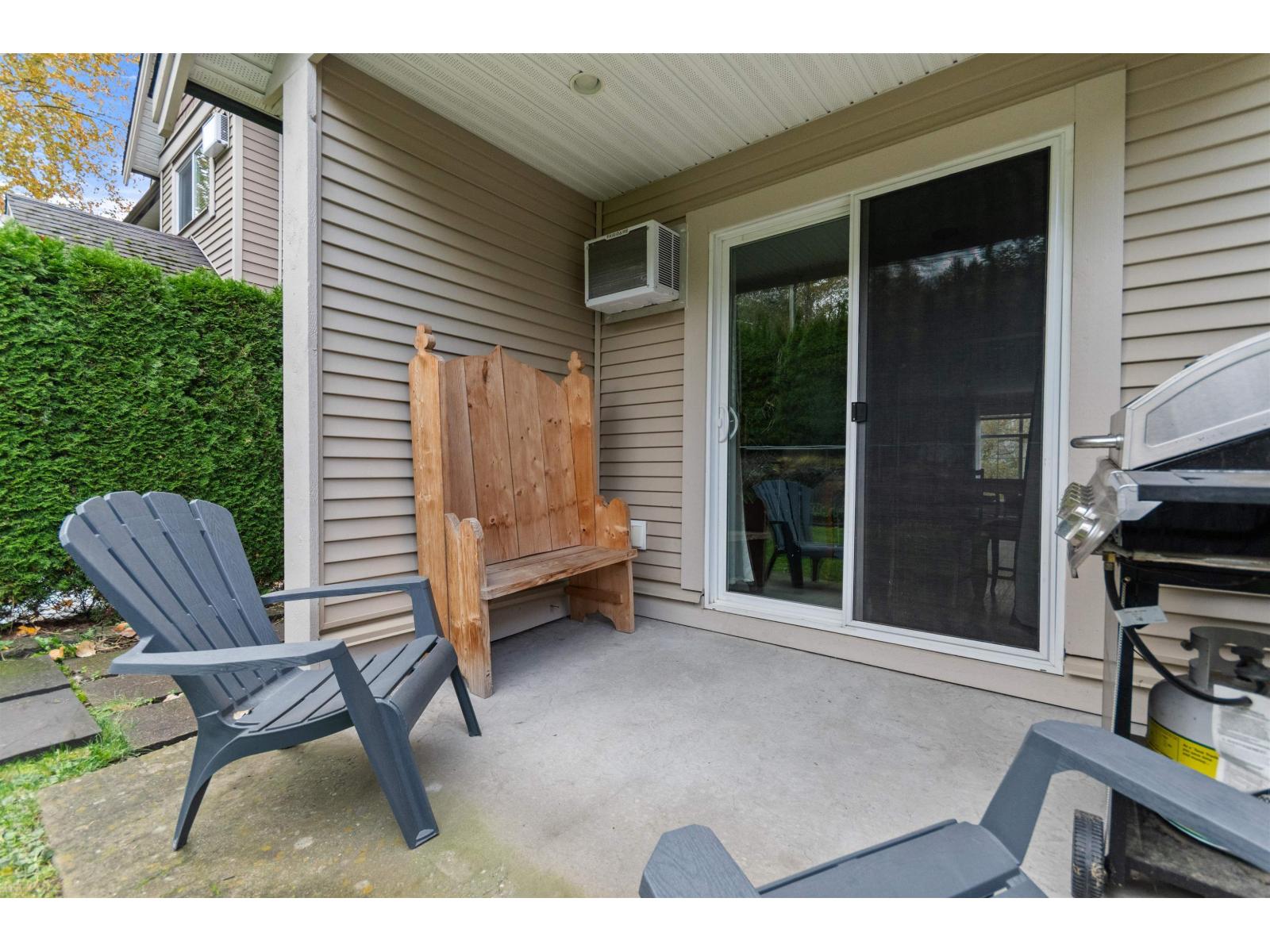 Across from a creek and trees, with no units to the front or back! The home is presented with fantastic UPDATES: PAINT, KITCHEN COUNTERS AND APPLIANCES, BATHROOMS and level access to the FULLY FENCED YARD and covered patio. Lots of natural light and surrounding greenery. Open style main floor with built-in A/C, Nat-gas fireplace, breakfast bar and step-in pantry. Primary suite with built-in A/C, walk-in closet and a modern ensuite with large tiled shower. Flex room and washroom down (perfect for teens, gym, office or guests). Deep garage and a full size driveway. Convenient visitor parking, 2 pets allowed. Easy access to freeway. Excellent school catchments. * PREC - Personal Real Estate Corporation (id:64528)