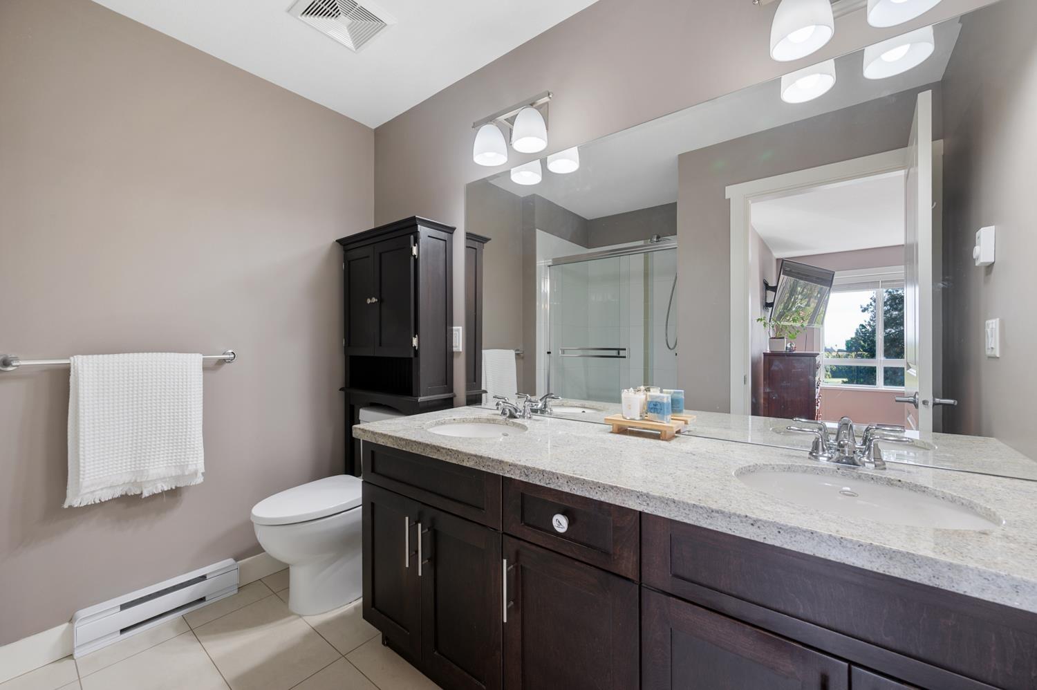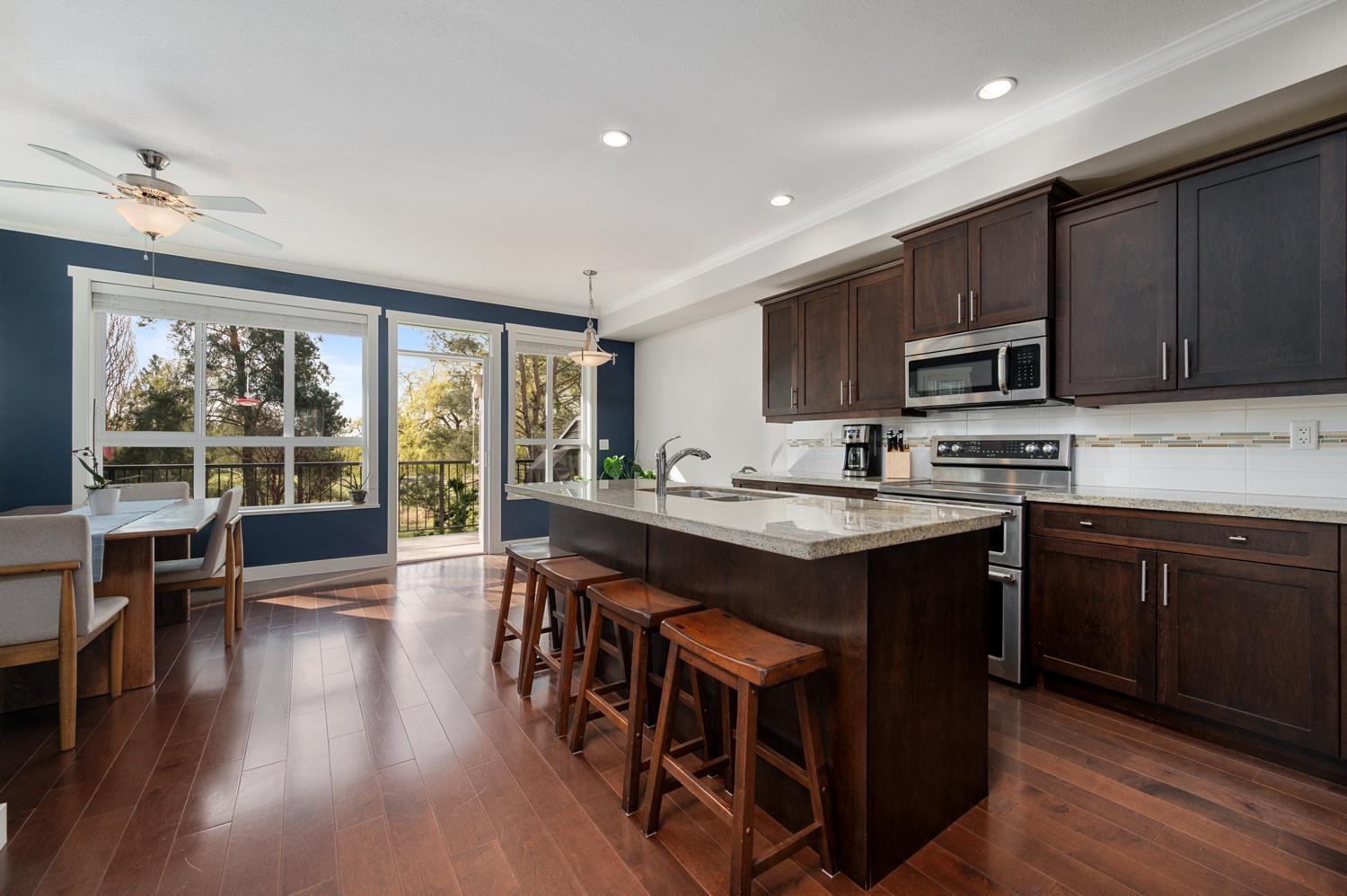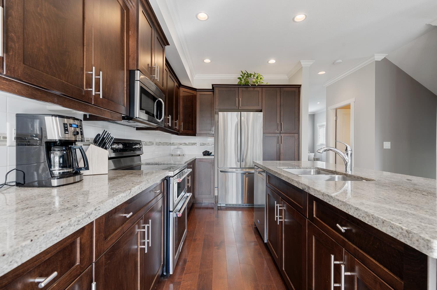 Welcome to this highly sought after corner unit by award winning Vesta Developments, perfectly positioned in one of the best locations in the complex, backing directly onto Surrey Golf Club. Bright and filled with natural light, this home offers stunning golf course and pond views from all three levels, creating a peaceful, private retreat. The main floor features 9 foot ceilings, a gourmet kitchen with upgraded appliances, ample storage, and a thoughtfully designed layout ideal for both everyday living and entertaining. Step out onto the spacious deck or unwind on the lower patio while taking in the serene surroundings. The lower level offers a versatile rec room, office, or guest bedroom complete with a full 3 piece bathroom. Enjoy a short 2 minute walk to the clubhouse, mornings filled with songbirds, and a warm, welcoming community. All just minutes to Surrey Sports Complex and Guildford Town Centre, this home truly has it all. OPEN HOUSE APR 18 & 19 - 2 to 4pm (id:64528)