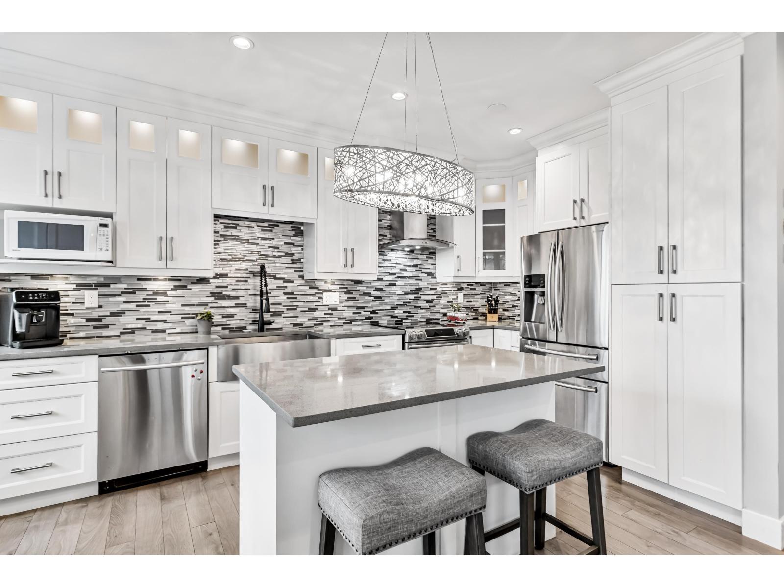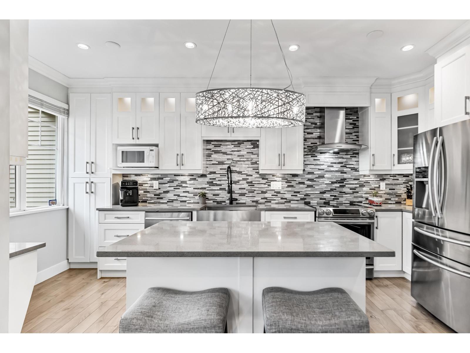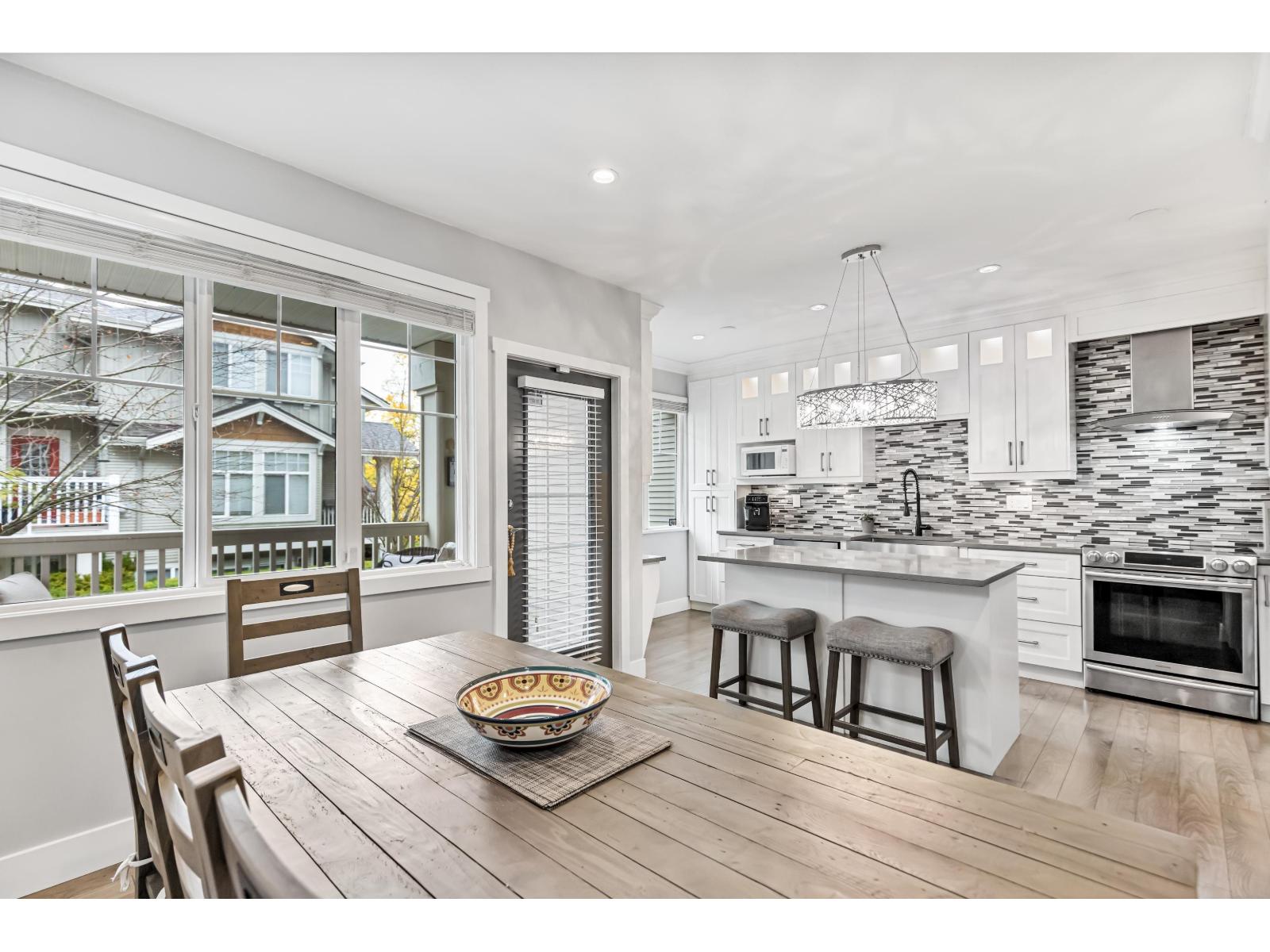 Welcome to Redmill by Dawson Developments. This spacious & elegant 4 bedroom, 3 bathroom end unit is flooded with natural light and is adorned by a large, south facing yard. This home has been fully updated with a completely reconfigured kitchen and dining area, updated flooring, fixtures, appliances and bathrooms. Other features include 9' ceilings, a large living room with custom stone gas fireplace, a double side by side garage, a large balcony off of the dining room and a covered porch off of the main living room that is perfect for entertaining. Ideal Panorama location that is close to transit, YMCA, Fresh Street, Cambridge Elementary, Panorama Village Park, medical services, shopping, restaurants, coffee shops, and banks. Enjoy direct access to all major commuter routes all while still feeling tucked away on a quiet, tree-lined suburban street. Bonus street parking off of the front yard and visitor parking right beside the unit! Open House Saturday April 18, 2-4pm. (id:64528)