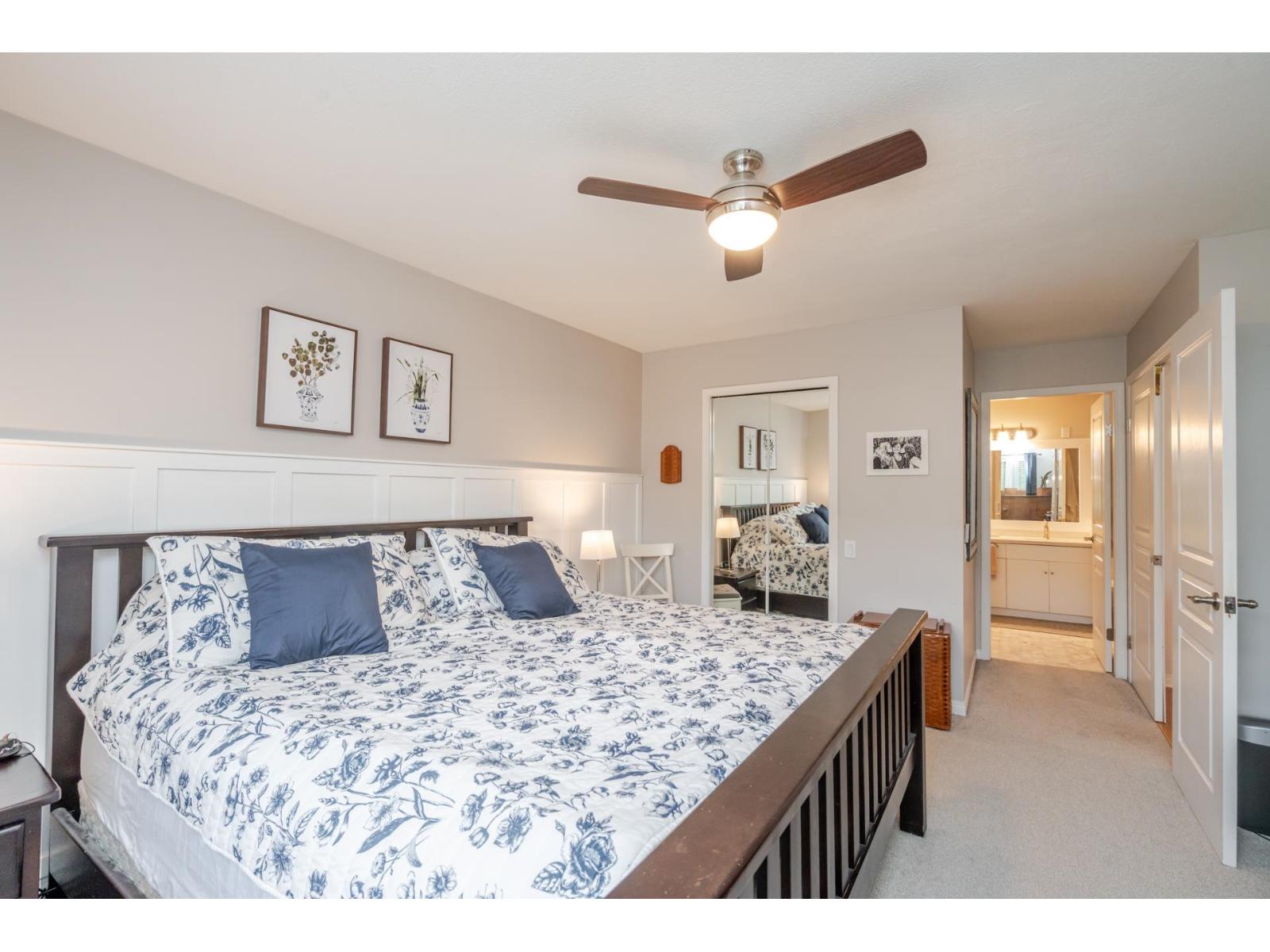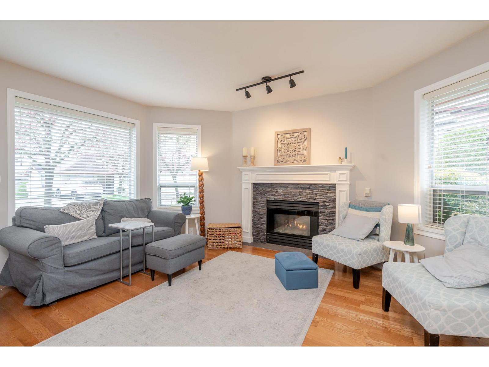 Welcome to Elwood Estates, a well-maintained gated townhouse community in Abbotsford. This updated 3-bed, 3 bath home features a stylish updated kitchen with Whirlpool stainless steel appliances, maple cabinetry, and Silestone quartz countertops throughout, including the bathrooms. The open-concept main floor offers bright living and dining spaces, a cozy family room with gas fireplace, and a spacious primary bedroom with walk-in closet and 5-piece ensuite. Upstairs features two large bedrooms and a versatile landing which could be a small library. Additional highlights include main floor laundry, updated lighting, and an energy-efficient Bosch on-demand system for in-floor heating and continuous hot water. Well-appointed complex with clubhouse, fitness area, and social spaces. (id:64528)