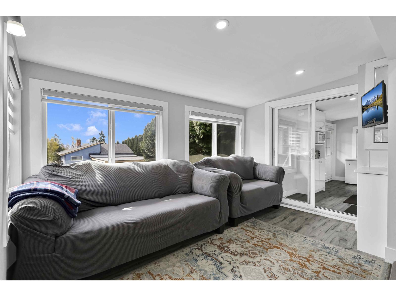 Welcome to this beautifully renovated home just steps from Semiahmoo Secondary and minutes to White Rock Beach and amenities. Offering 6 bedrooms and 4 bathrooms, this 2,820 sqft home includes 3 bedrooms up, 1 bedroom down for main use, plus two self-contained 1 bed/1 bath suites-ideal for extended family or rental income. Situated on a 7,198 sqft lot with lane access, enjoy peek-a-boo ocean views, mountain views, and a spacious SOUTH-facing backyard. Over $150,000 in upgrades include a new roof, furnace, exterior paint, and spice kitchen. Open House April 18/19, 2-4PM. (id:64528)