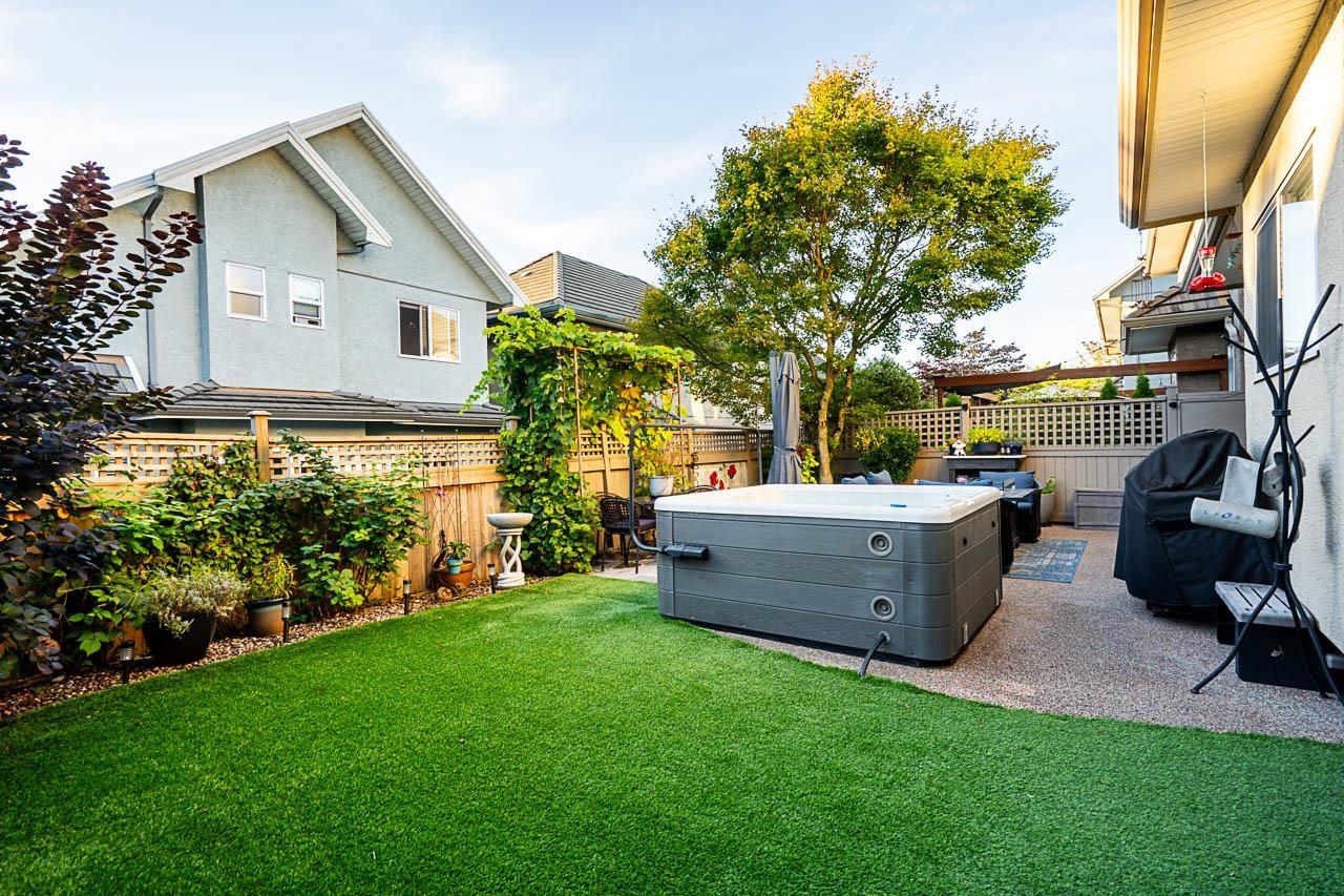 Beautifully RENOVATED FULLY DETACHED HOME in the sought-after Rockwell complex in Rosemary Heights! This spacious residence features 4 bedrooms / 3.5 baths, including 3 bedrooms on the upper floor & a fully finished basement with an additional bedroom, storage & rec room. UPDATES include: renovated bathrooms w/heated floors, newer flooring, newer carpets, quartz counters, painted cabinets w/pull out shelves, new door hardware, lockets & hinges, designer lighting, LED pot lights, linear fireplace w/custom surround, new appliances, ceiling fans, Heat Pump/AC, HWT, hot tub, security system & more. Exterior Upgrades feature extended Sierra Stone patio, basalt stone patio & metal arbor, extended cedar steps, artificial turf & new garden doors. Open House ~ Sat 1pm to 3pm. (id:64528)