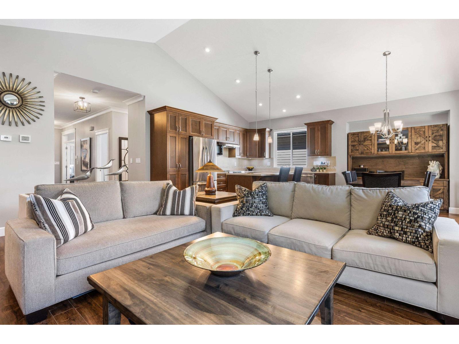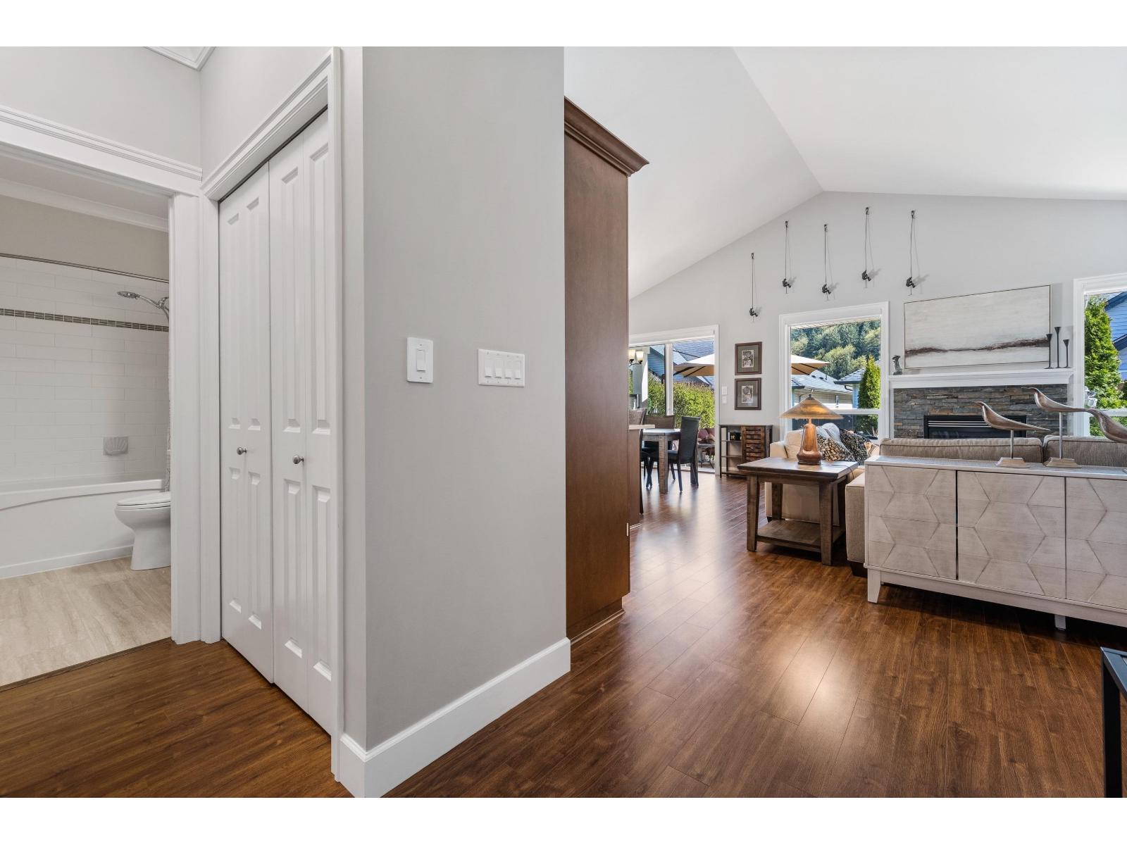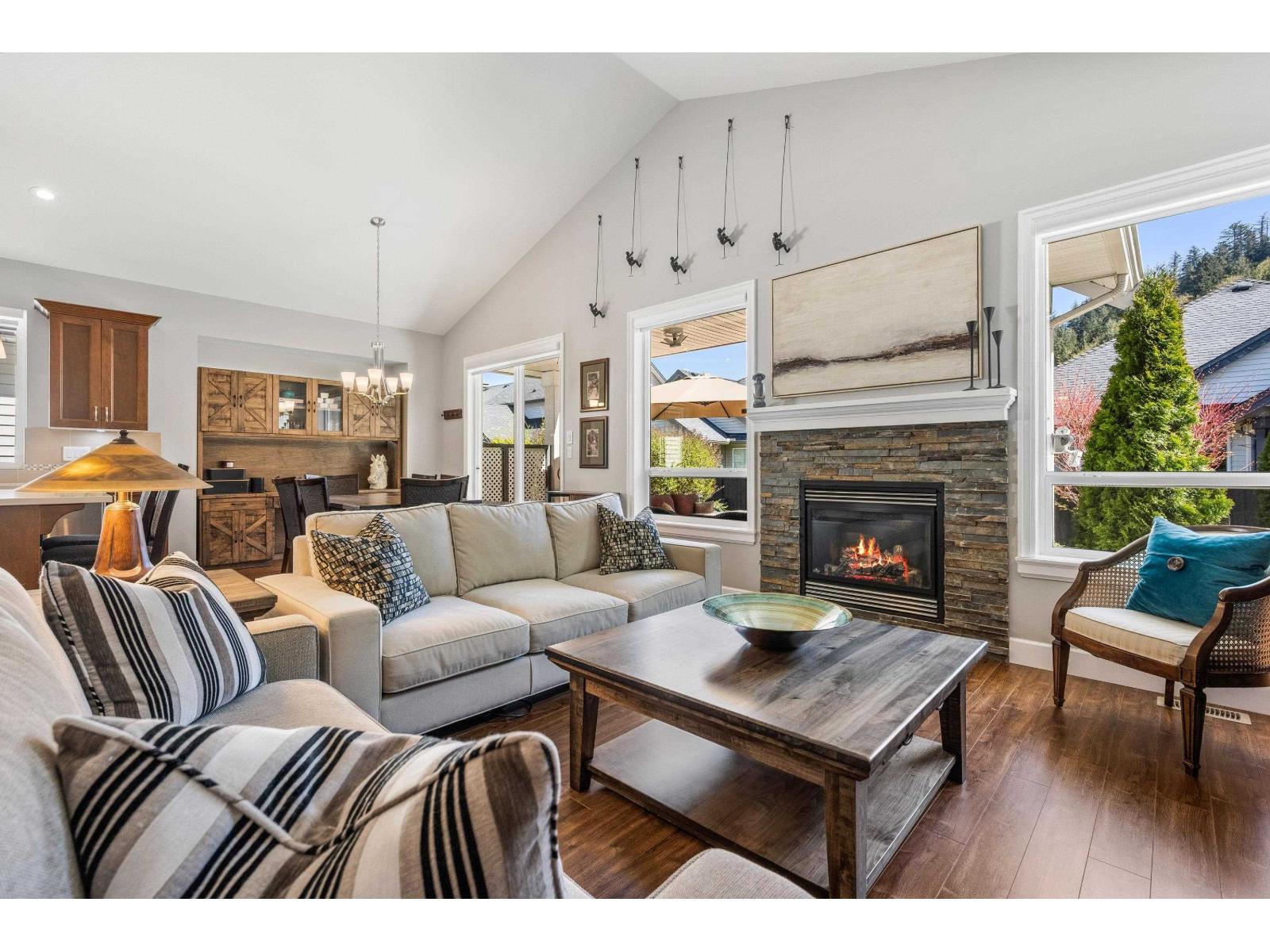 Welcome to Englewood Village! This immaculate 2 bed + den rancher in the heart of this 45+ gated community offers airy, open-concept living & vaulted ceilings. Picture Windows, serviced by pwr/remote shades found throughout, bathe the home in natural light & anchor the NG fireplace. The Gourmet Kitchen boasts Quartz counters, S/S APPL w/upgraded conv. range/air fryer & pull-out cabinet drawers. The primary BR feat. W/I closet w/bespoke organizers & ensuite w/marble vanity & heated floor. Tailored cabinetry/sink in the laundry offers tremendous functionality. Addl. BR and Den complete the package-but for those looking for a little more, the custom bonus room is a terrific gym/craft space. The deck & landscaped yard w/stunning Mtn. view is the perfect Oasis. Book your private viewing today! (id:64528)