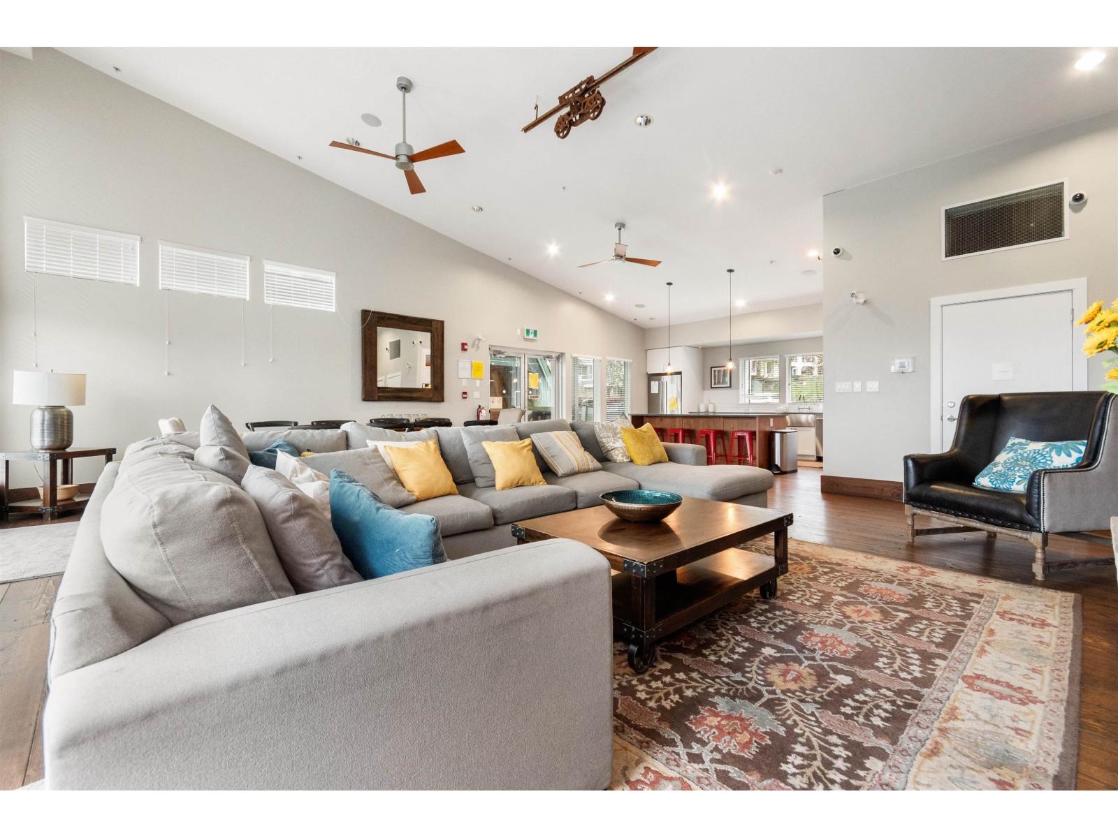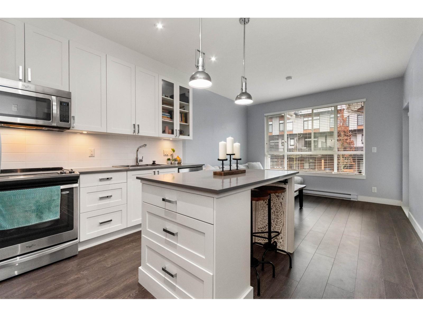 Top floor 1 bedroom plus den, featuring two parking stalls and a storage locker! Enjoy a covered patio, a spacious living room and primary bedroom, and a versatile den perfect for a home office. The modern kitchen features stainless steel appliances and high-end finishes throughout. The amenities here are next level-a beautifully designed amenities building with a fully equipped gym, theatre room, and a gourmet kitchen. There is also a stunning second amenities hall ideal for hosting events or parties. Even better, the complex offers 3 guest suites available for owners to rent for a low cost! A fantastic opportunity in one of Cloverdale's most desirable communities, The Ridge at Bose Farms. (id:64528)