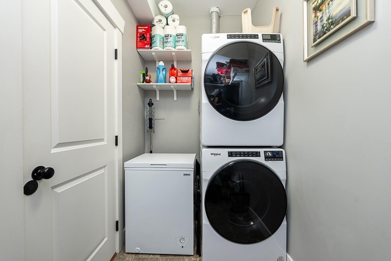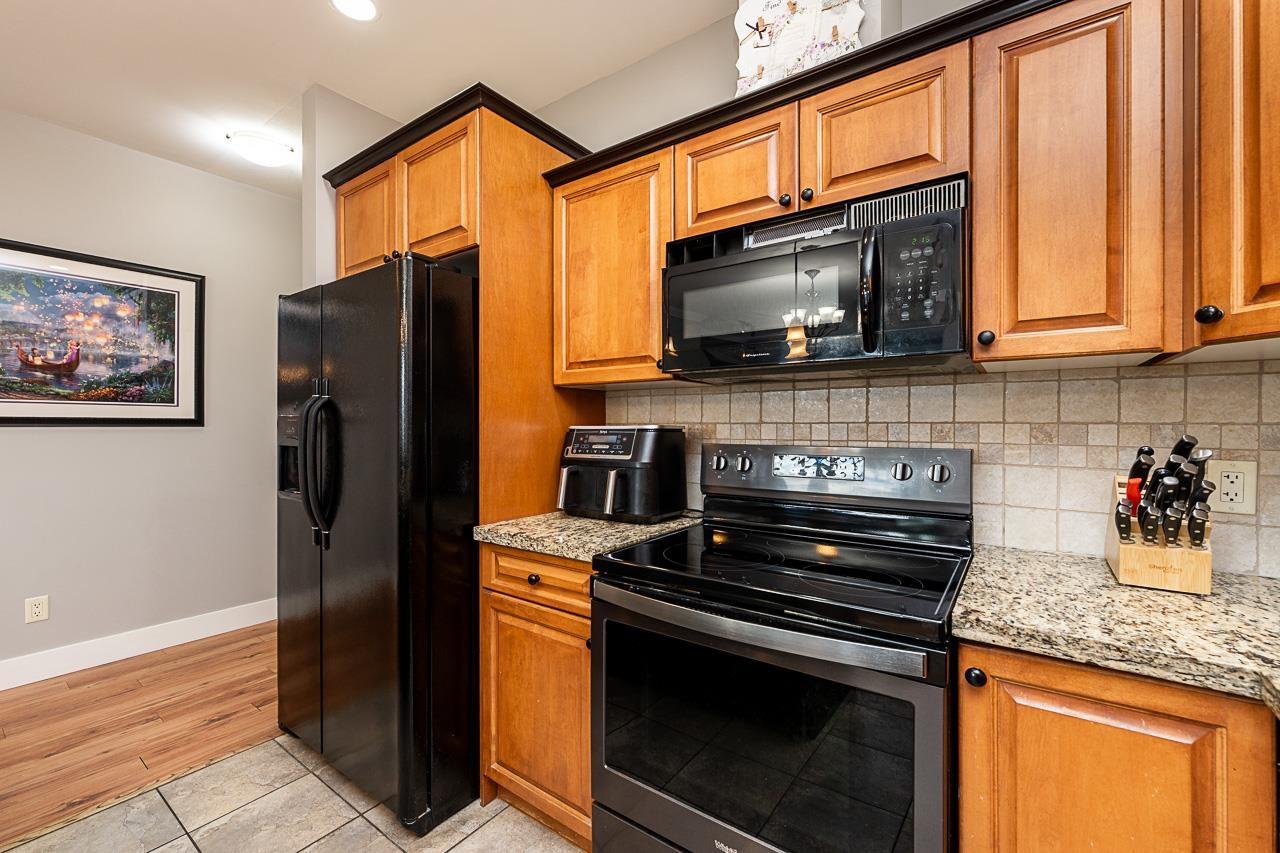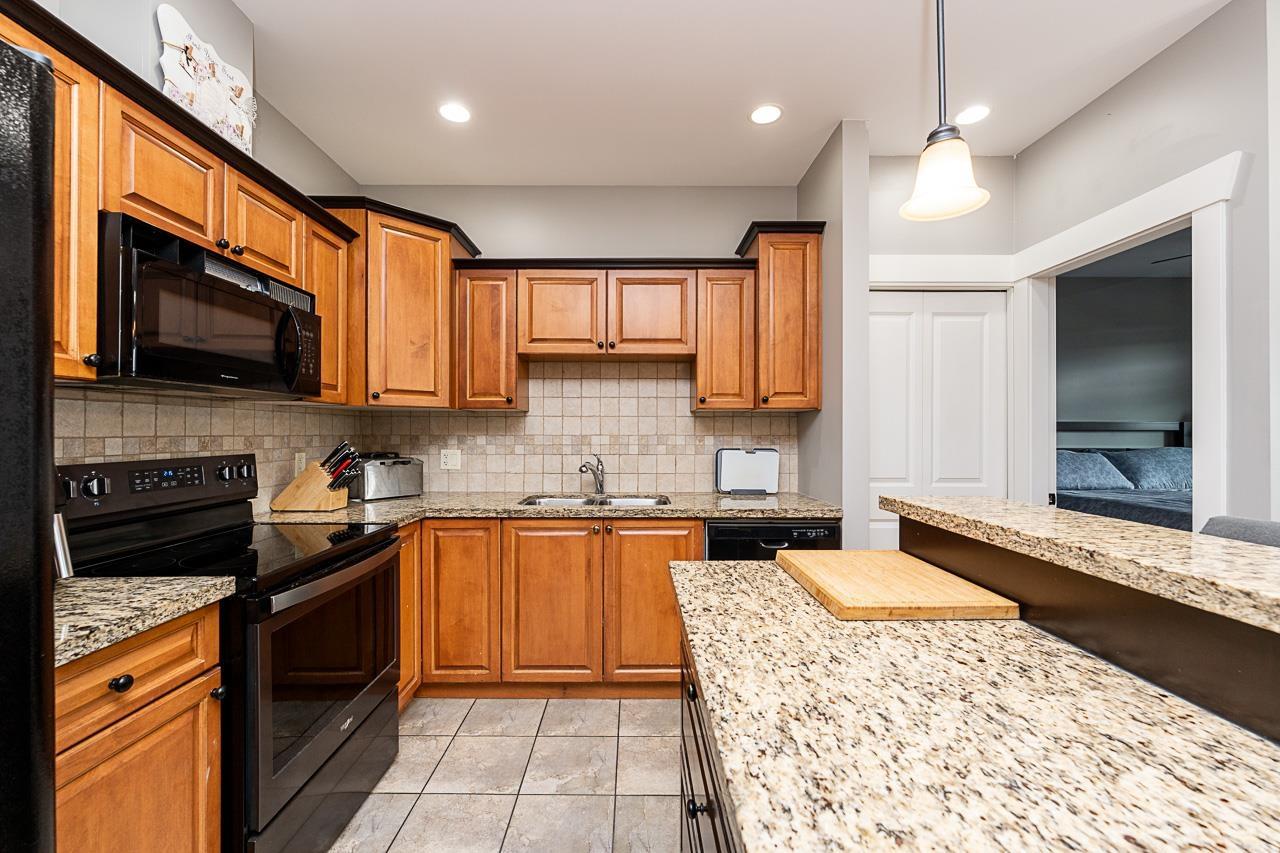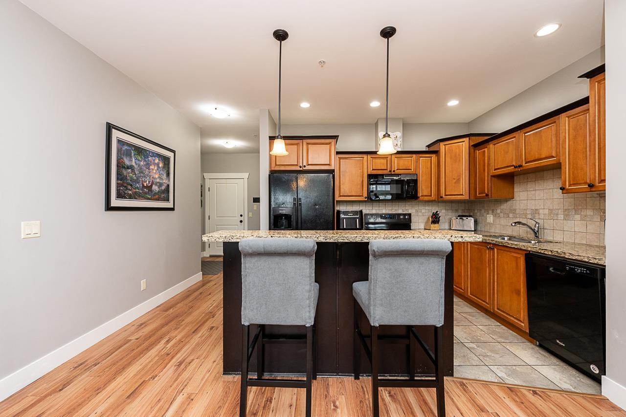 Welcome to The Charleston! This bright and well maintained 2 bedroom, 2 bathroom condo offers a desirable south facing exposure, bringing in an abundance of natural light throughout. The open concept living space features an electric fireplace and flows onto a covered patio, perfect for year round enjoyment. The primary bedroom includes a spacious ensuite with double sinks, and the home also features a new washer and dryer for added convenience. One covered parking stall is included. Situated in a well run strata, this condo is ideally located within walking distance to District 1881, with shops, dining, and entertainment right at your doorstep. Call today! An excellent opportunity for comfortable and convenient condo living! * PREC - Personal Real Estate Corporation (id:64528)