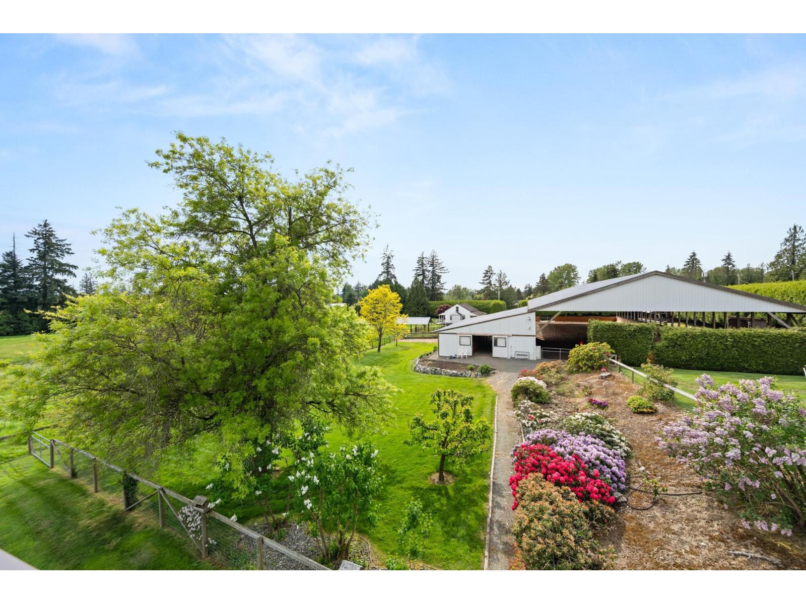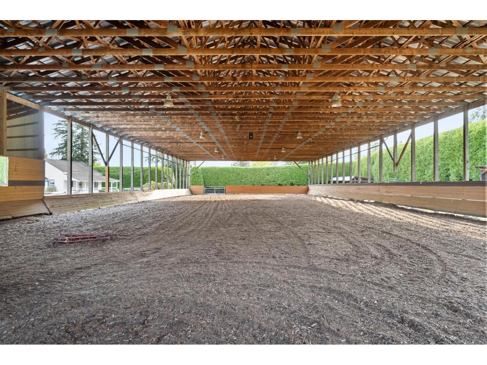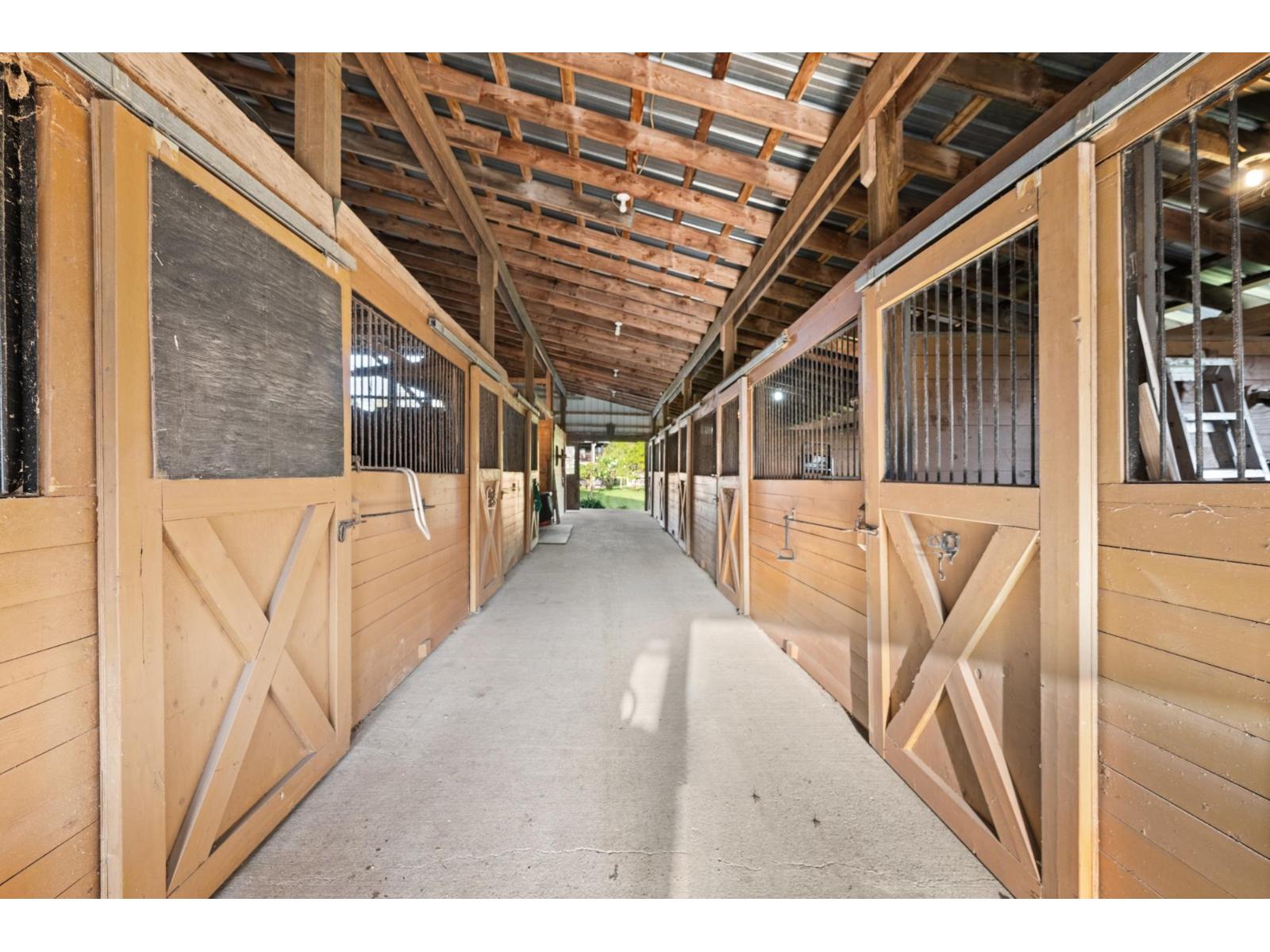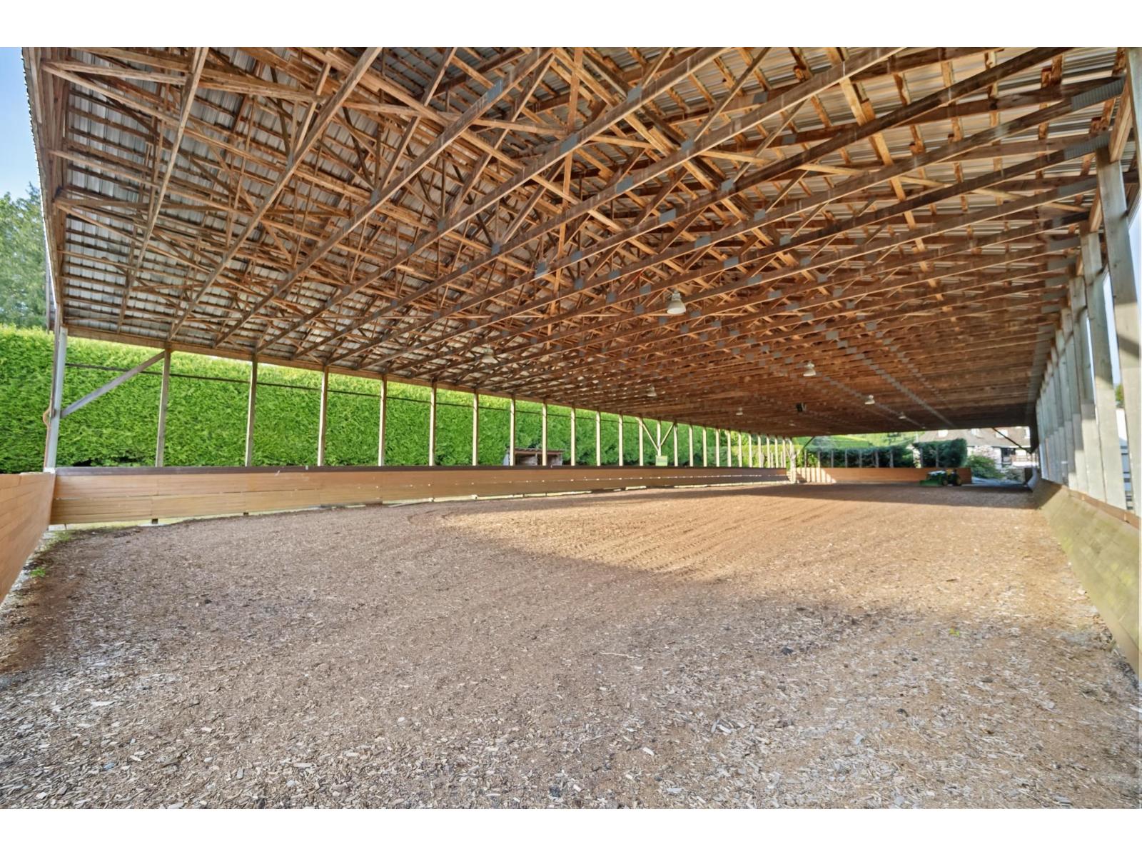 Spectacular private 9.5-acre equestrian estate: stunning 4,623 sq ft 2-storey plus basement with double garage, immaculate grounds, gated entry and mature landscaping. Property includes a 1000 sq ft cottage with wraparound deck and separate access, a 126x70 ft covered riding ARENA and 8 Stall BARN and storage. Main home features a walkout daylight suite with 2 beds, fireplace and picturesque windows. Main house has a grand kitchen with island and stainless appliances; rock fireplace; primary with oversized walk-in closet and 5-pc ensuite; gym and covered deck. Perfect for horse enthusiasts seeking privacy and turnkey country living. (id:64528)