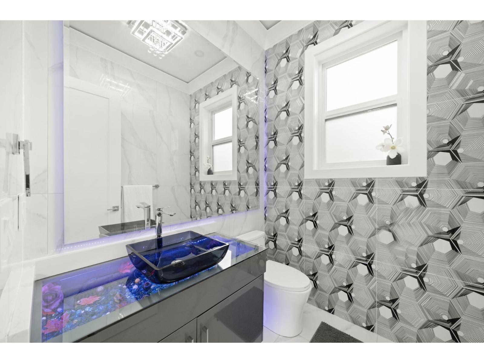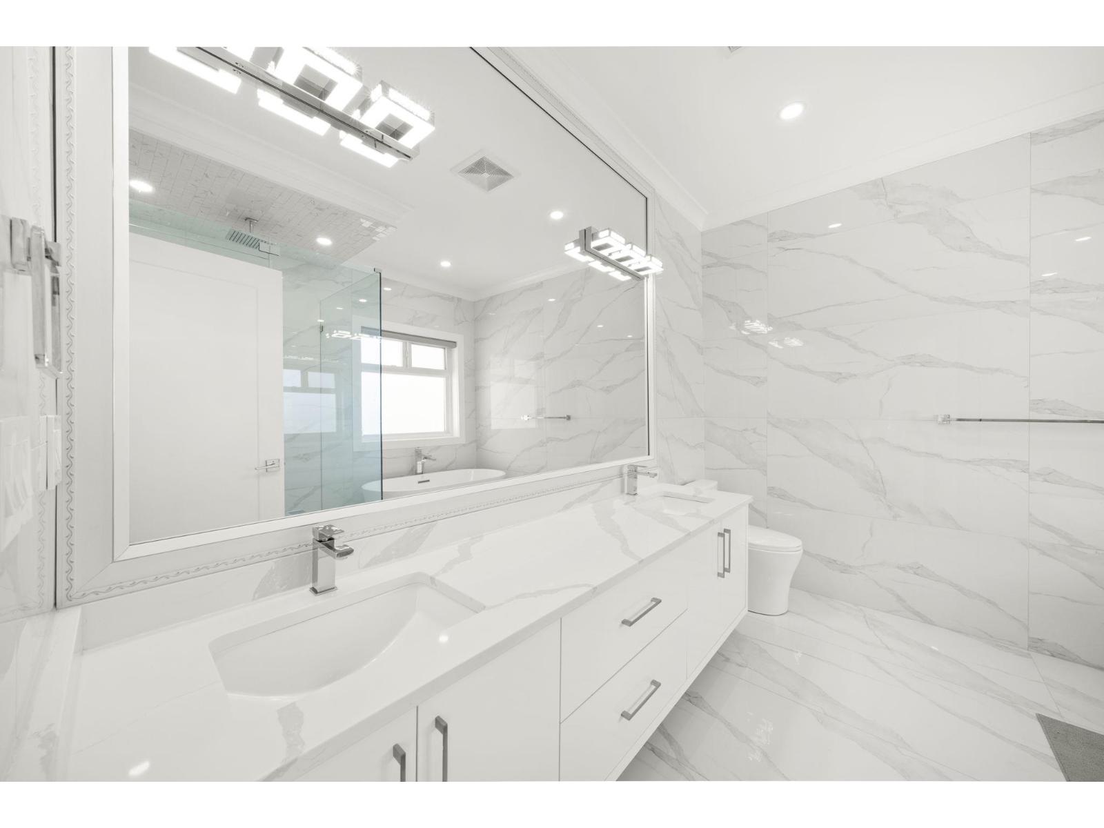 Stunning 8 bedrooms + 9 bathrooms house in fleetwood. Big foyer with elegant lighting welcoming you to the living room, dining room, family room kitchen, spice kitchen with elegant kitchen cabinets. stainless steel kitchen aid appliances. Hiuge office/theatre room, additional spacious bedrooms with full bathroom and a powder room on main floor. Upstairs features a primary bedroom with huge walk in closet, 3 bedrooms with full bathrooms (ensuites) and a laundry room. Big theatre room/bar with full bath, legal 2-bedroom suite+1 bedroom mortgage helper, rec room in basement. Close to golf course. Easy access to Langley, Cloverdale and Vancouver. Surveillance cameras, alarm system, radiant heat and central air conditioner. (id:64528)
