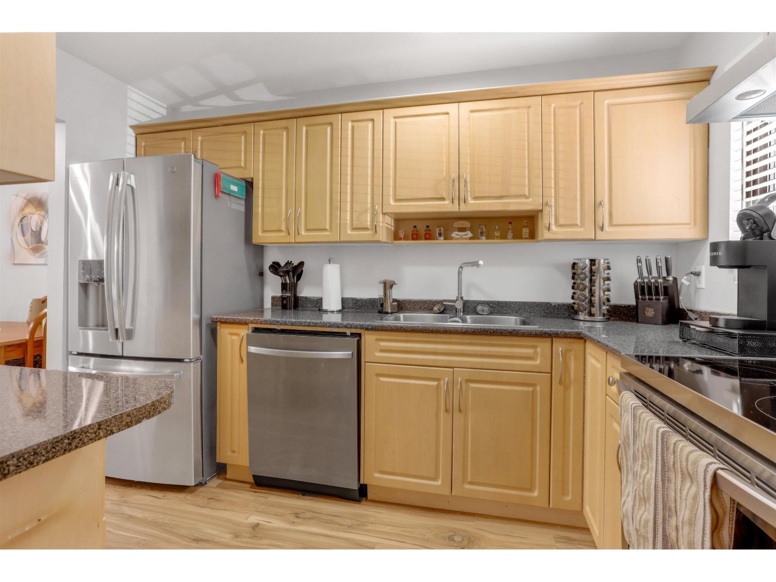 Fully updated 2-bed home in a fantastic Surrey location with Low Strata! Enjoy engineered hardwoods floors throughout, a brand-new kitchen, new appliances, and a stunning modern bathroom. The spacious living area opens onto a large private deck backing onto a lush greenbelt - perfect for relaxing of entertaining. Incredible privacy and views! Located in a quiet, family-friendly neighborhood with access to a seasonal community pool complete with lifeguard - great for kids or an evening swim. Don't miss this turn-key gem! (id:64528)