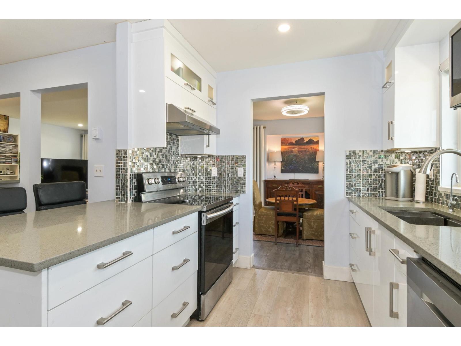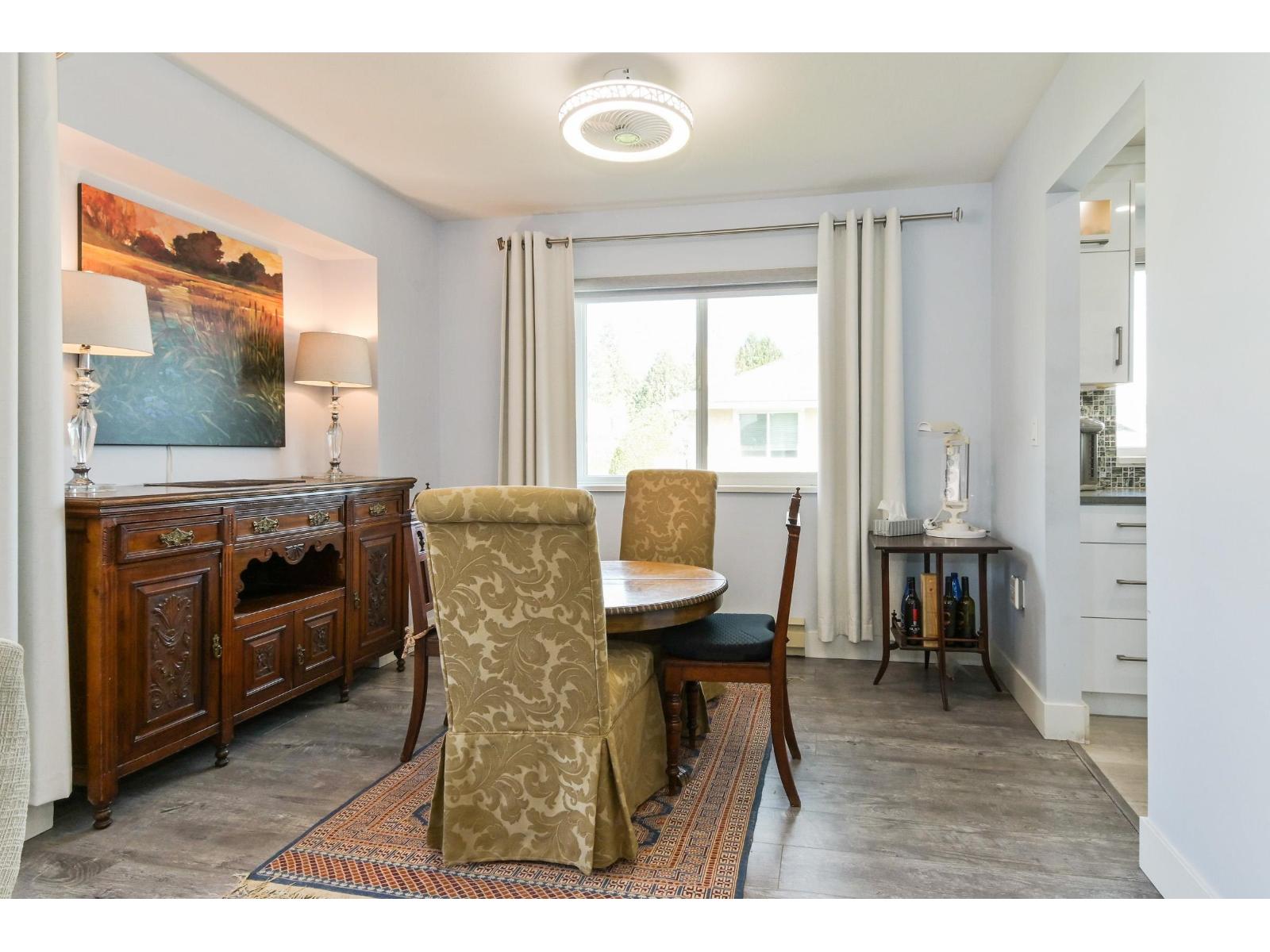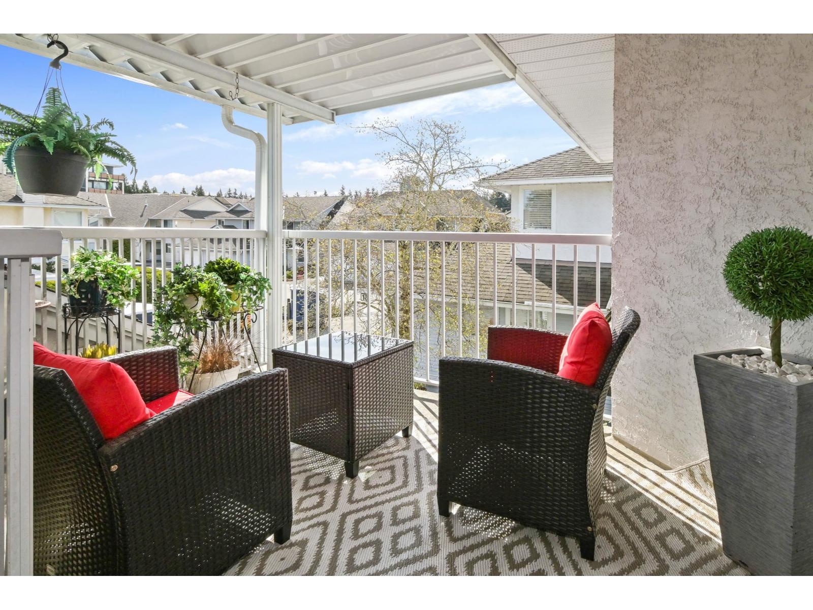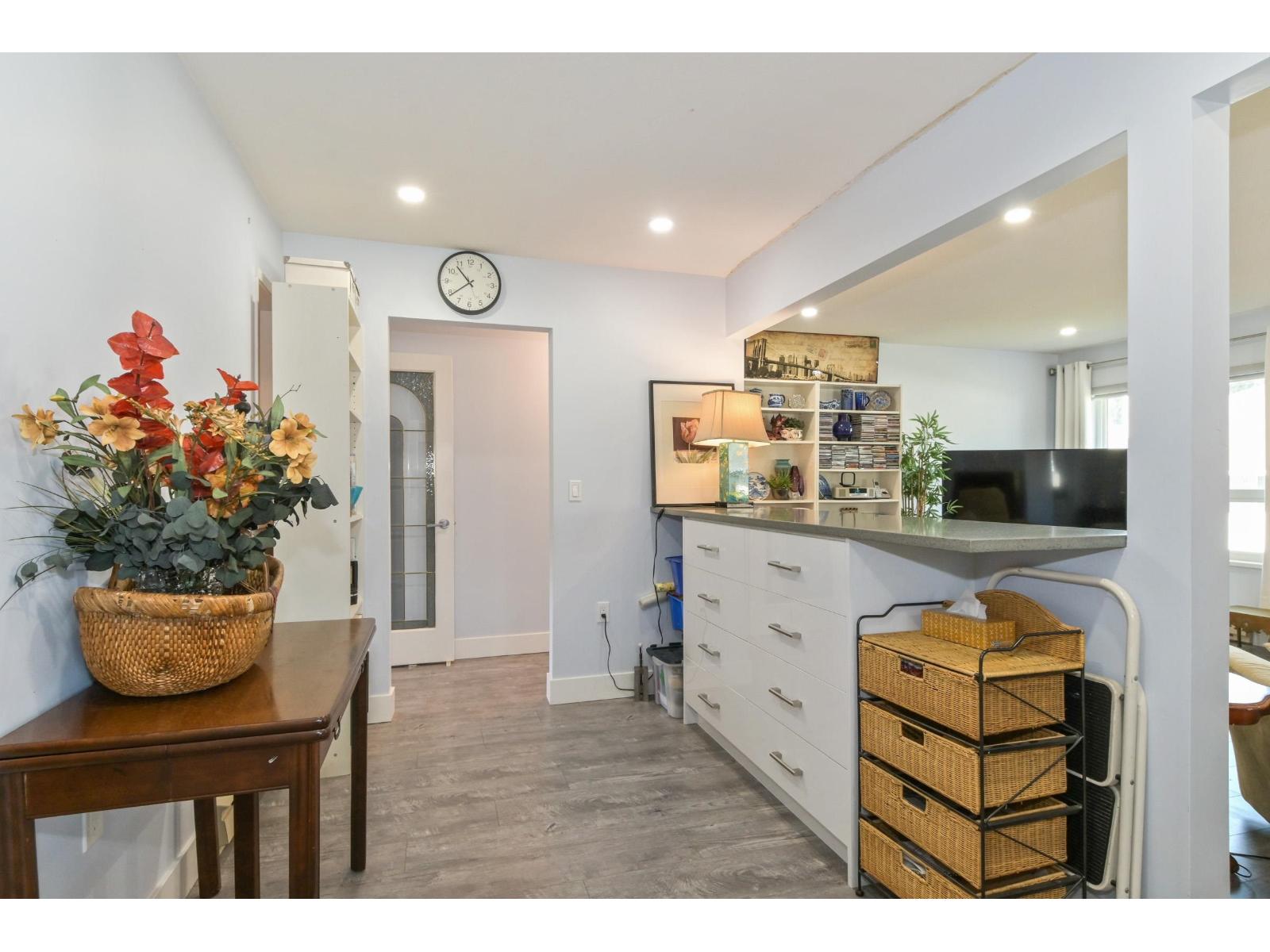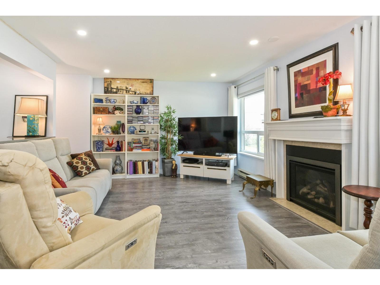 Discover the ease of top-floor living in this beautifully renovated 2 bed, 2 bath townhome, in Emerson Park Estates, perfectly suited for those looking to downsize without sacrificing comfort or style. Thoughtfully updated with quality finishes throughout, this inviting home features a bright modern kitchen with white cabinetry, quartz countertops, stainless steel appliances, laminate flooring, refreshed bathrooms with tile and vanities, and custom blinds. Enjoy the added convenience of a single car garage with storage. Set in a well-kept adult-oriented community close to West Oaks & Seven Oaks mall, Save On Foods, dining, recreation, Mill Lake park, transit, Hwy 1, and all that Abbotsford has to offer. 55+ complex. Open House April 18 from 1:00pm to 4:00pm. (id:64528)