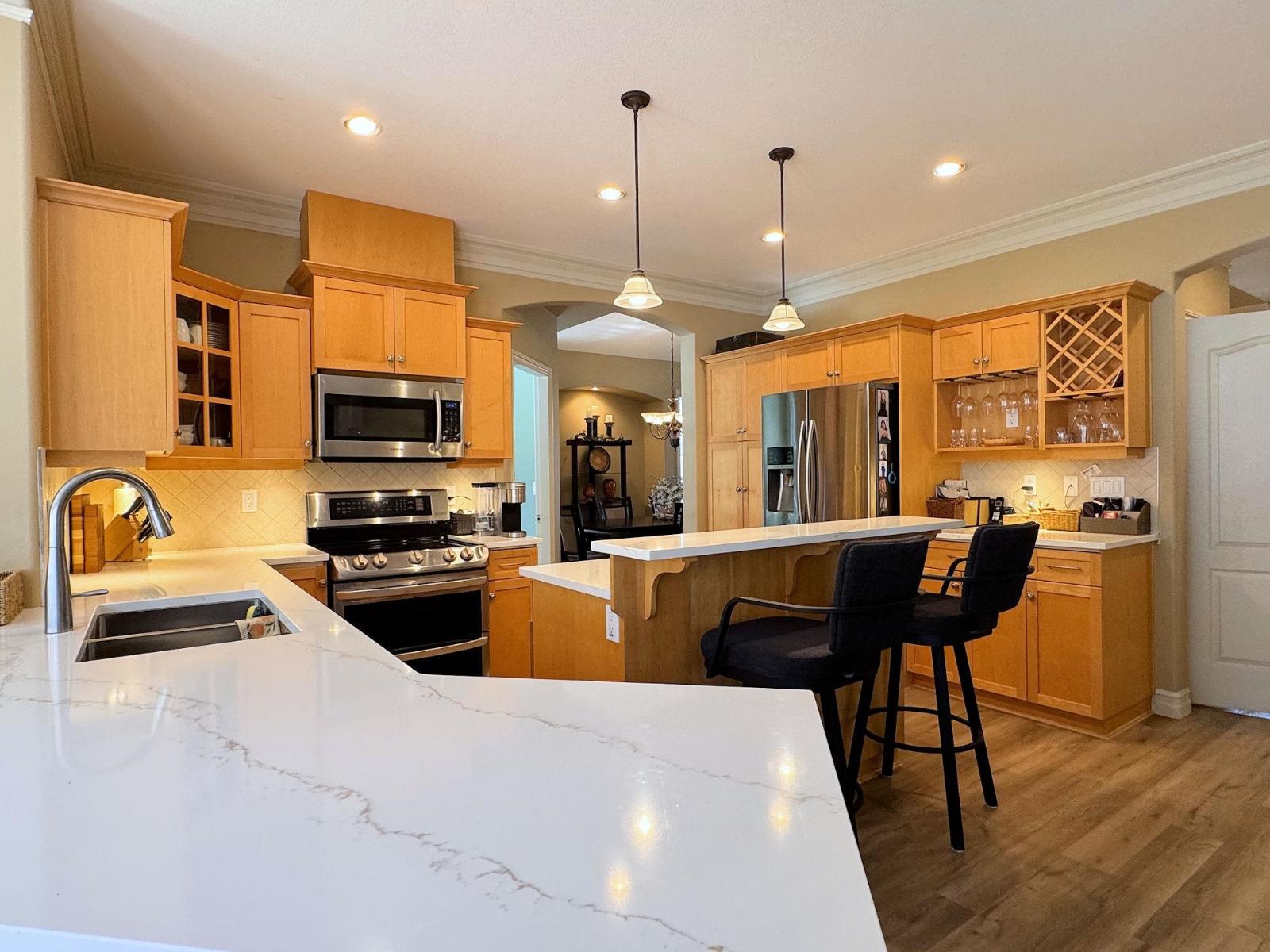 Beautiful Clayton Knoll executive home on a south-facing, 6,523 sq ft property on a quiet no-thru road. EXTENSIVE UPGRADES/UPDATES (2022) include furnace & A/C, tankless hot water, upgraded electrical panel with EV charging capability and 200amp BC Hydro cabling to the home, plus new eaves and gutters. Interior updates incl quartz counters, new sinks along with refinished cabinetry in 3 bathrooms and the kitchen, and vinyl plank flooring on the main level. Outdoor improvements include a rebuilt Trex deck (including joists), hot tub and hot tub roof replacement, and a well-maintained concrete tile roof with a 50+ year lifespan recently professional clean and treated. Licensed bsmnt suite not used. A meticulous home in a sought-after family-oriented neighbourhood close to schools & parks! (id:64528)