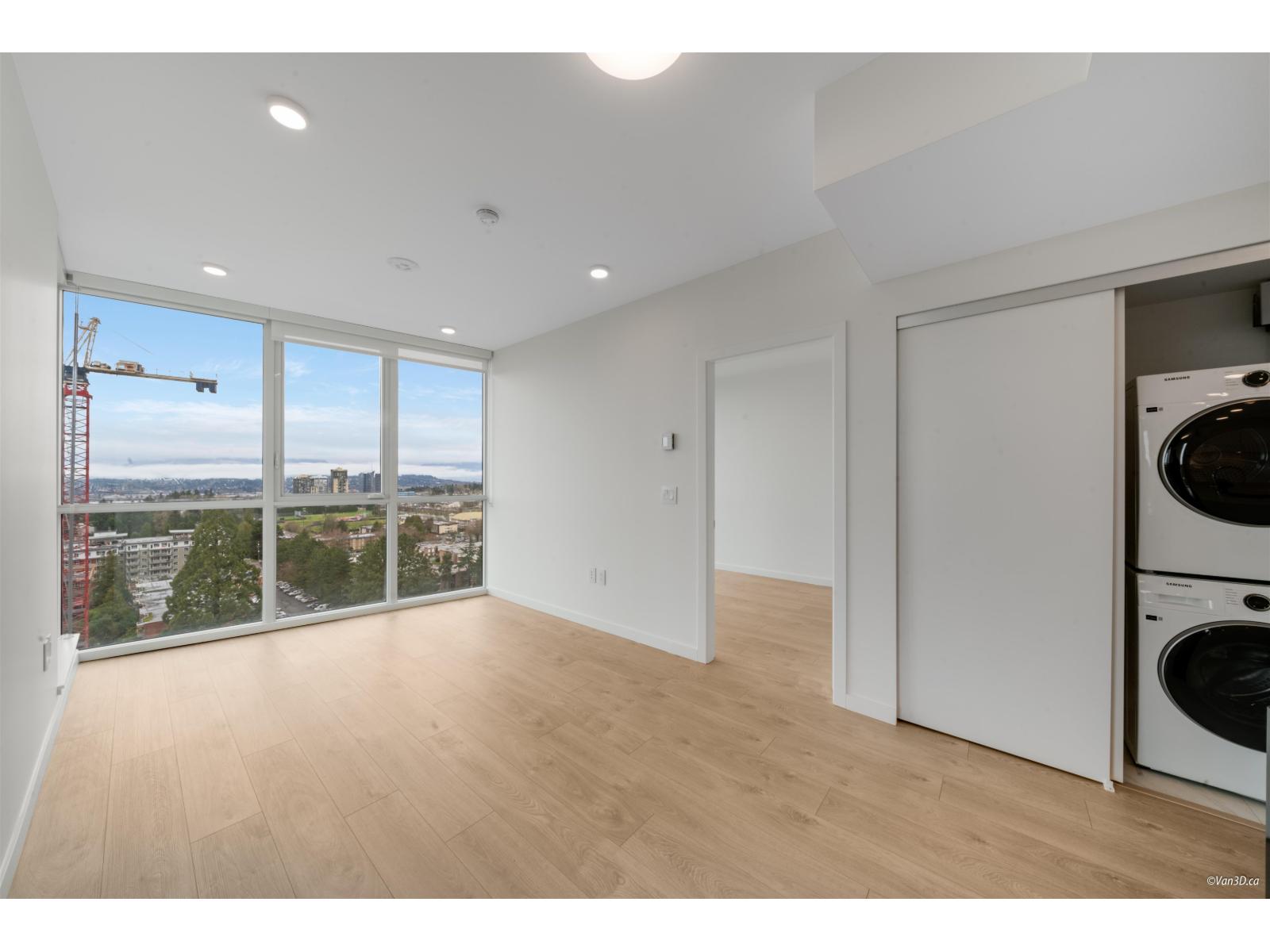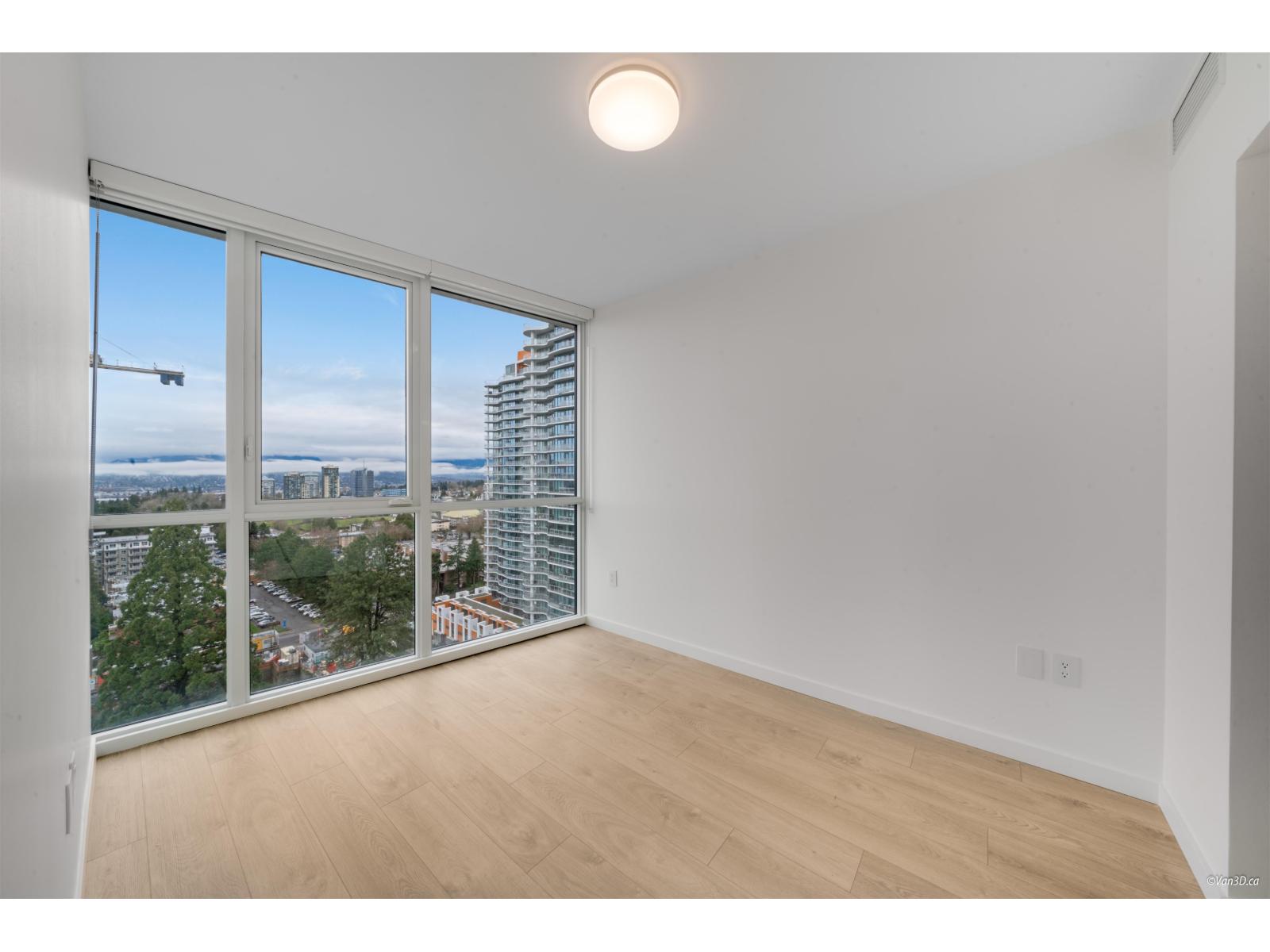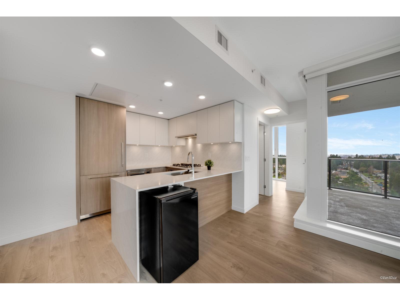 Bright corner unit with floor-to-ceiling windows and stunning mountain and city views.This modern home features AC, a stylish full-size kitchen, and a smart layout with bedrooms on opposite ends for privacy. The spacious primary bedroom fits a king bed and includes a walk-through closet, plus a large covered corner patio perfect for relaxing. Located just an 8-minute walk to Surrey Central SkyTrain Station, Kwantlen Polytechnic University, and Surrey Central, this home is ideal for professionals or small families seeking comfort and convenience. Rental req:1-3occupants,employment verification and references. Available May1st. (id:64528)