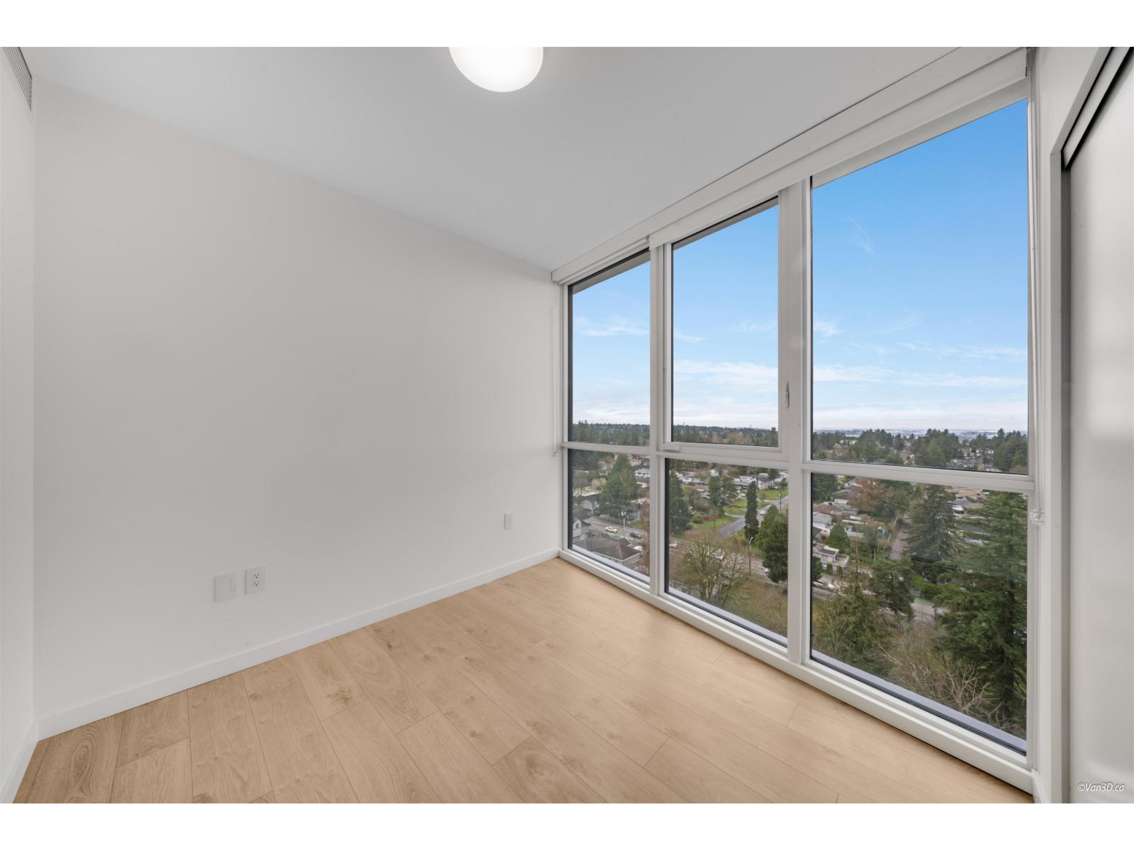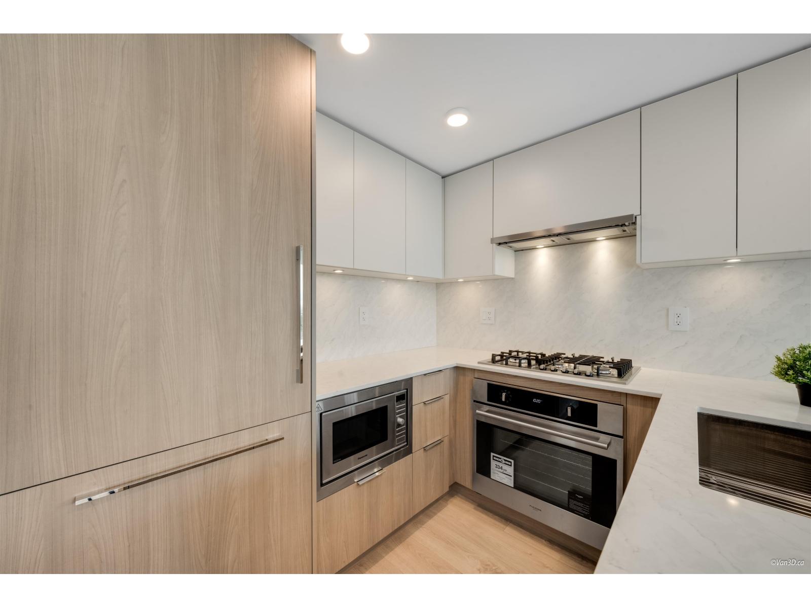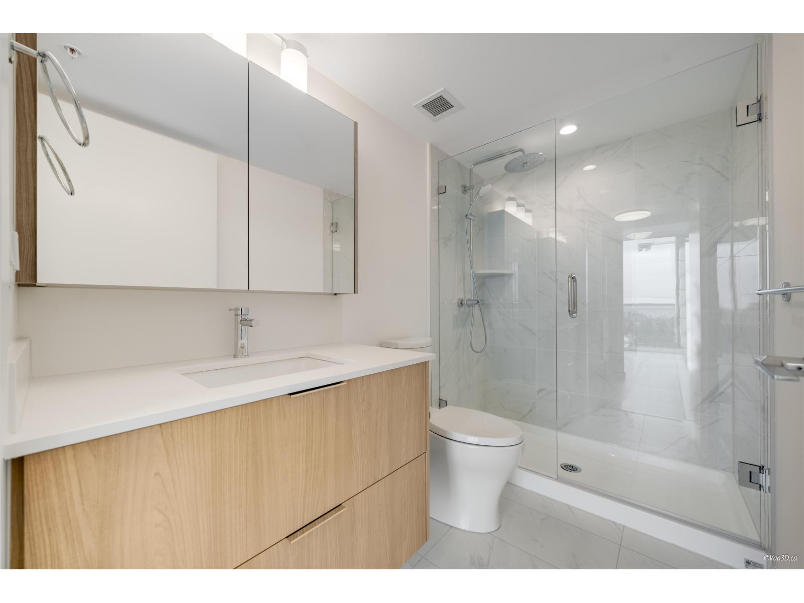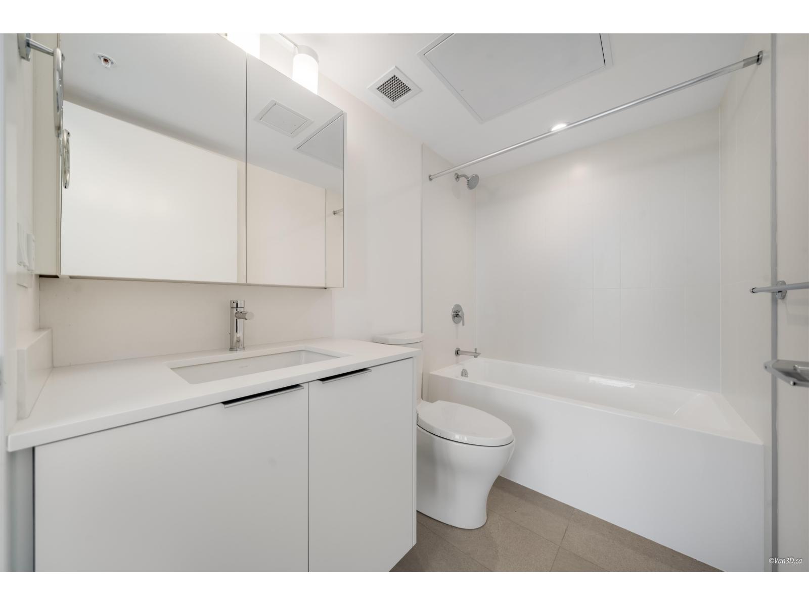 Bright corner unit with floor-to-ceiling windows and stunning mountain and city views.This modern home features AC, a stylish full-size kitchen, and a smart layout with bedrooms on opposite ends for privacy. The spacious primary bedroom fits a king bed and includes a walk-through closet, plus a large covered corner patio perfect for relaxing. Located just an 8-minute walk to Surrey Central SkyTrain Station, Kwantlen Polytechnic University, and Surrey Central, this home is ideal for professionals or small families seeking comfort and convenience. Rental req:1-3occupants,employment verification and references. Available May1st. (id:64528)