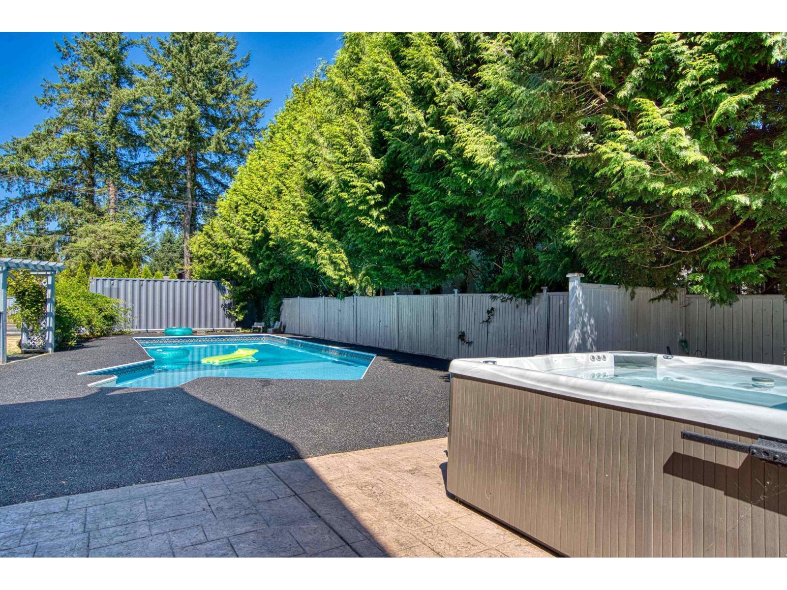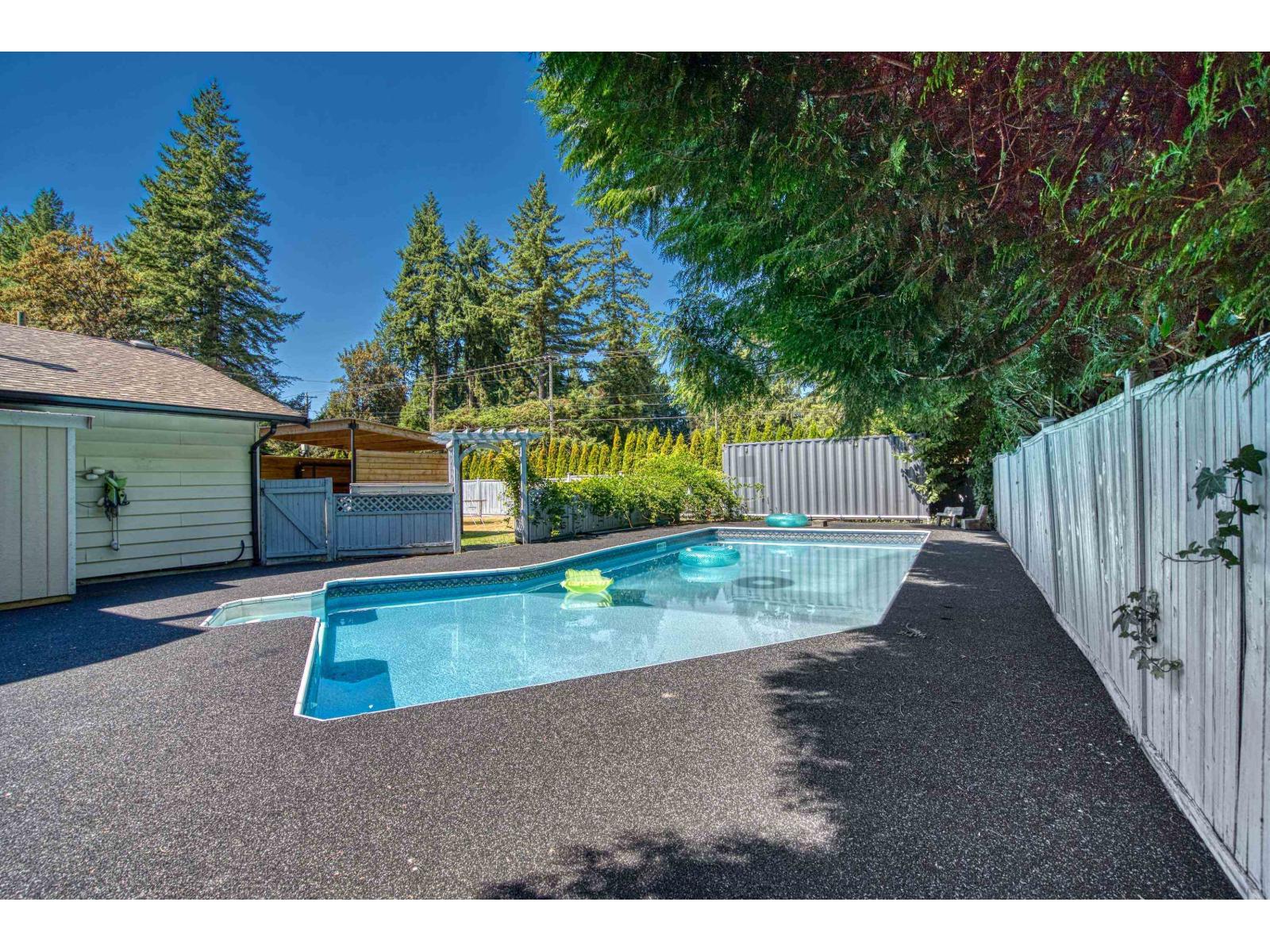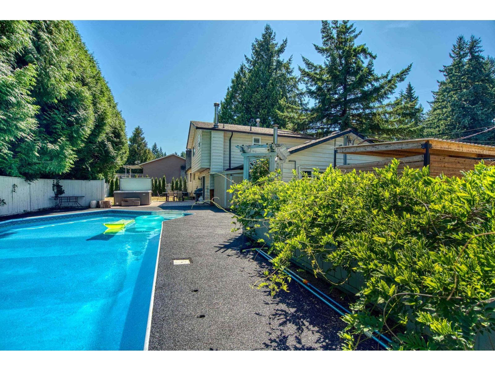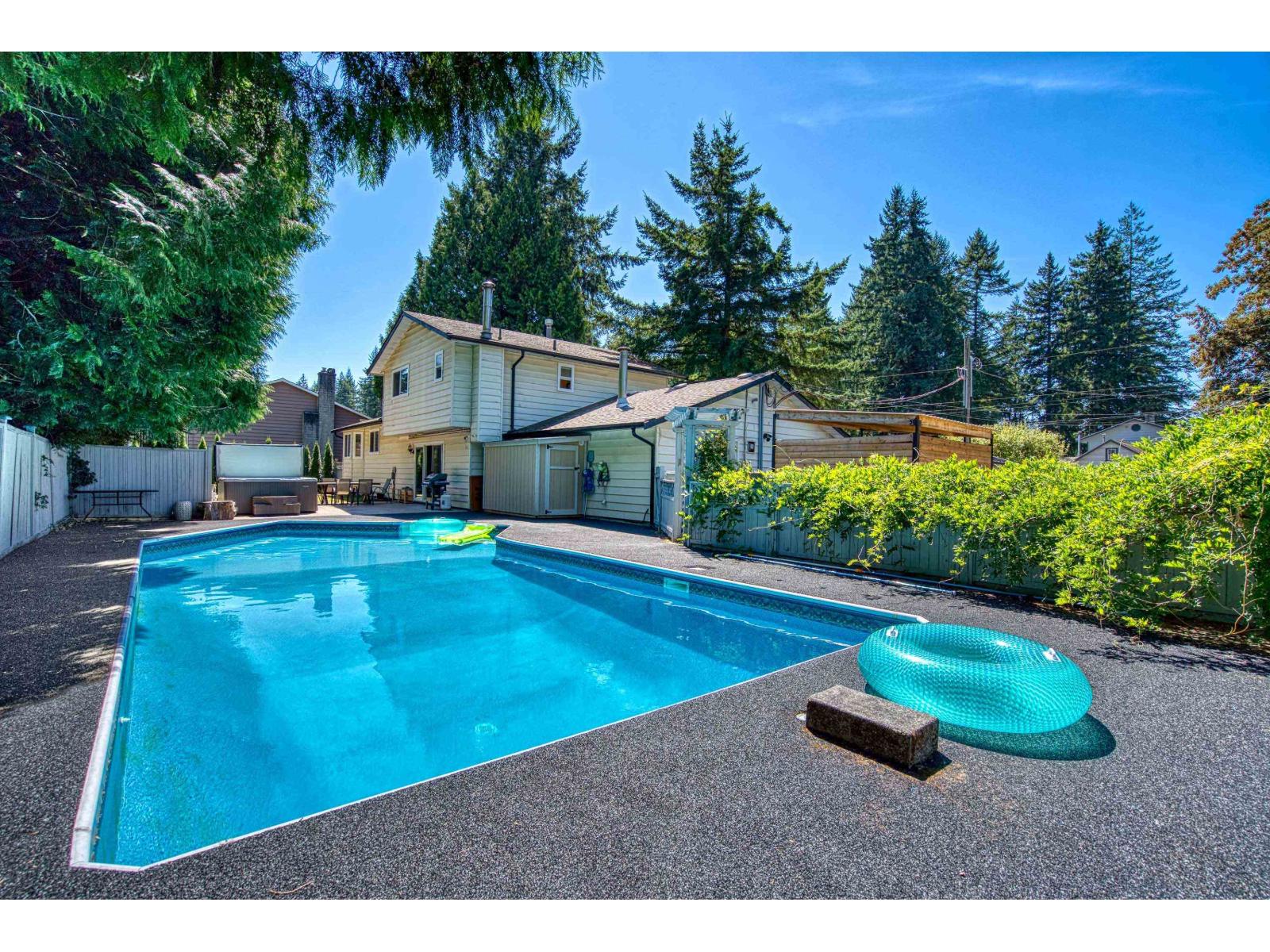 Step into your own private backyard retreat-sun-soaked, fully fenced, and complete with a sparkling pool and covered patio, perfect for entertaining or unwinding all summer long. This well-maintained 3-level split home in desirable Brookswood sits on a spacious 11,325 sq. ft. corner lot and offers a bright, functional layout with 3 bedrooms plus a den and 3 bathrooms. Features include a modernized kitchen with quartz countertops, stainless steel appliances, updated bathrooms, and laminate flooring throughout. Plenty of parking with a generous driveway and bonus 400 amp service, all just minutes from schools, parks, and shopping. *OPEN HOUSE: Saturday Apr 18, 12-2PM* (id:64528)
