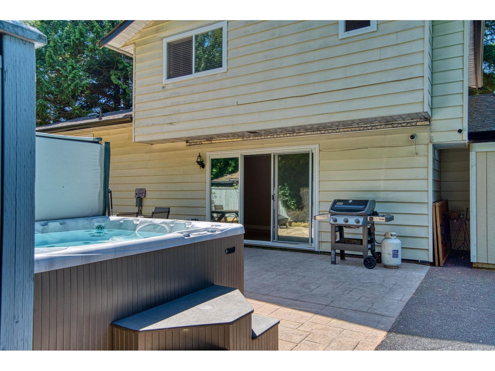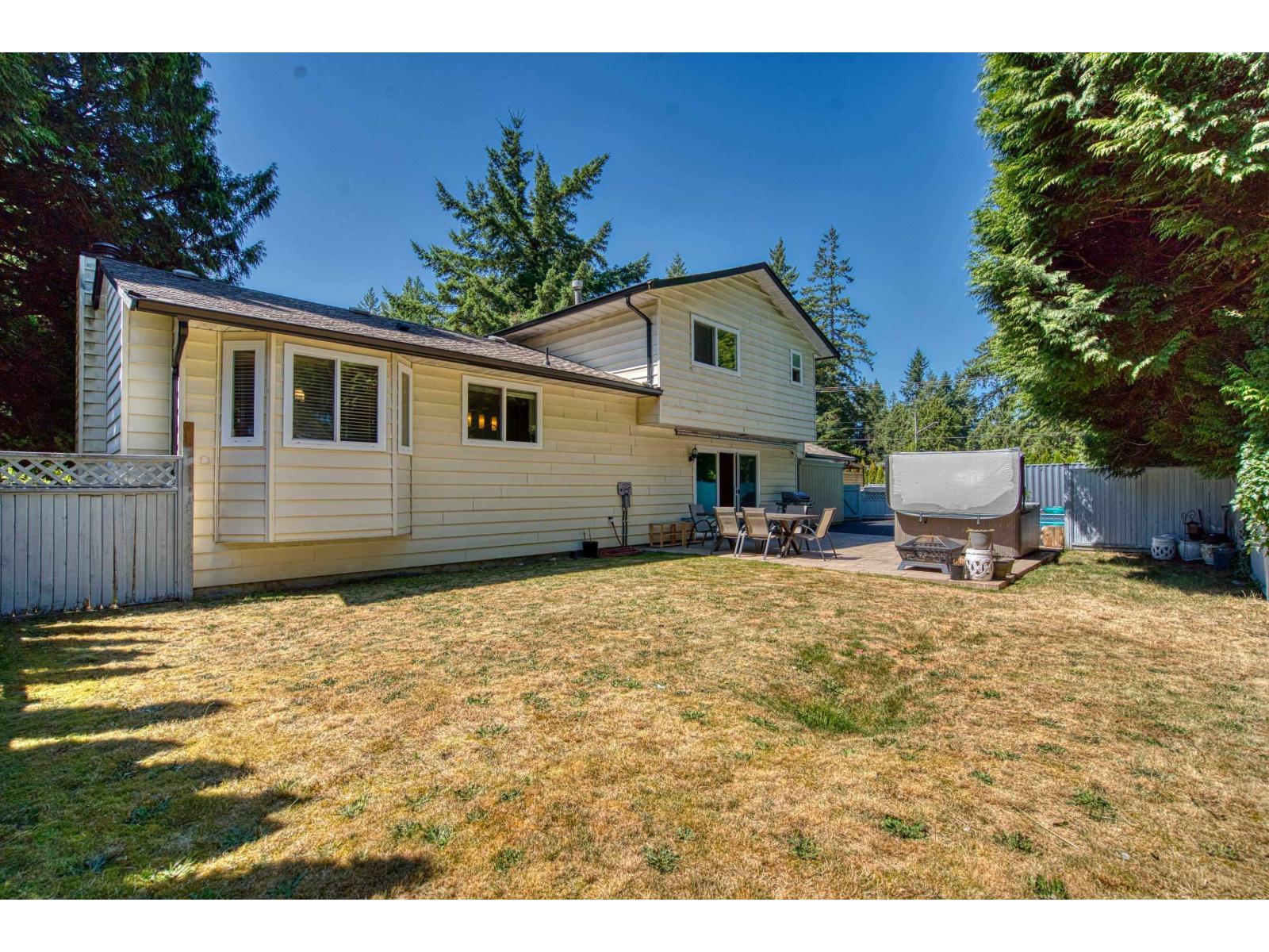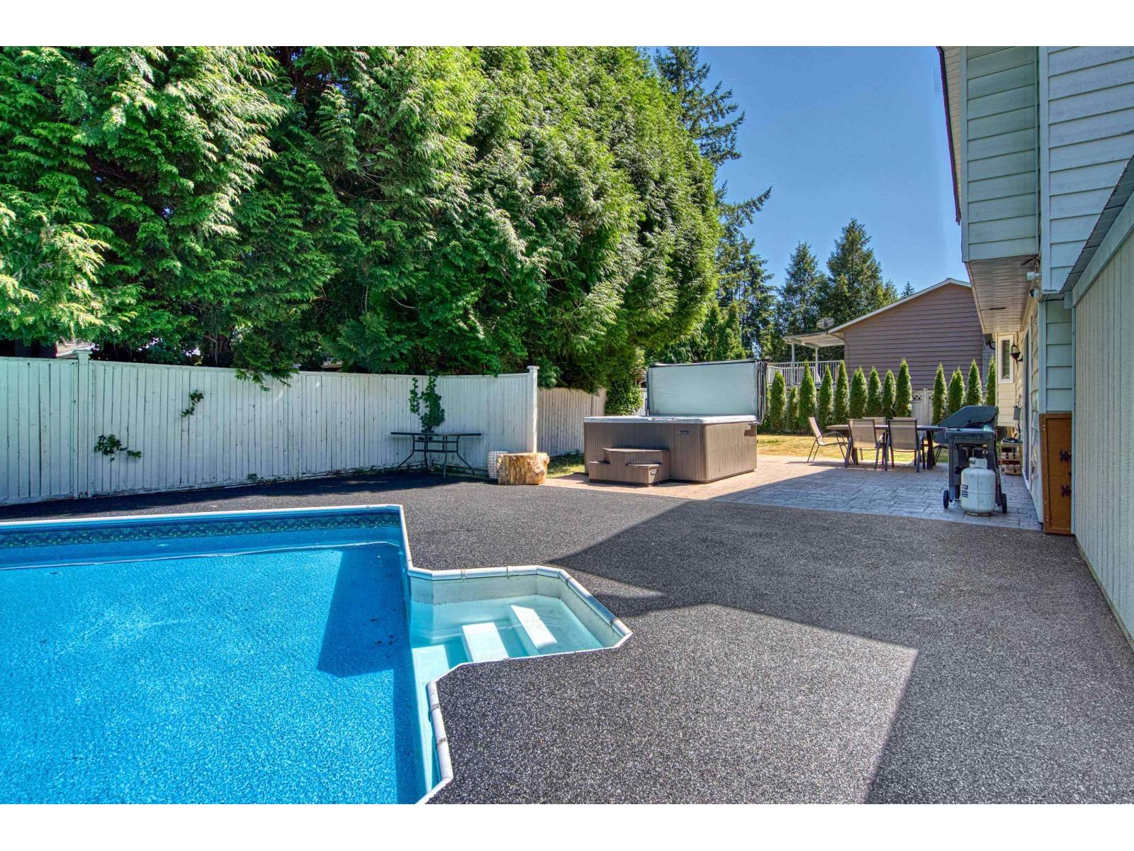 Step into your own private backyard retreat-sun-soaked, fully fenced, and complete with a sparkling pool and covered patio, perfect for entertaining or unwinding all summer long. This well-maintained 3-level split home in desirable Brookswood sits on a spacious 11,325 sq. ft. corner lot and offers a bright, functional layout with 3 bedrooms plus a den and 3 bathrooms. Features include a modernized kitchen with quartz countertops, stainless steel appliances, updated bathrooms, and laminate flooring throughout. Plenty of parking with a generous driveway and bonus 400 amp service, all just minutes from schools, parks, and shopping. *OPEN HOUSE: Saturday Apr 18, 12-2PM* (id:64528)