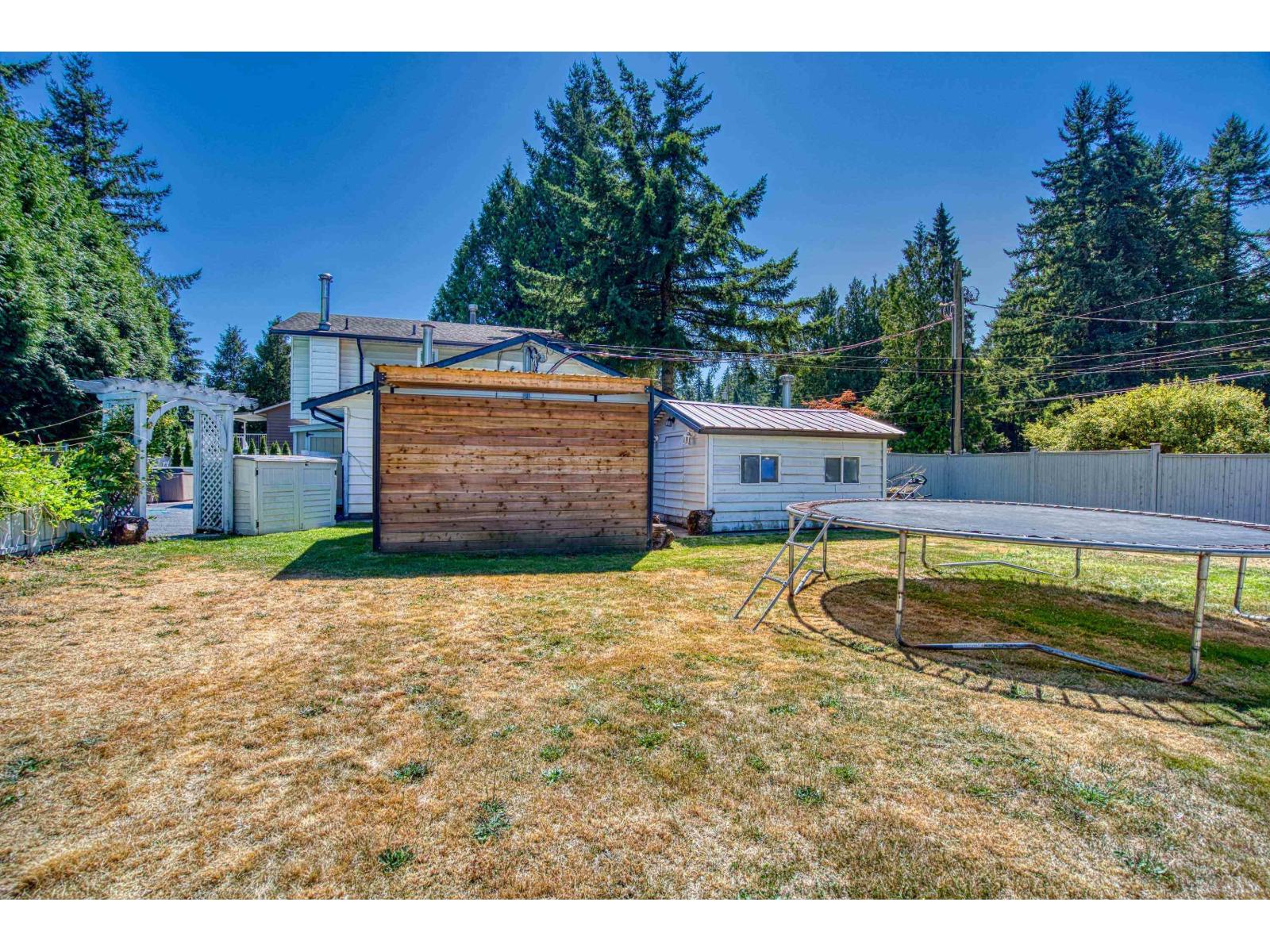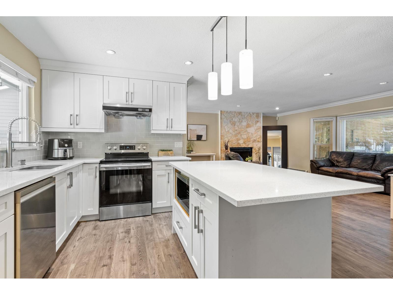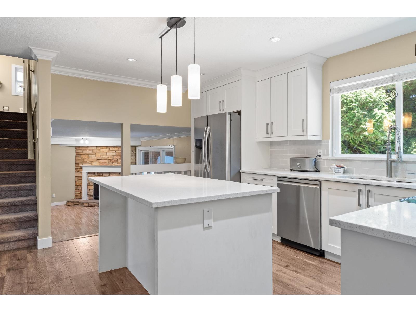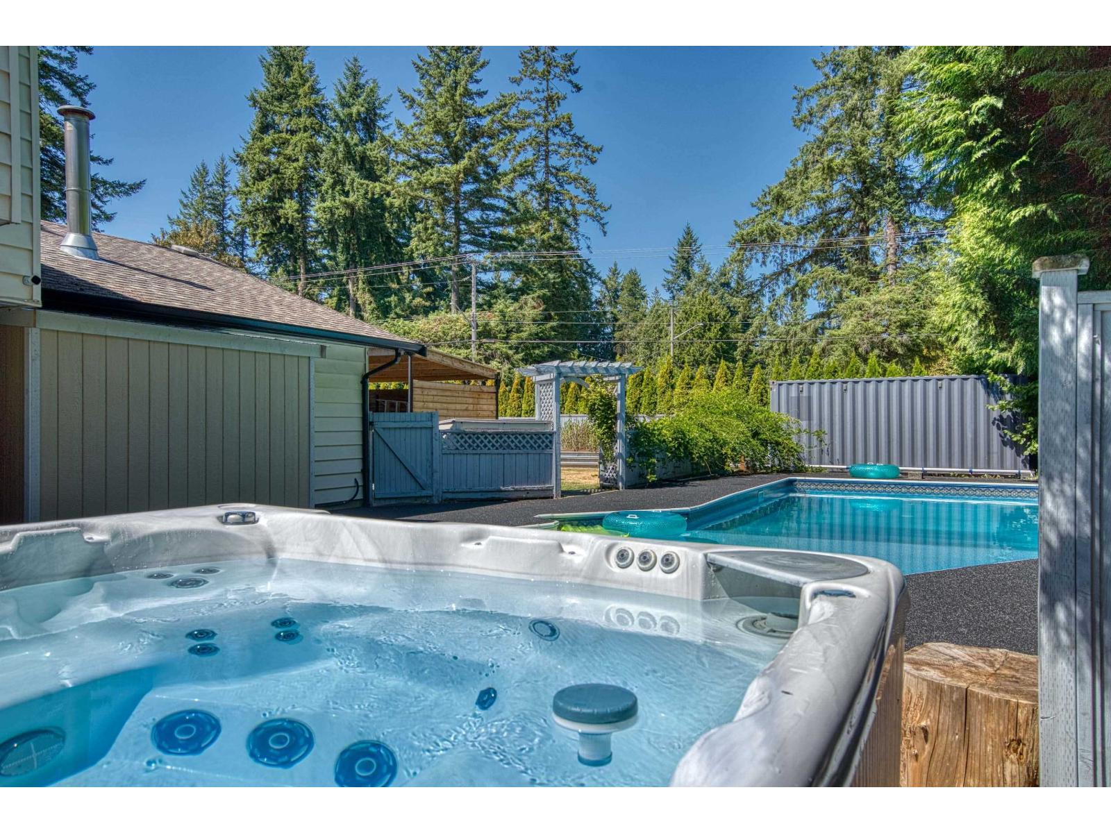 Step into your own private backyard retreat-sun-soaked, fully fenced, and complete with a sparkling pool and covered patio, perfect for entertaining or unwinding all summer long. This well-maintained 3-level split home in desirable Brookswood sits on a spacious 11,325 sq. ft. corner lot and offers a bright, functional layout with 3 bedrooms plus a den and 3 bathrooms. Features include a modernized kitchen with quartz countertops, stainless steel appliances, updated bathrooms, and laminate flooring throughout. Plenty of parking with a generous driveway and bonus 400 amp service, all just minutes from schools, parks, and shopping. *OPEN HOUSE: Saturday Apr 18, 12-2PM* (id:64528)