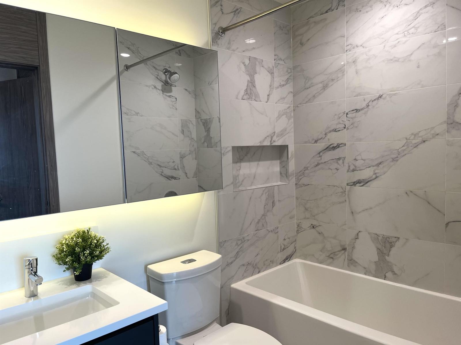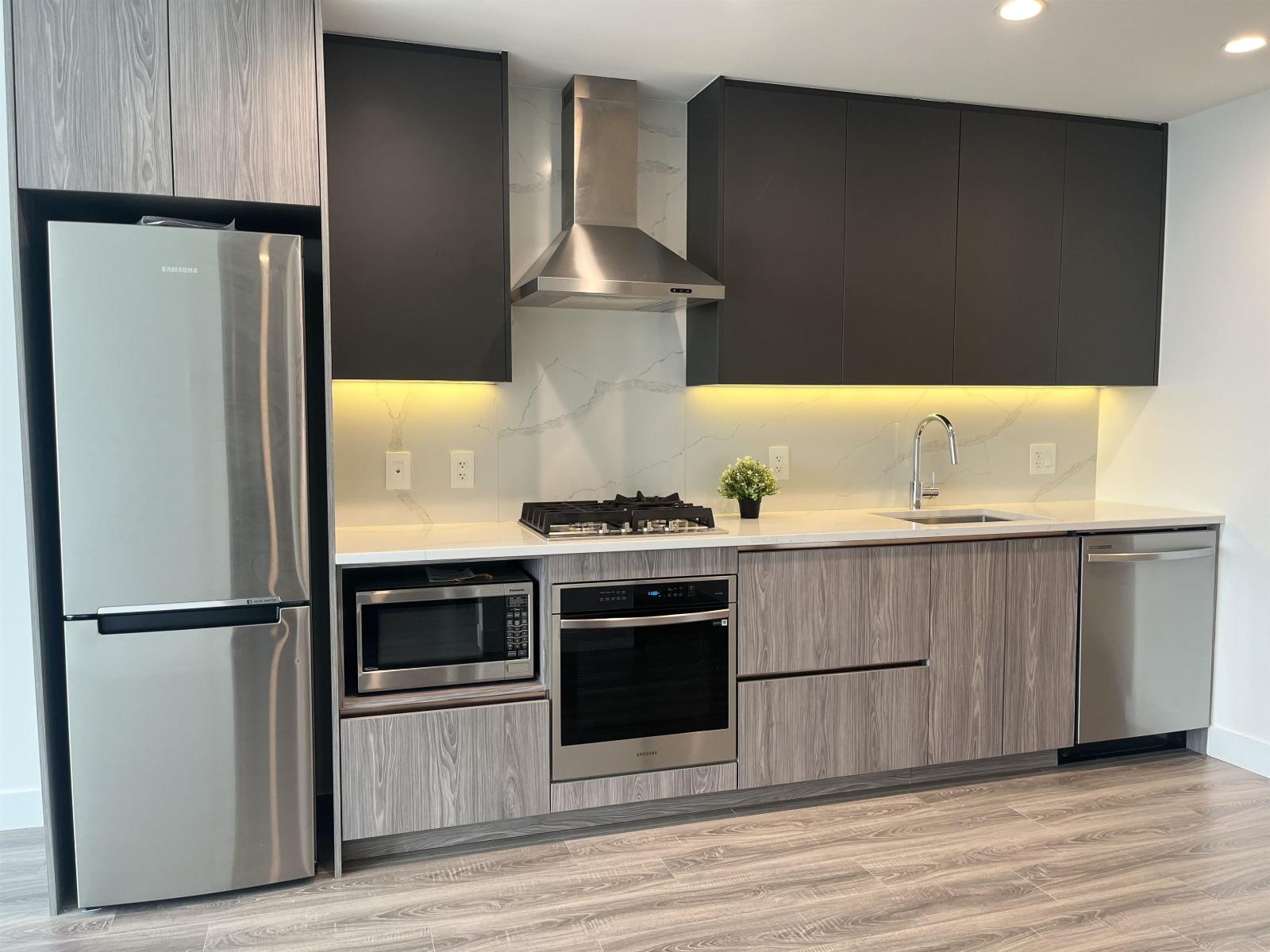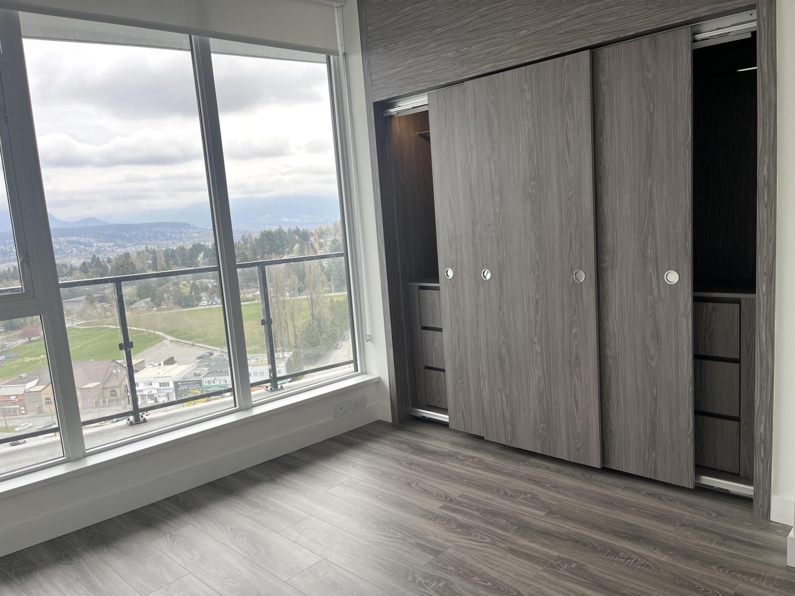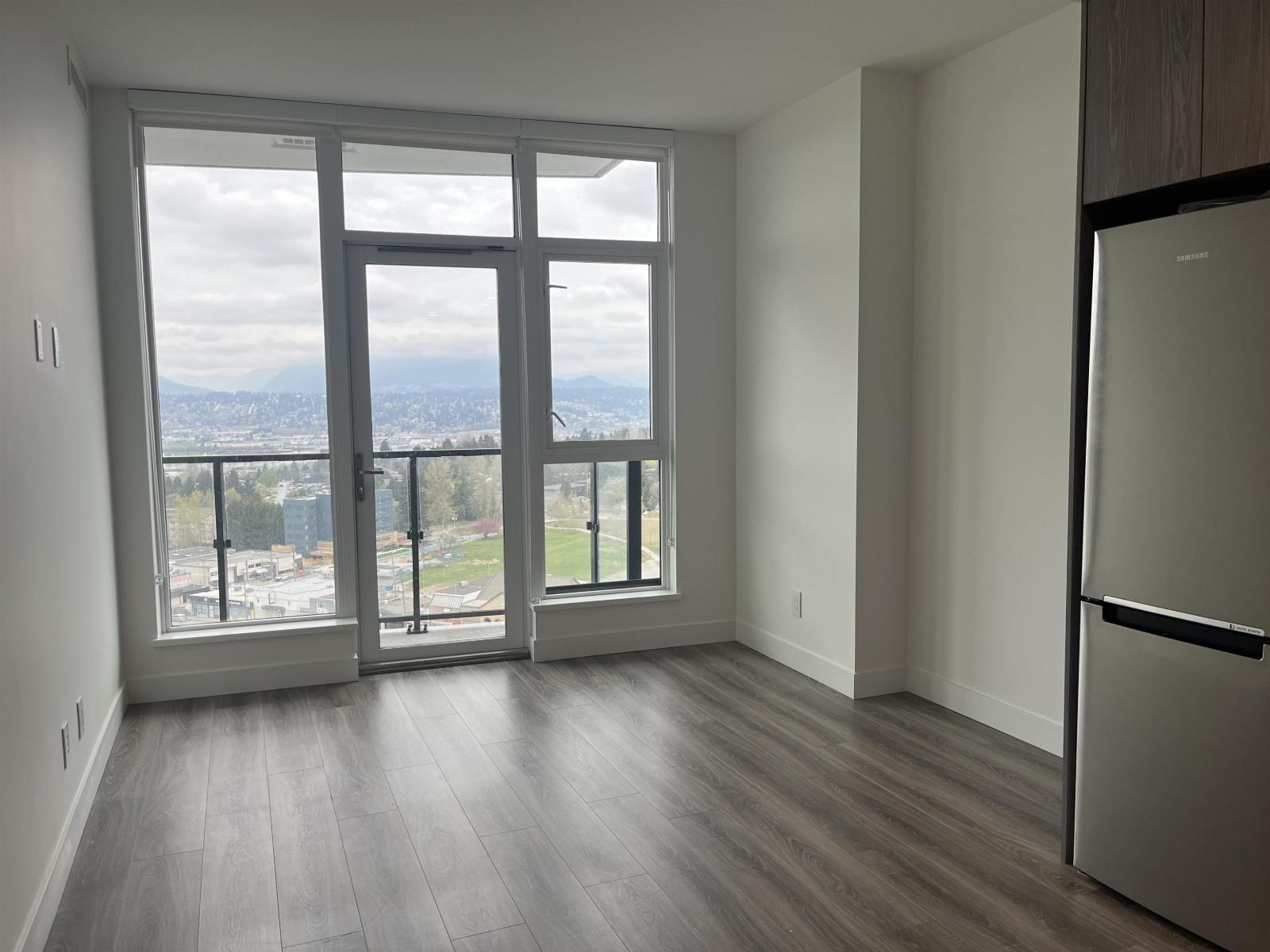 Modern 567 sf 1bed+den home with a functional layout, north-facing unobstructed views of the Fraser River and North Shore Mountains, and a large balcony to enjoy. Stay comfortable year-round with AC, and relax in a spacious king-size bedroom featuring a full-size closet with built-in organizers. Enjoy a variety of building amenities and unbeatable convenience, just a 5 minute walk to Gateway SkyTrain Station, with shops, dining, and daily essentials steps away. No parking or storage included. Perfect for minimalists seeking efficiency, style, and a connected lifestyle at The Grand-Available May 1st. Rental Req: 1-2occupants, employment verification and reference checks. (id:64528)