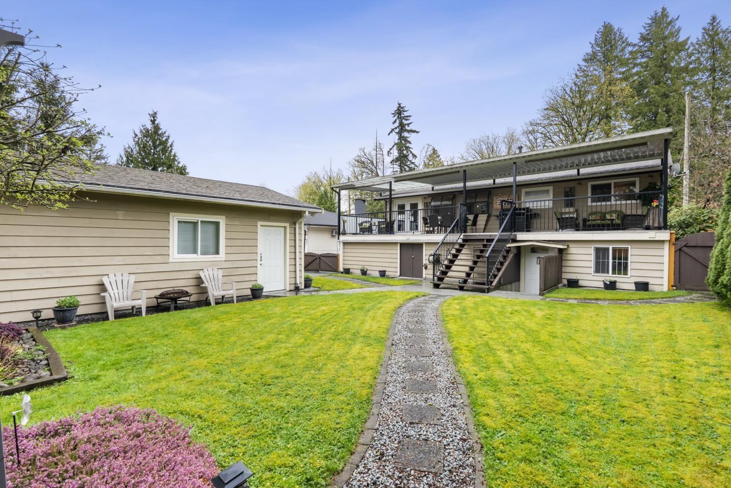 Take in stunning city and mountain views from the expansive sundeck of this beautifully maintained 2,574 sqft home. Offering 5 bedrooms and 2 baths, the layout features a highly versatile lower-level suite with washer/dryer connections-perfect as a future mortgage helper or extra space for family. Step outside to discover nicely manicured yards, tons of handy under-deck storage, and a detached, powered garage that makes an ideal home gym. Inside, you'll appreciate the peace of mind that comes with newer windows, updated appliances, and a newer hot water tank. Located in a fantastic community, you are just a short stroll from Dogwood Park and local schools, with unbeatable quick access to Hwy 1, Guildford Town Centre, and convenient transit. (id:64528)