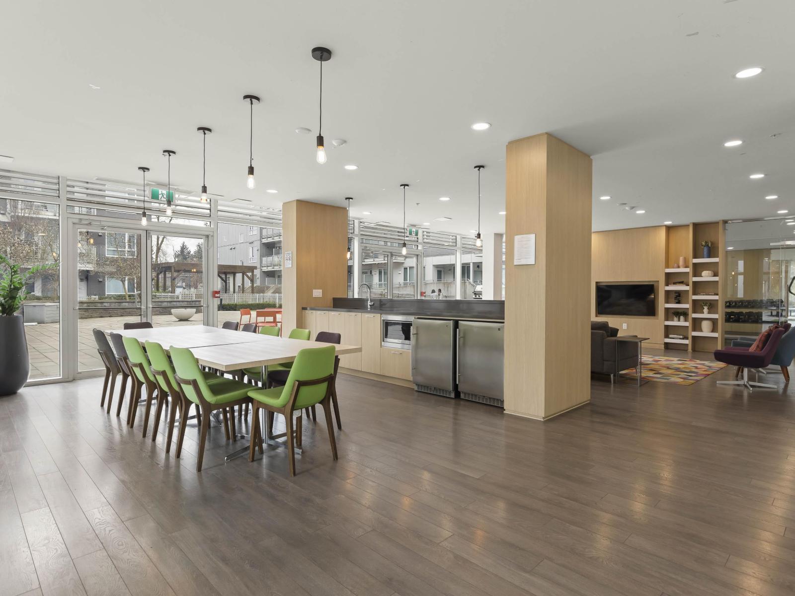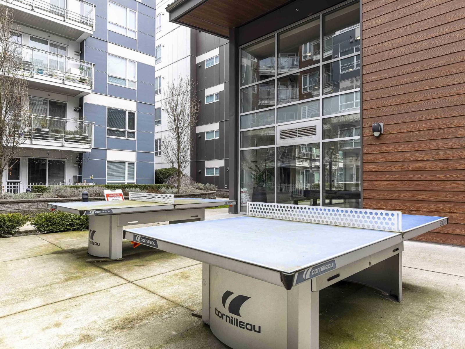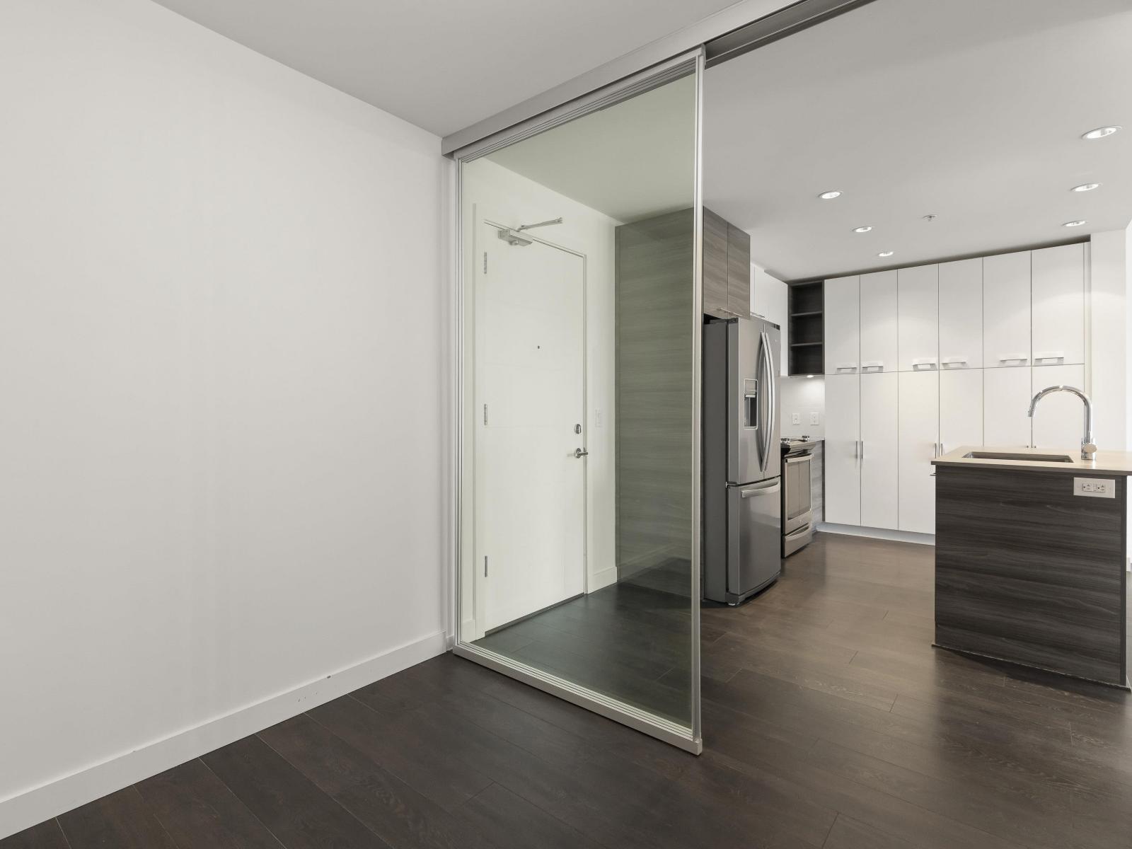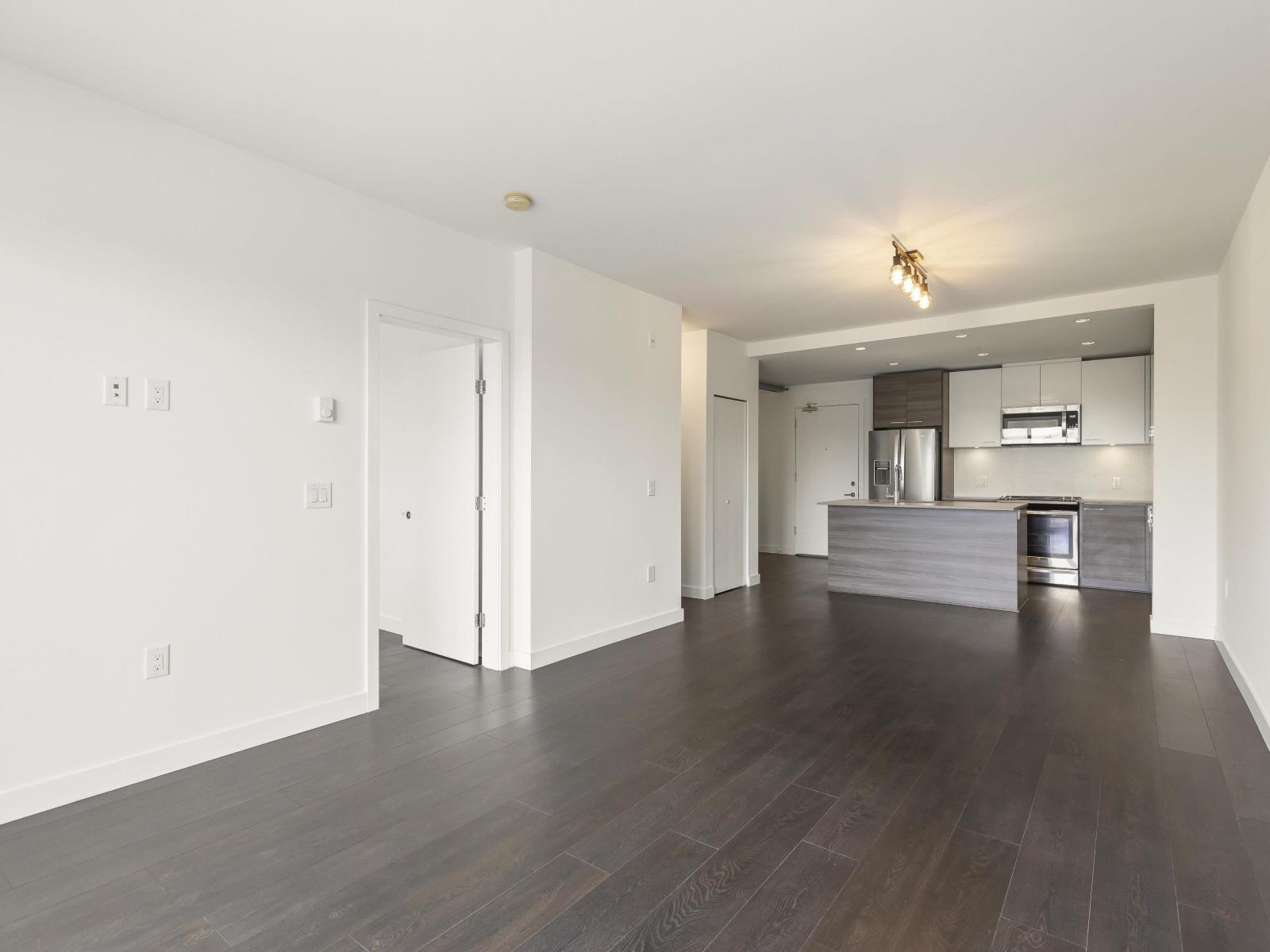 Welcome to Thrive at HQ. A smart, functional layout defines this 1 bed + den that easily adapts to your needs-home office, guest space, or media room. In like-new condition with fresh paint throughout, the home features an upscale kitchen and a full wall of built-in storage. Enjoy private, south-facing exposure overlooking the field, bringing in great natural light. Residents enjoy outstanding amenities including a gym, yoga studio, lounge, billiards, garden plots, and outdoor ping pong. Complete with parking, storage locker, in-suite laundry, and pet-friendly living. Steps to everyday conveniences, dining, and transit just one block away. (id:64528)
