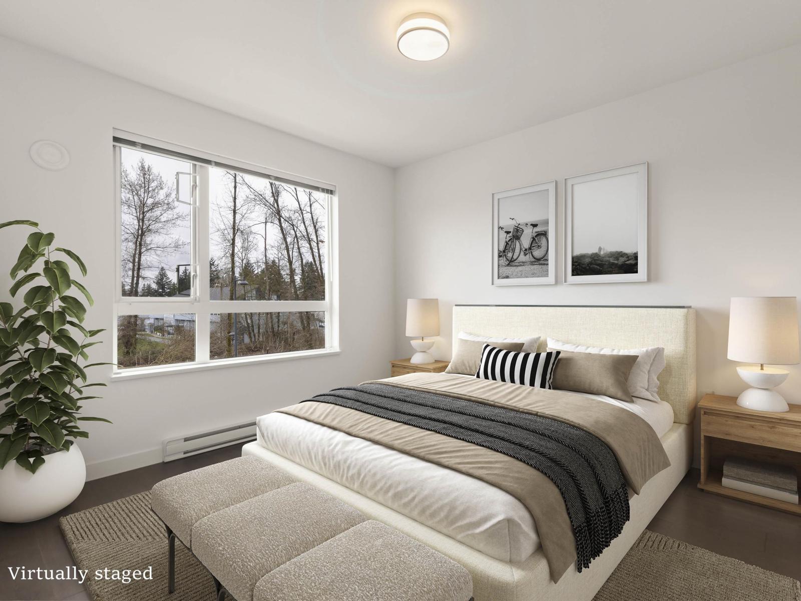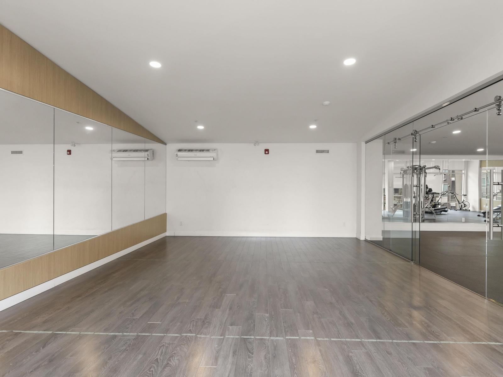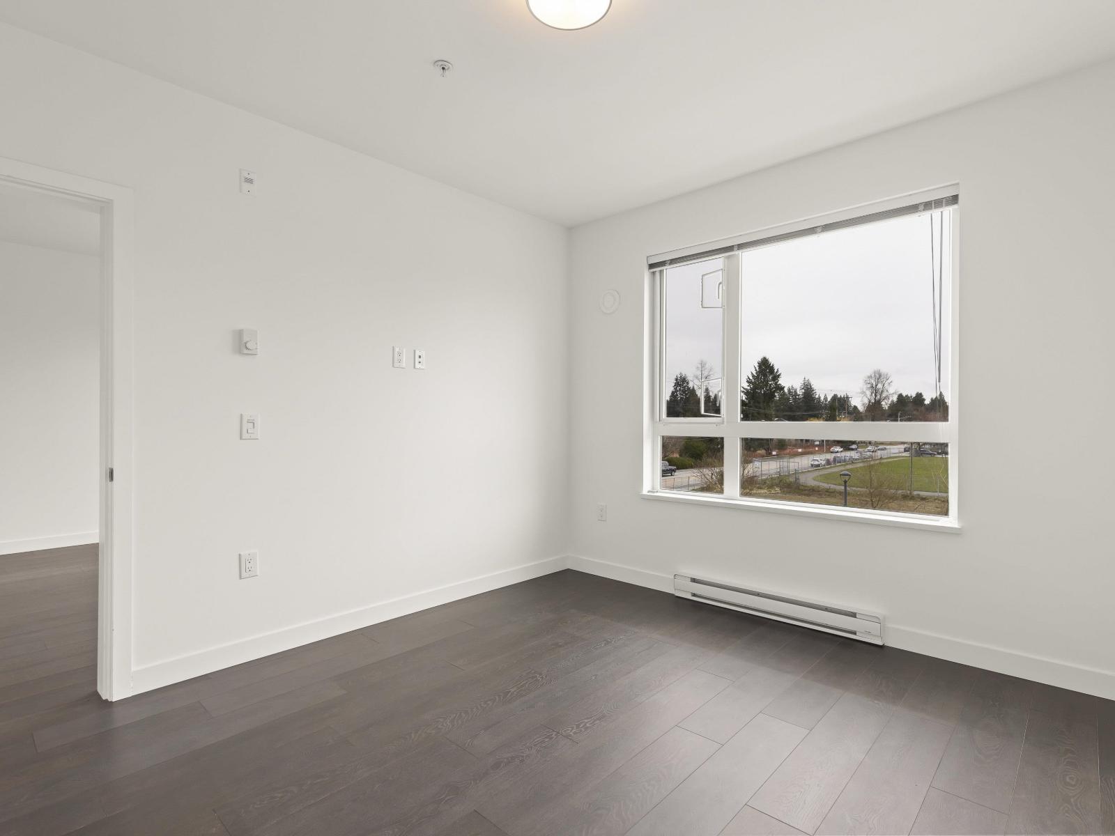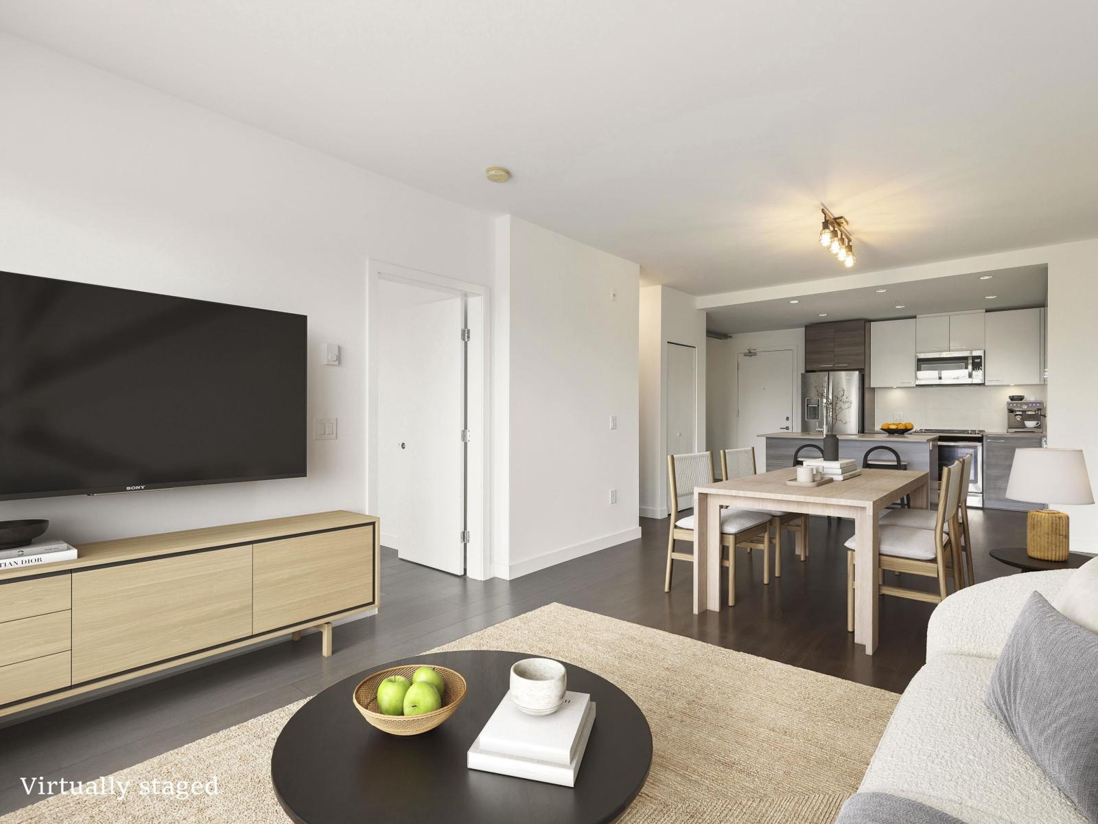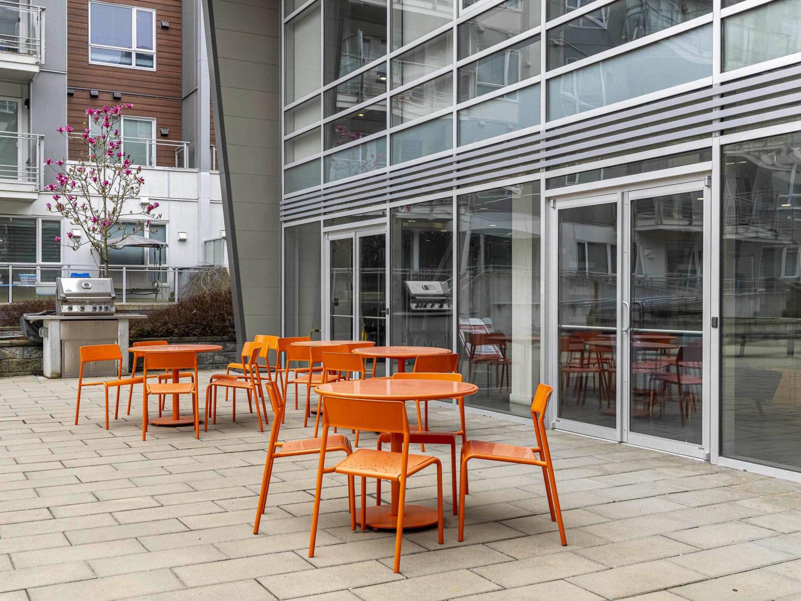Welcome to Thrive at HQ. A smart, functional layout defines this 1 bed + den that easily adapts to your needs-home office, guest space, or media room. In like-new condition with fresh paint throughout, the home features an upscale kitchen and a full wall of built-in storage. Enjoy private, south-facing exposure overlooking the field, bringing in great natural light. Residents enjoy outstanding amenities including a gym, yoga studio, lounge, billiards, garden plots, and outdoor ping pong. Complete with parking, storage locker, in-suite laundry, and pet-friendly living. Steps to everyday conveniences, dining, and transit just one block away. (id:64528)