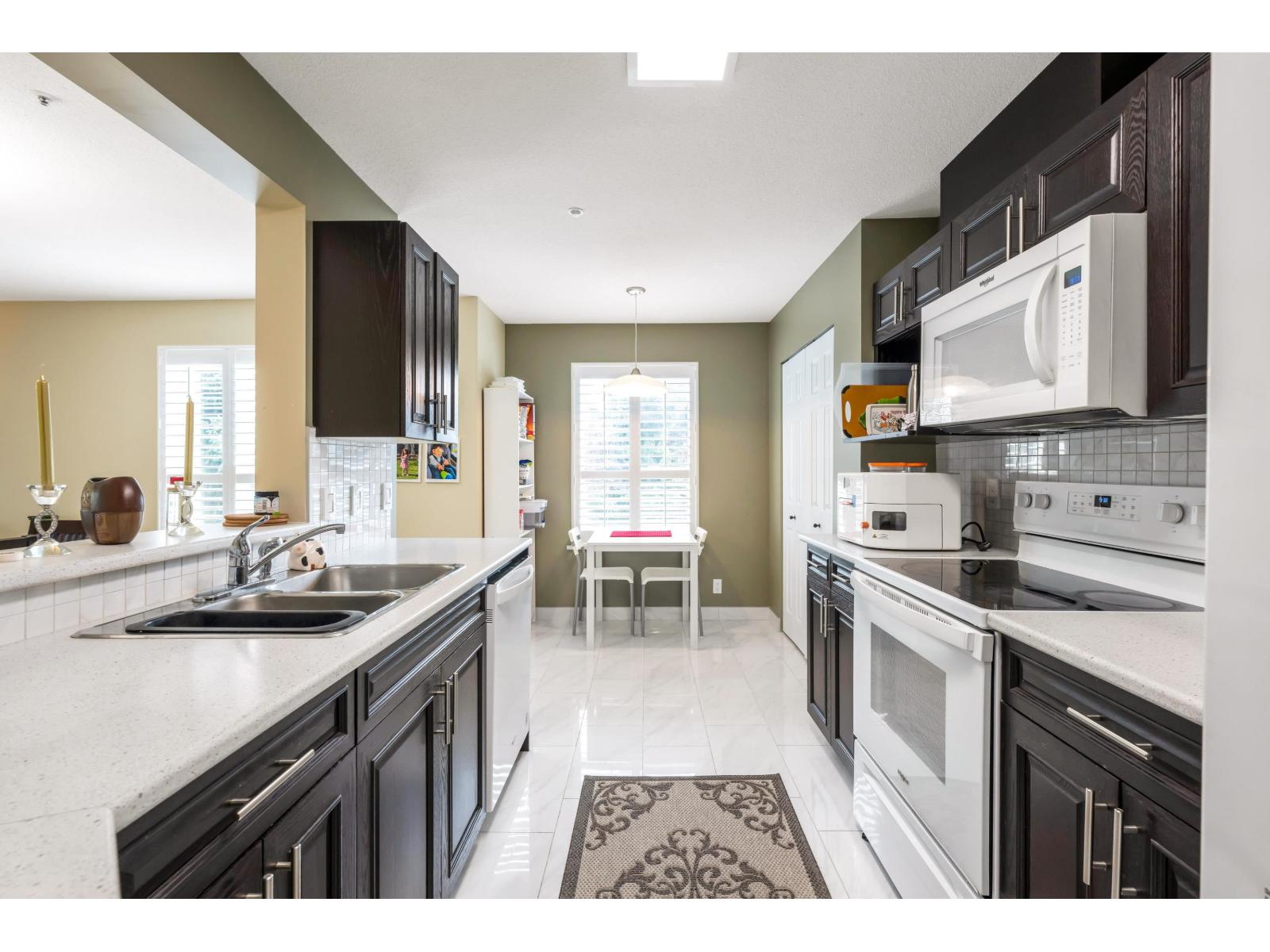 Open House Sunday Apr 26th 2-4 pm..1 owner must be 55+ VIBRANT community,spacious corner unit with over 1200 sq ft of living space, and a wrap around sundeck, 2 bed, 2 bath, features in floor hot water heating new laminate flooring, bright Kitchen+ Baths with beautiful porcelain tiles,new countertops & walnut cabinets with soft close hinges.Plantation style shutters compliment the living room, diningrm and kitchen.Enjoy the convenience of being in the heart of the city and enjoy the resort style community which includes everything you need- a club house,3 guest suites,outdoor pool,indoor hot tub,exercise room, workshop & RV parking!Close to shopping,transit,library, senior and rec centre.Don't miss your chance STRATA FEES DROPPING FROM 616.88 TO: $585.20 a month a saving of $31.67 MONTHLY (id:64528)