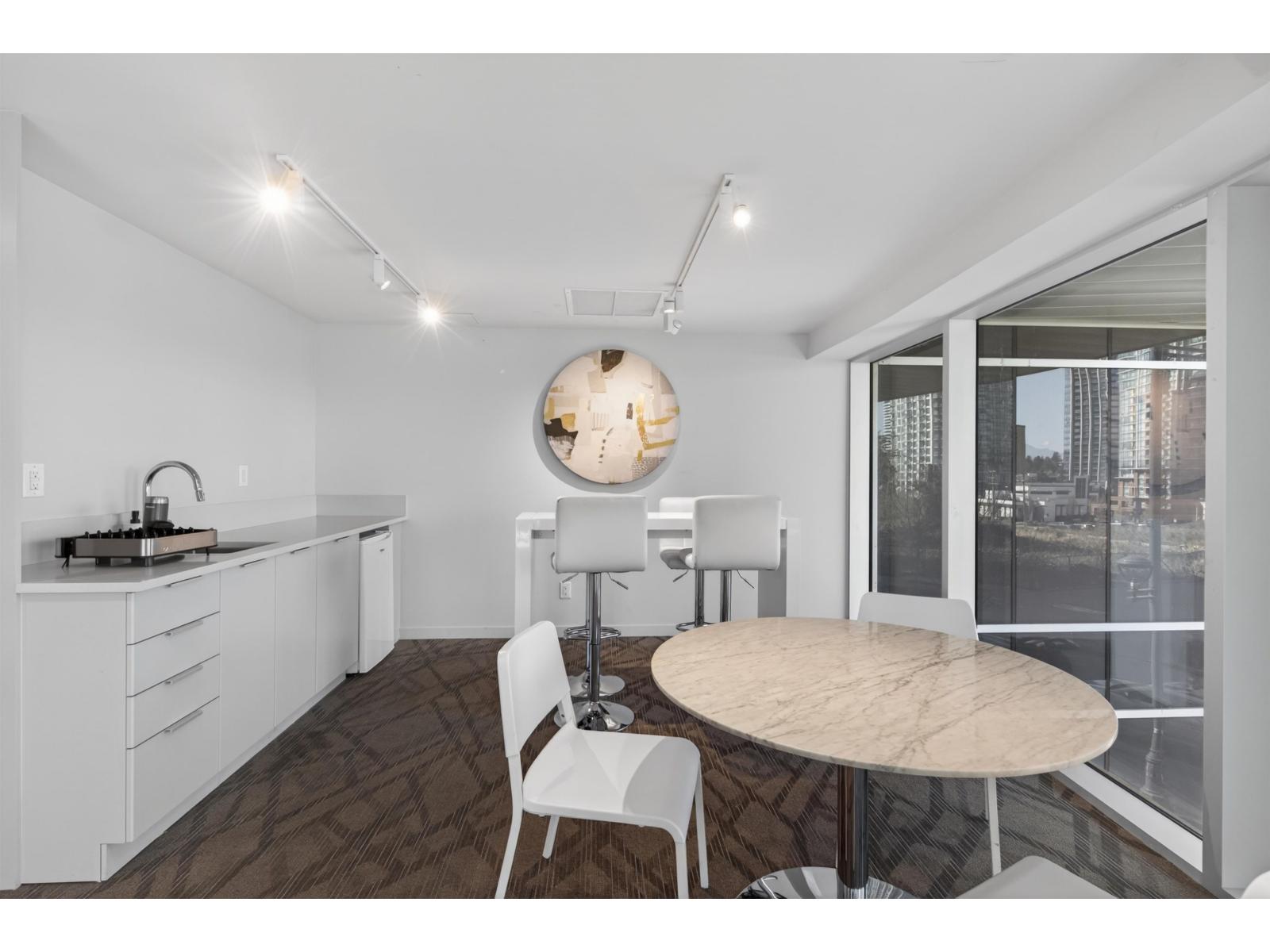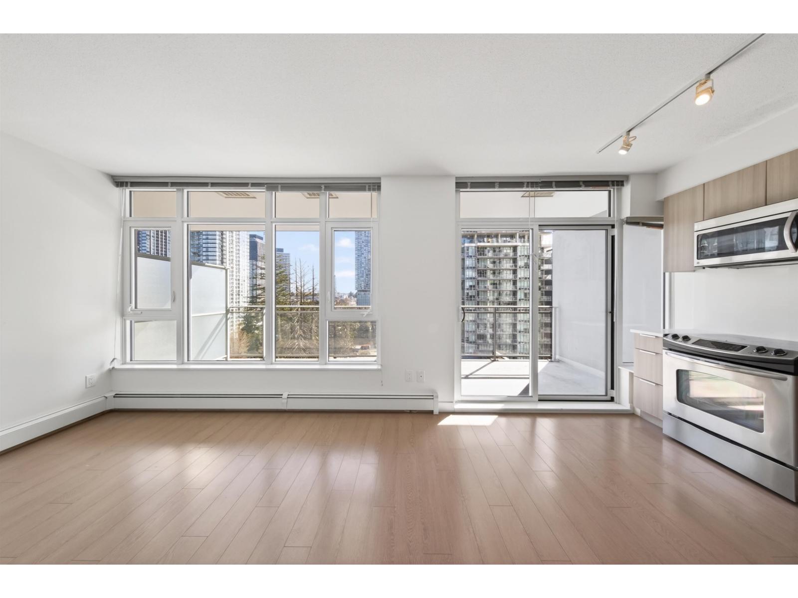 This bright and modern one-bedroom home is situated in the heart of downtown Surrey. The well-designed layout features an open-plan design with floor-to-ceiling windows that flood the interior with natural light, while a spacious covered balcony offers stunning city and mountain views. The modern kitchen boasts stainless steel appliances, quartz countertops, and stylish cabinetry. Residents enjoy upscale amenities including concierge services, a fitness center, a meeting/party room and so on. The location is exceptional - just steps from Surrey Central SkyTrain station, SFU, KPU, shopping centers, restaurants, and parks, with easy access to downtown Vancouver. This home is ideal for first-time homebuyers and investors. (id:64528)