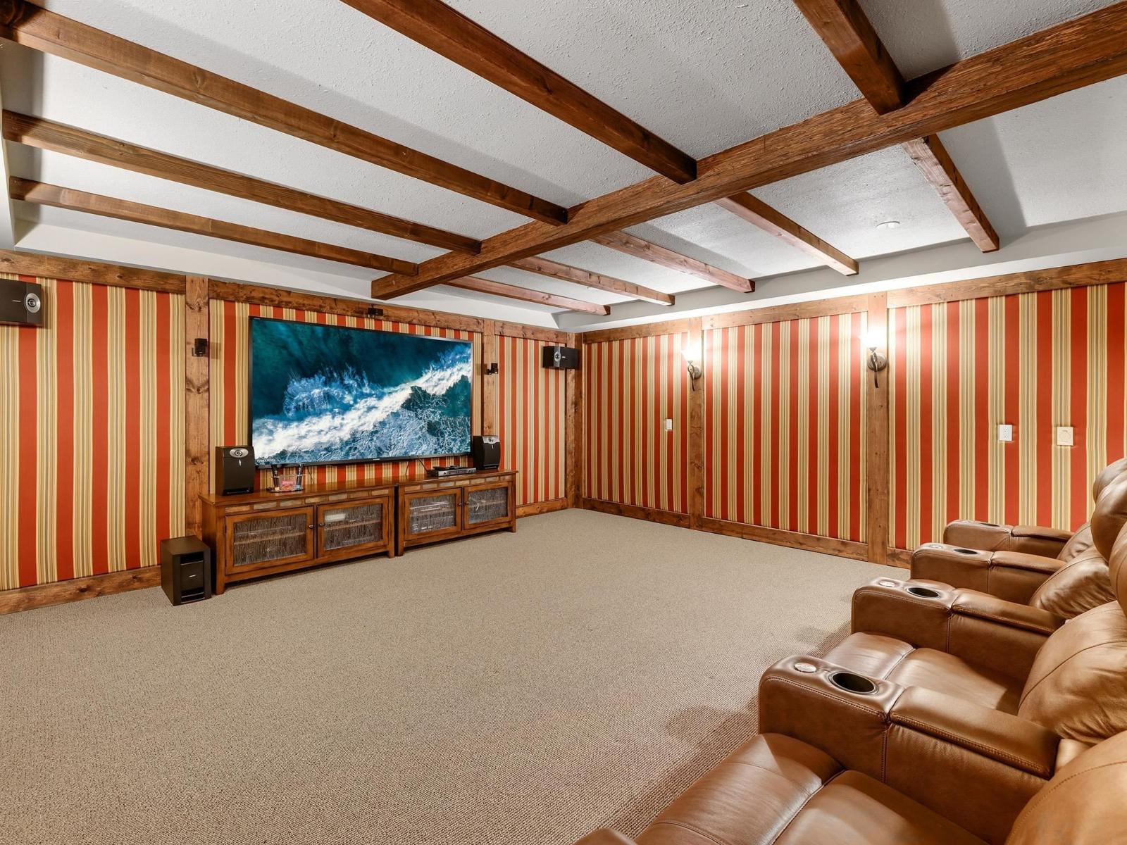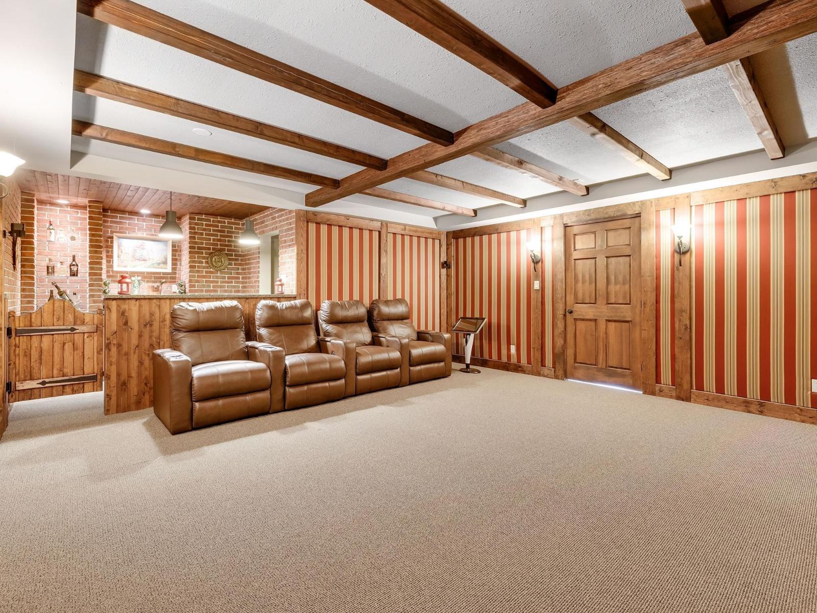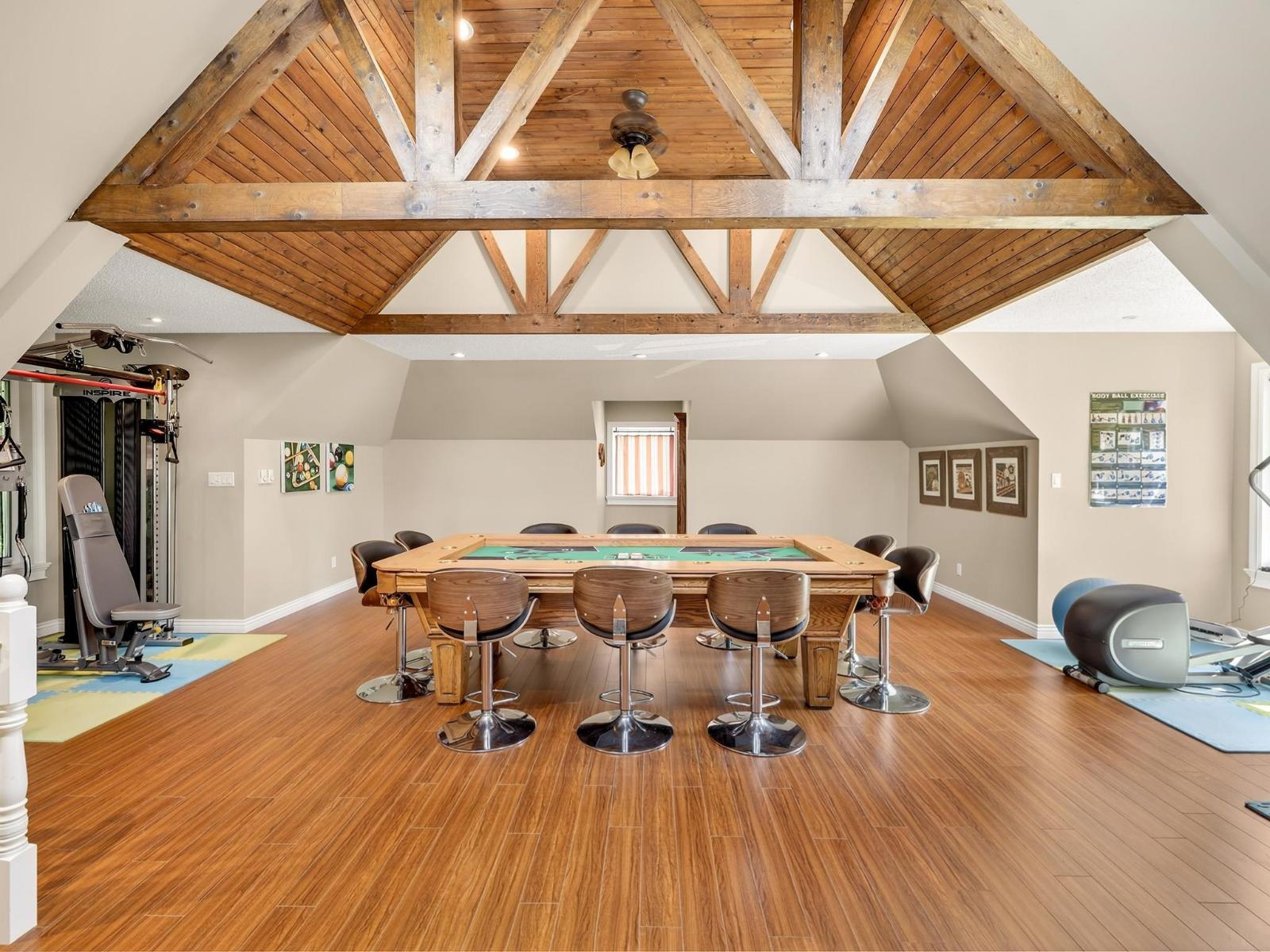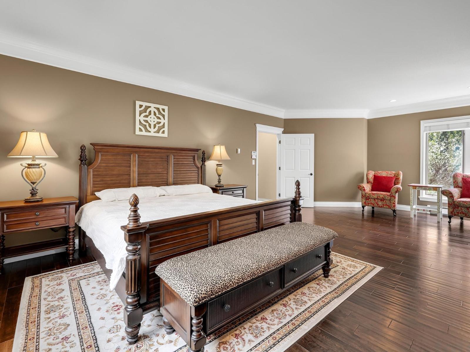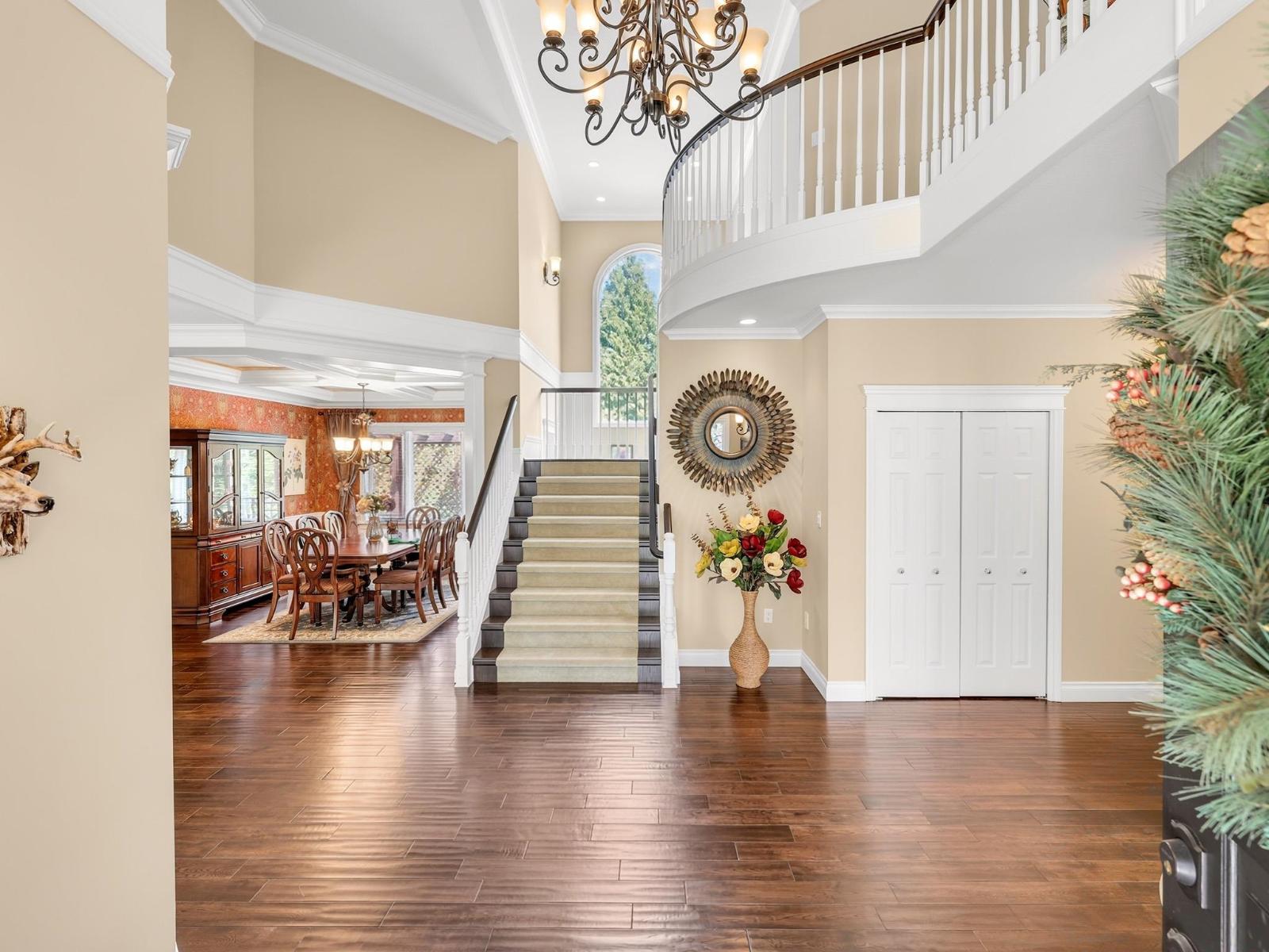 Gated red brick estate set on a 30,162 sq.ft. south-facing lot with beautifully manicured landscaping. A long private driveway offers ample parking, including space for RVs. Pride of ownership is evident throughout, with a newer roof & an updated pool featuring a new vinyl liner. The resort-style backyard showcases a hot tub and lush, park-like setting, complemented by a spacious sun deck. The home offers a functional & elegant layout with a grand foyer and a sunken living room w/ a statement fireplace. The primary BDRM on the main floor opens to a private backyard retreat. Upstairs features three additional bedrooms and a large games room above the garage. A coach house features a solarium, a detached 3-car garage w/extra height for a boat or lift, making this property ideal for collector (id:64528)