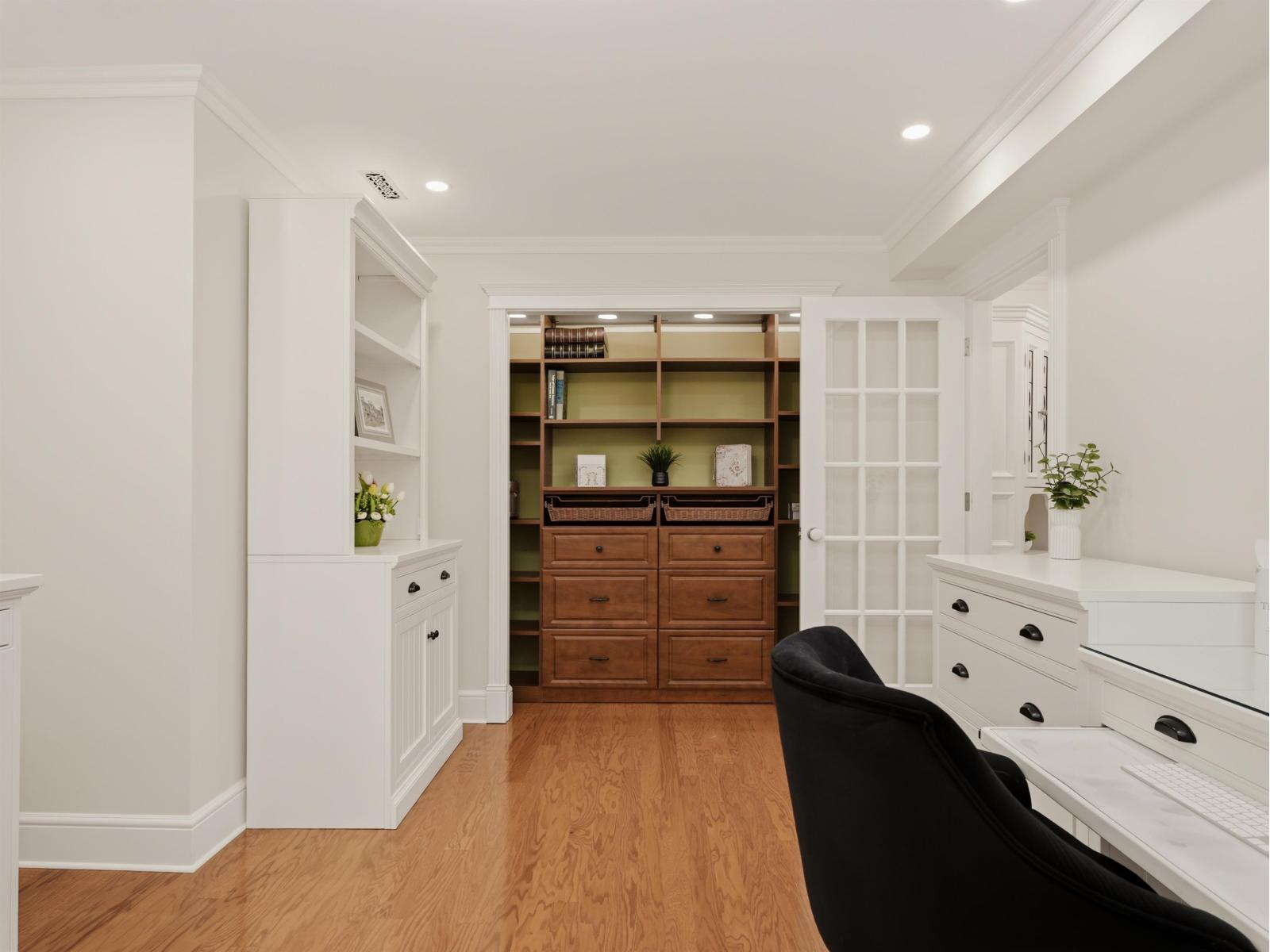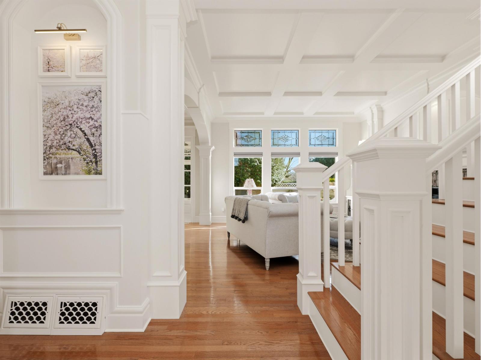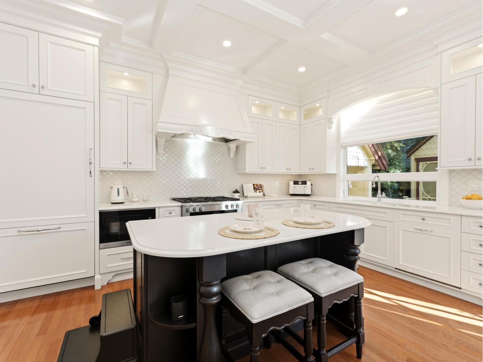 This Rosemary Heights masterpiece has extensive & timeless custom upgrades of the highest quality. Chef's kitchen anchors the main floor with full Miele appliances & cabinetry crafted to perfection. Coffered ceilings, custom millwork wall paneling, rich hardwood & custom French doors create an interior that feels genuinely one of a kind. The primary ensuite features heated tile floors. A/C throughout. A legal suite completes this extraordinary home. Step outside to a backyard designed for living. Artificial turf, covered patio with fire pit, BBQ hut, charming garden shed, accent lighting, in-ground irrigation & driveway pavers. A greenbelt borders the side yard for added privacy. Morgan Creek Golf Course is blocks away. Homes like this don't come twice. Call realtor for full package. (id:64528)