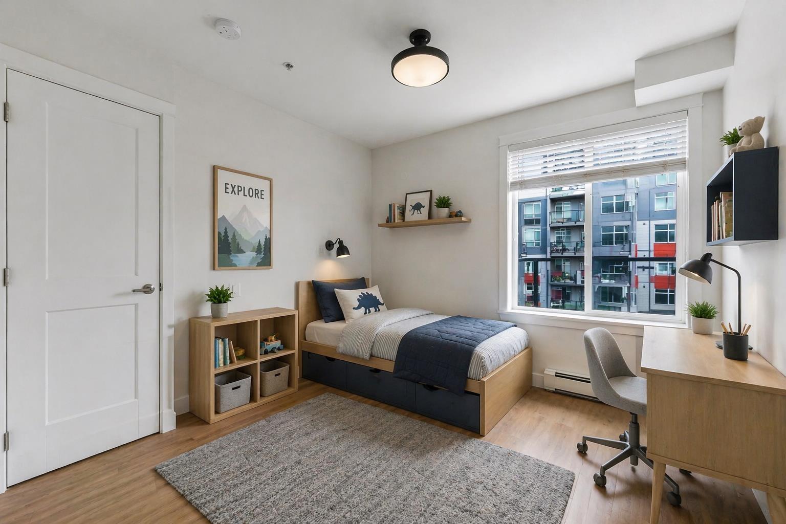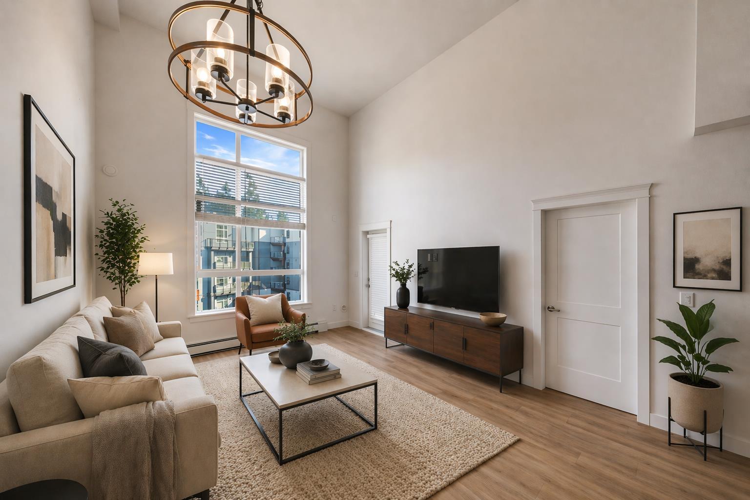 Welcome to Ledgeview by Quadra Homes, a stunning sub-penthouse unit in Surrey's vibrant downtown. This bright 2-bed, 2-bath home features 12-ft ceilings, oversized windows. The gourmet kitchen offers stainless steel appliances, a 5-burner gas range, dual-fuel oven, quartz countertops, and white shaker cabinets. Enjoy upgrades like heated bathroom floors, crown moulding, and A/C rough-in. Relax on your private patio with gas BBQ hookup. Amenities include a 5,000 sq. ft. gym, meeting space, and rooftop lounge with garden and playground. Steps to Gateway SkyTrain, SFU, and shopping. Strata includes hot water and gas. Book your showing today before it's too late! (id:64528)