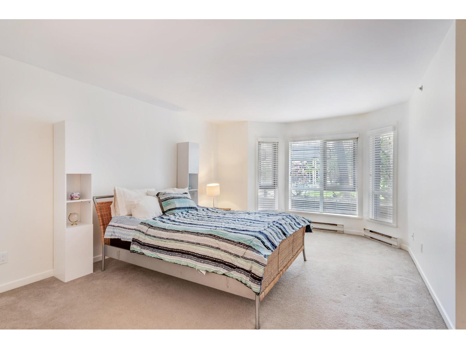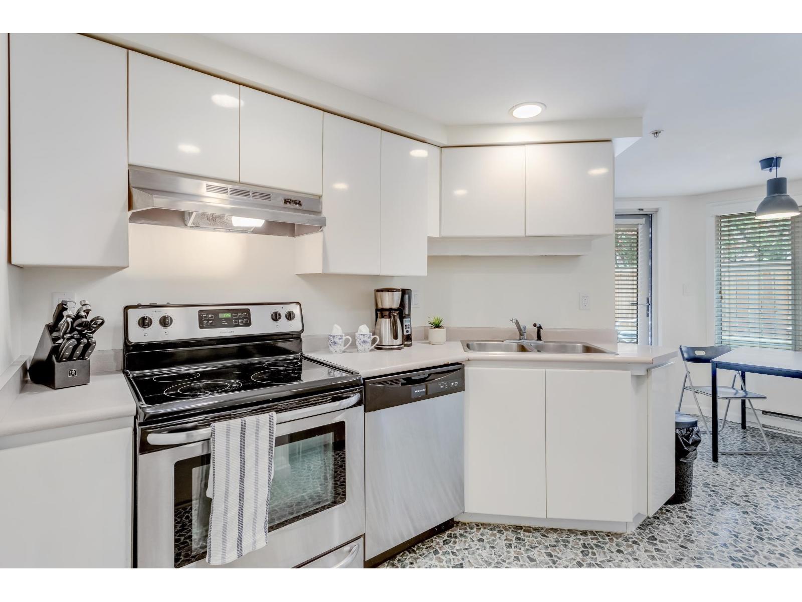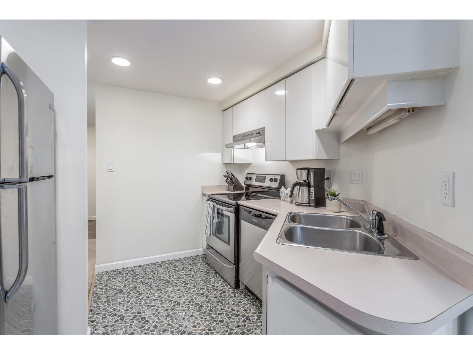 Welcome to Highpoint Garden, a meticulously upgraded concrete building with a fully renewed exterior, complete rain-screening, and a new roof. This bright and inviting ground-floor end unit features 2 bedrooms and 2 bathrooms, complemented by a spacious wraparound patio. Thoughtfully updated with elegant 2" white faux wood blinds, fresh paint, stainless steel appliances. Residents enjoy premium amenities including an outdoor pool, Year Round Hot tub and fitness centre. Ideally situated near Green Timbers Park, Guildford Mall, recreation facilities, shopping, dining, and transit just steps away. ** Secondary parking stall easy to get** (id:64528)